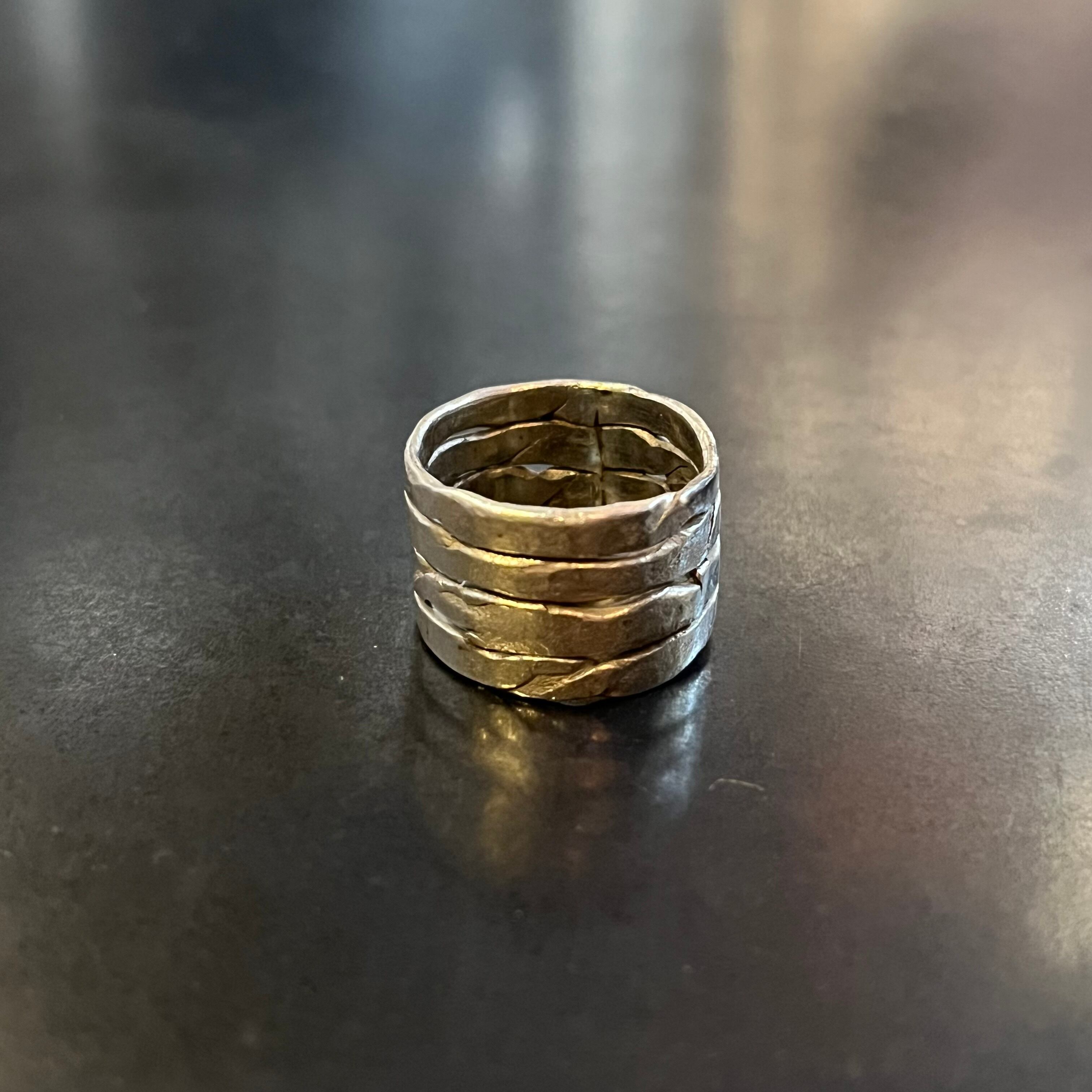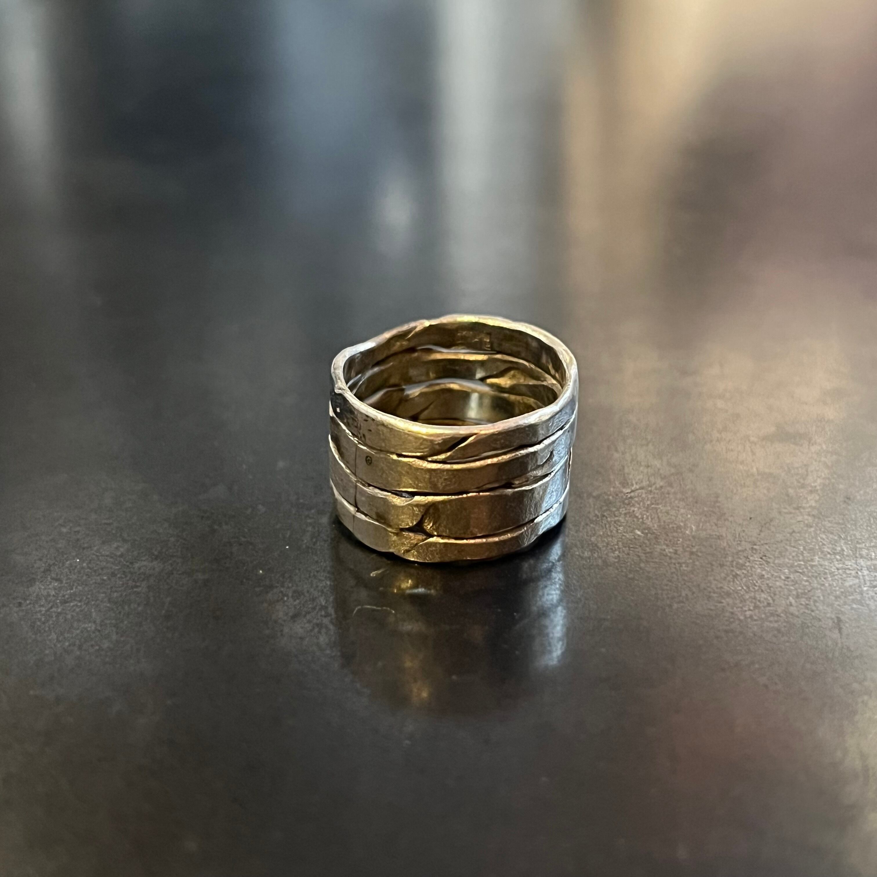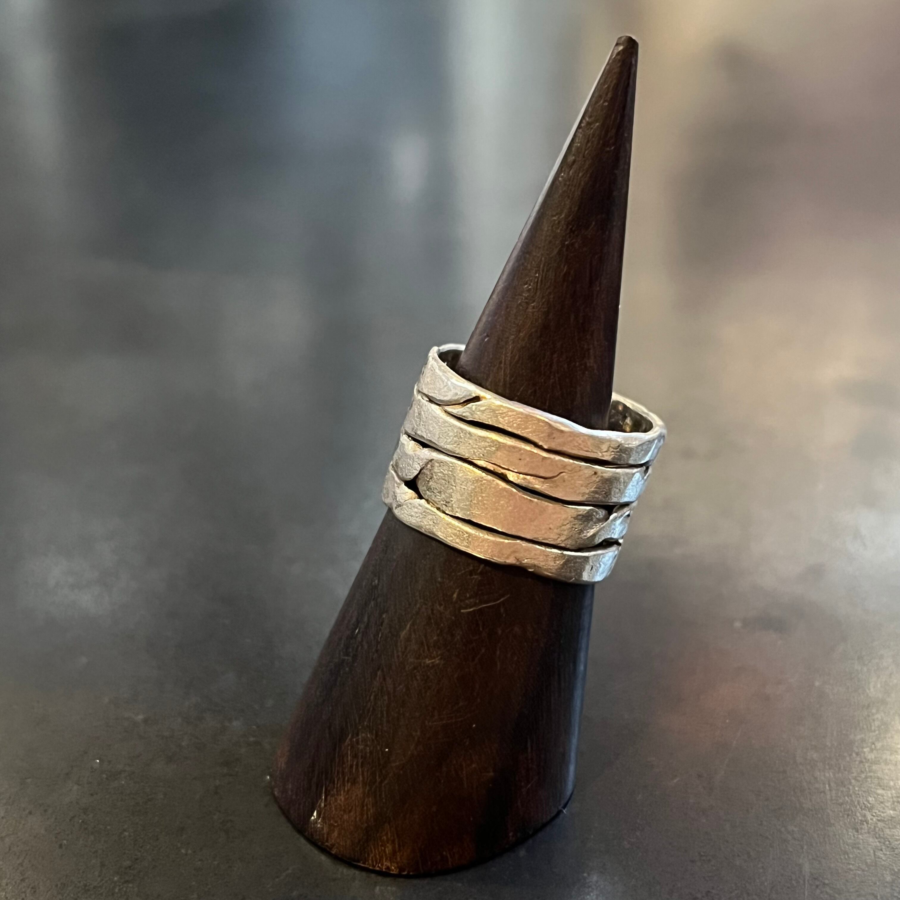 海外で買い付けたワイドユニークコネクテッドデザインのシルバーリングです。