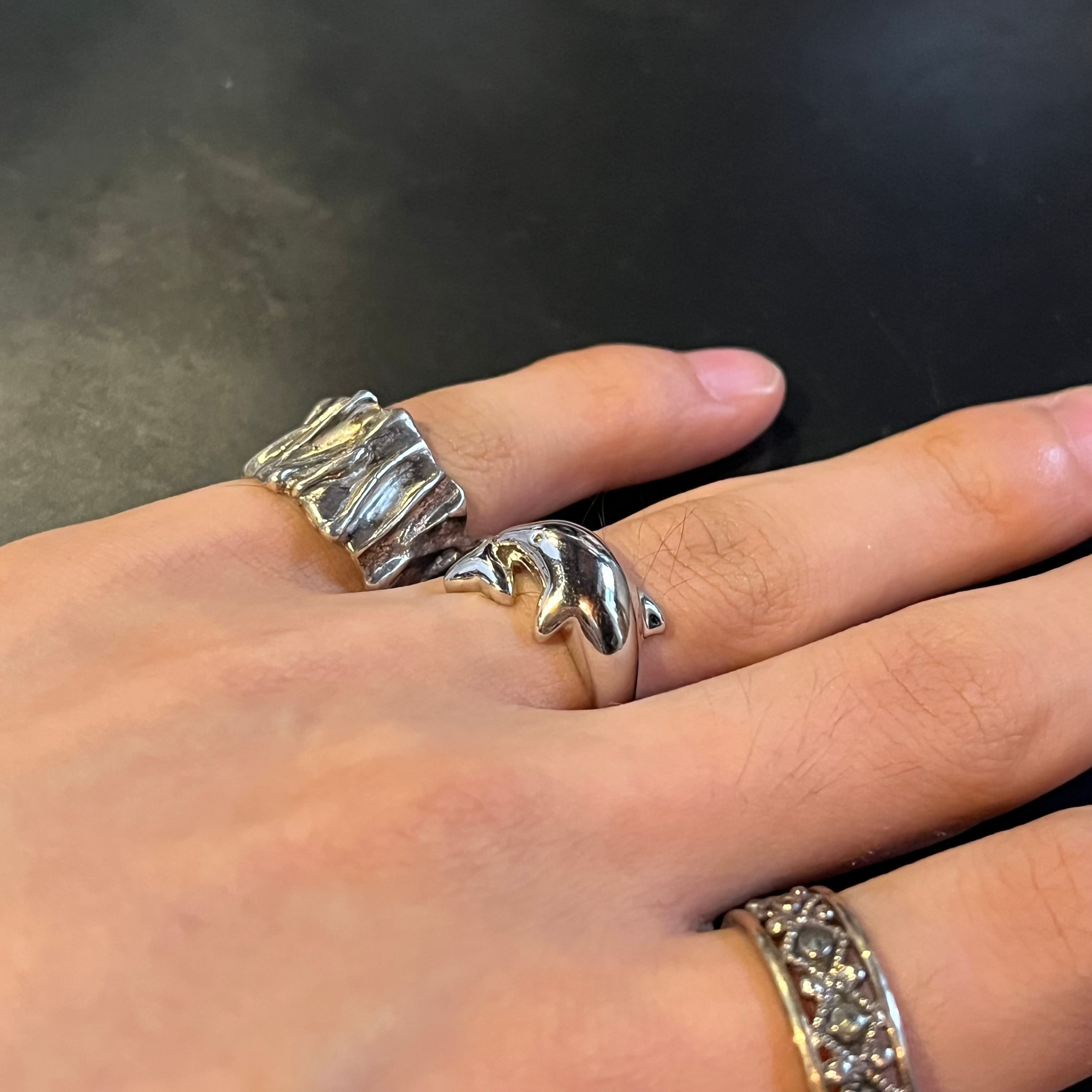 海外で買い付けたドルフィンモチーフアニマルデザインのシルバーリングです。