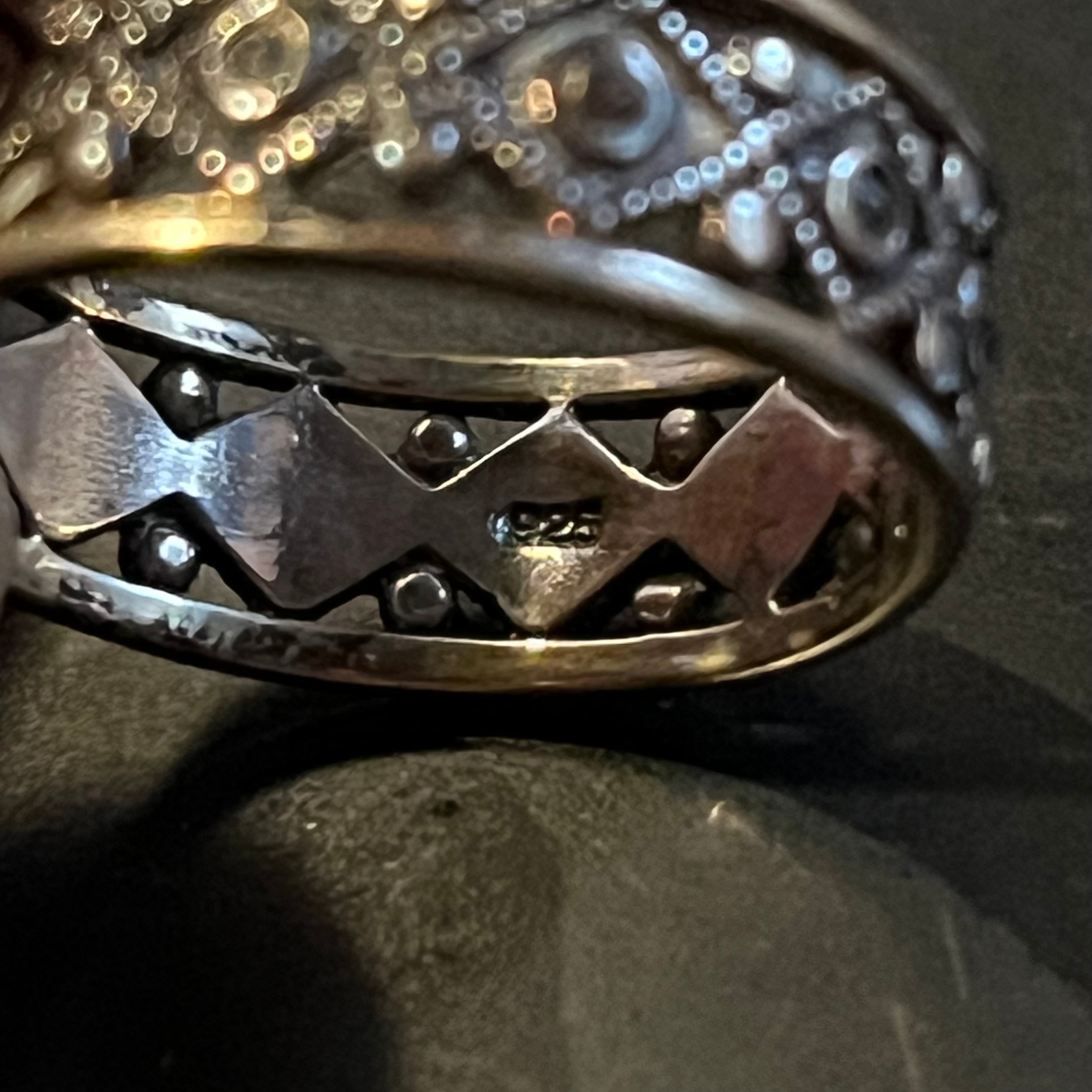海外で買い付けたトライバルグリッターデザインのシルバーリングです。