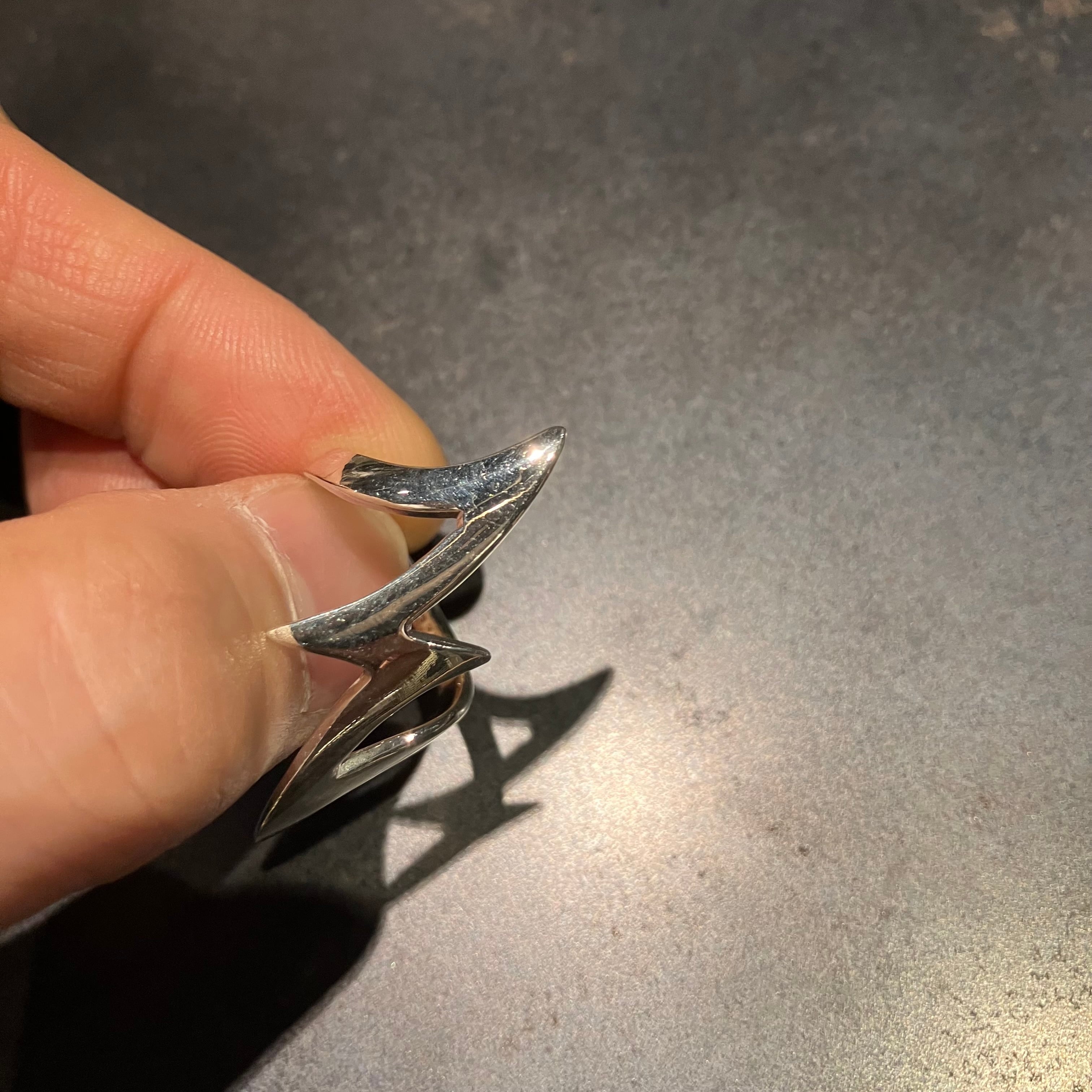 海外で買い付けた稲妻デザインのシルバーワイドリングです。