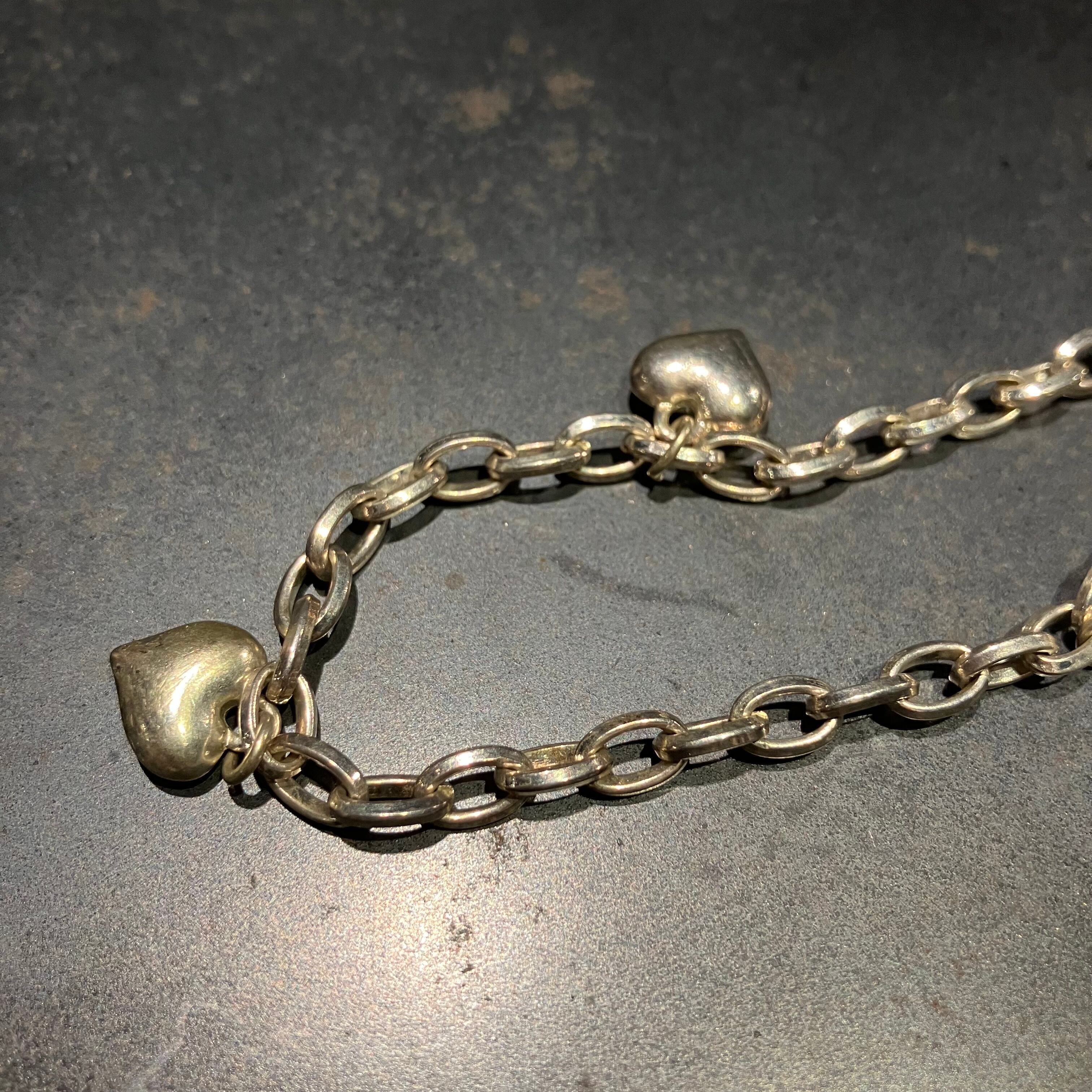海外で買い付けたハートモチーフデザインのシルバーブレスレットです。