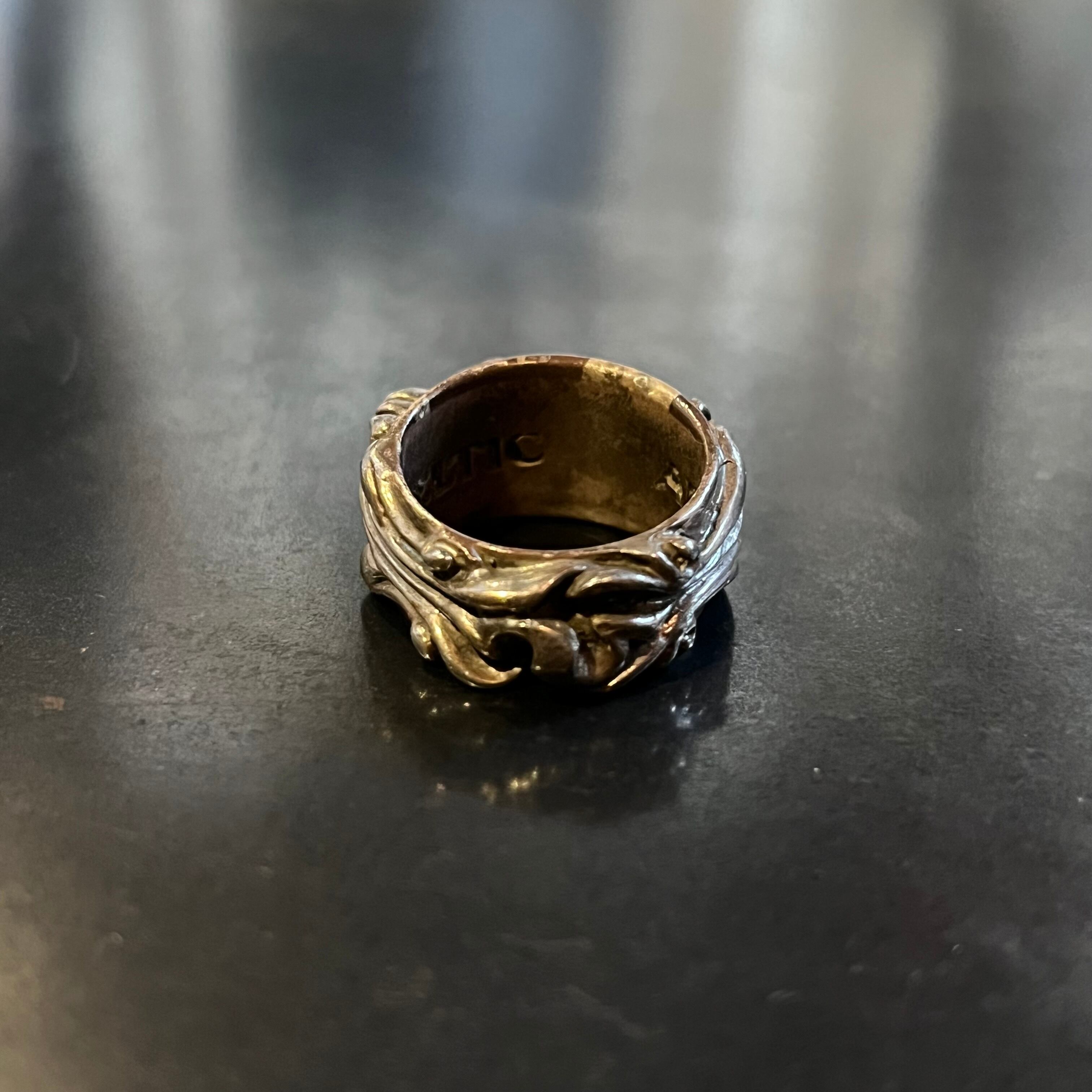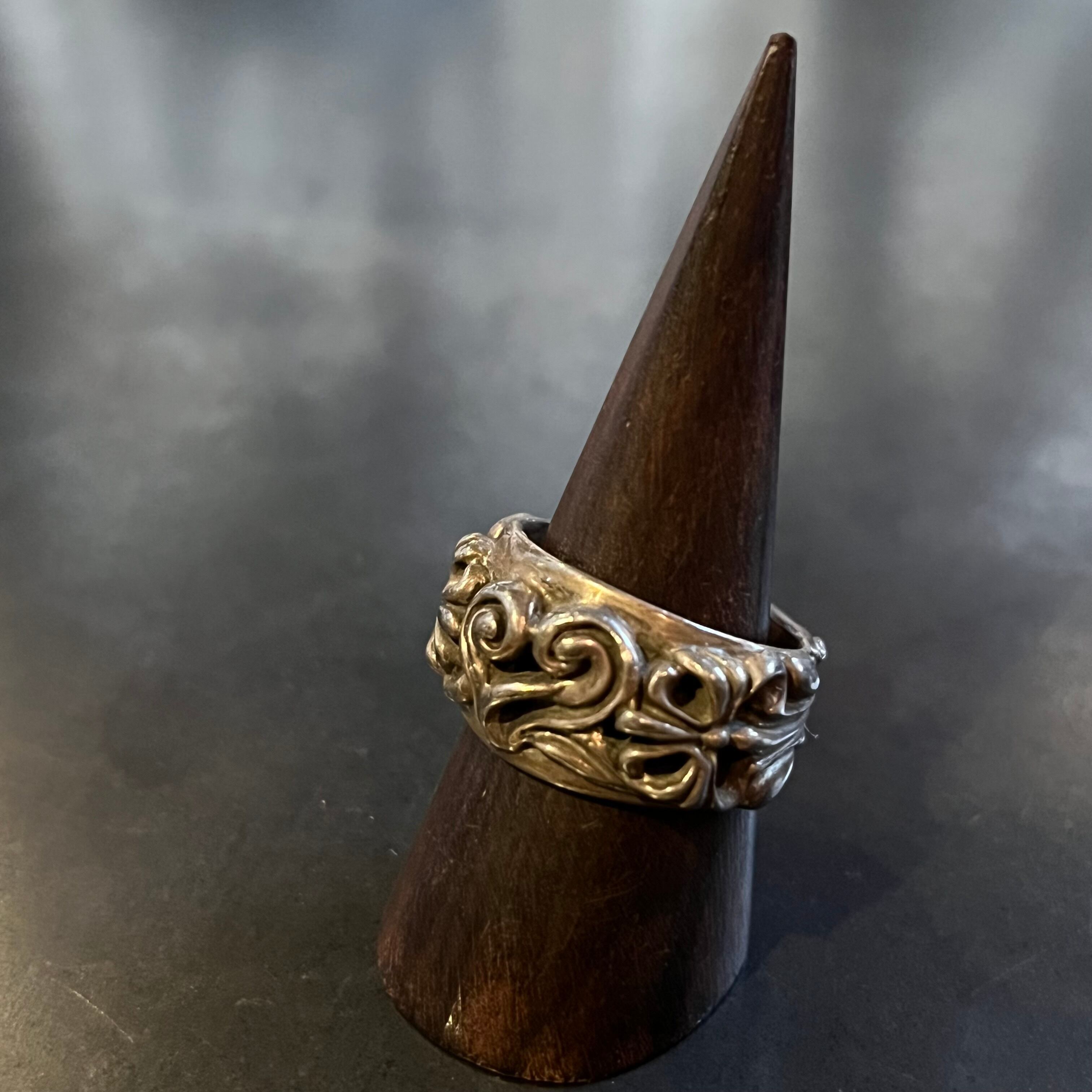海外で買い付けたハートモチーフフローラルクロスデザインのシルバーリングです。
