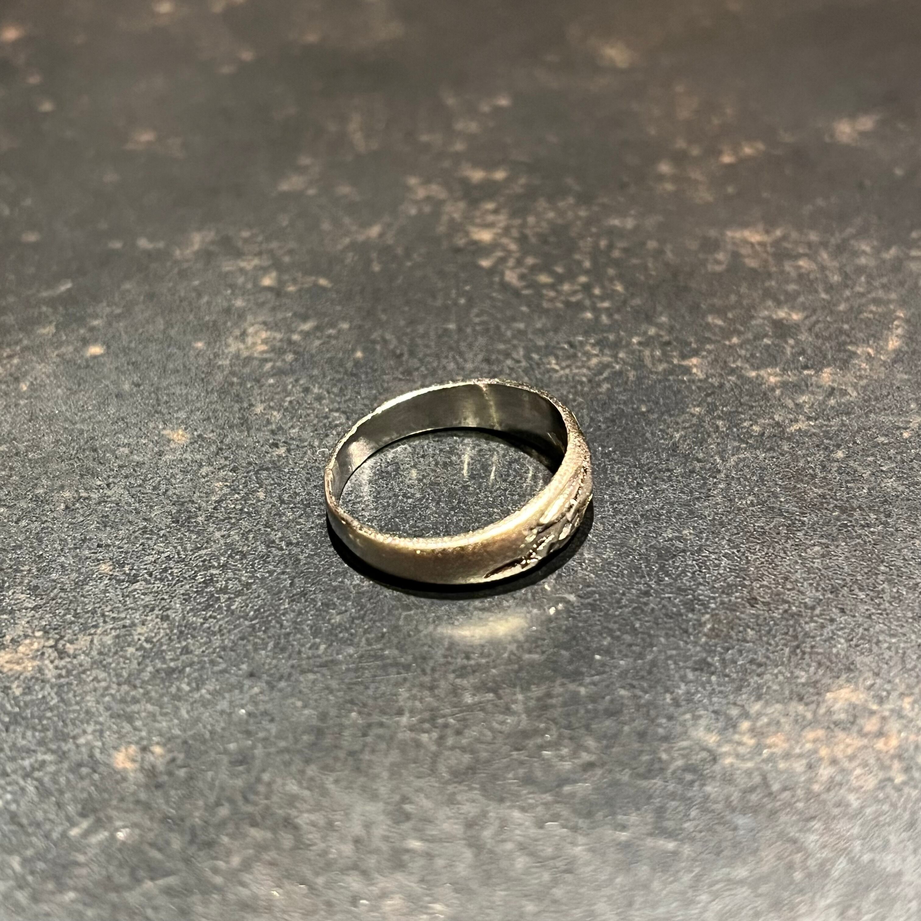 海外で買い付けたトラディショナルフラワーモチーフデザインのシルバーリングです。