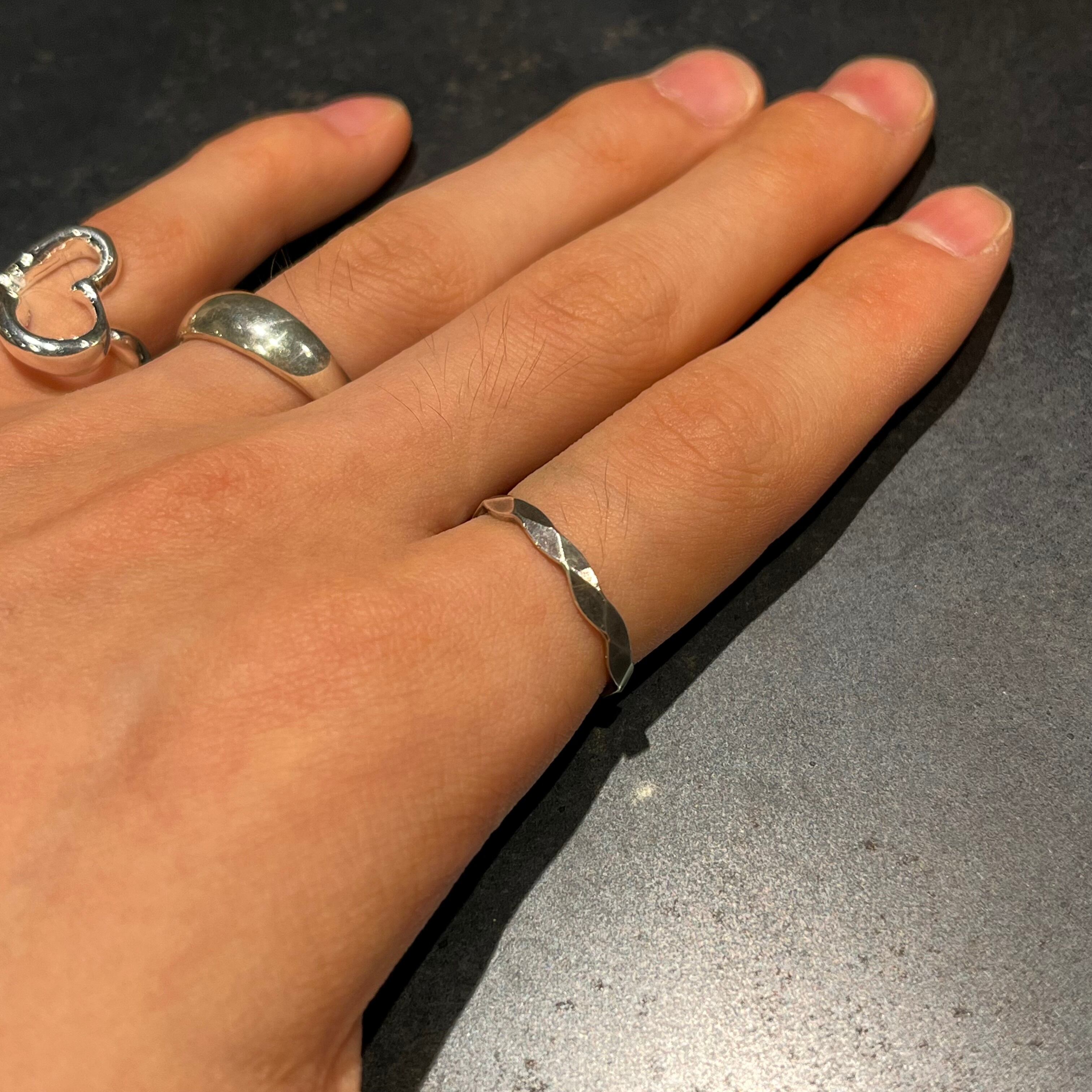 海外で買い付けたハンマードデザインのシルバーリングです。