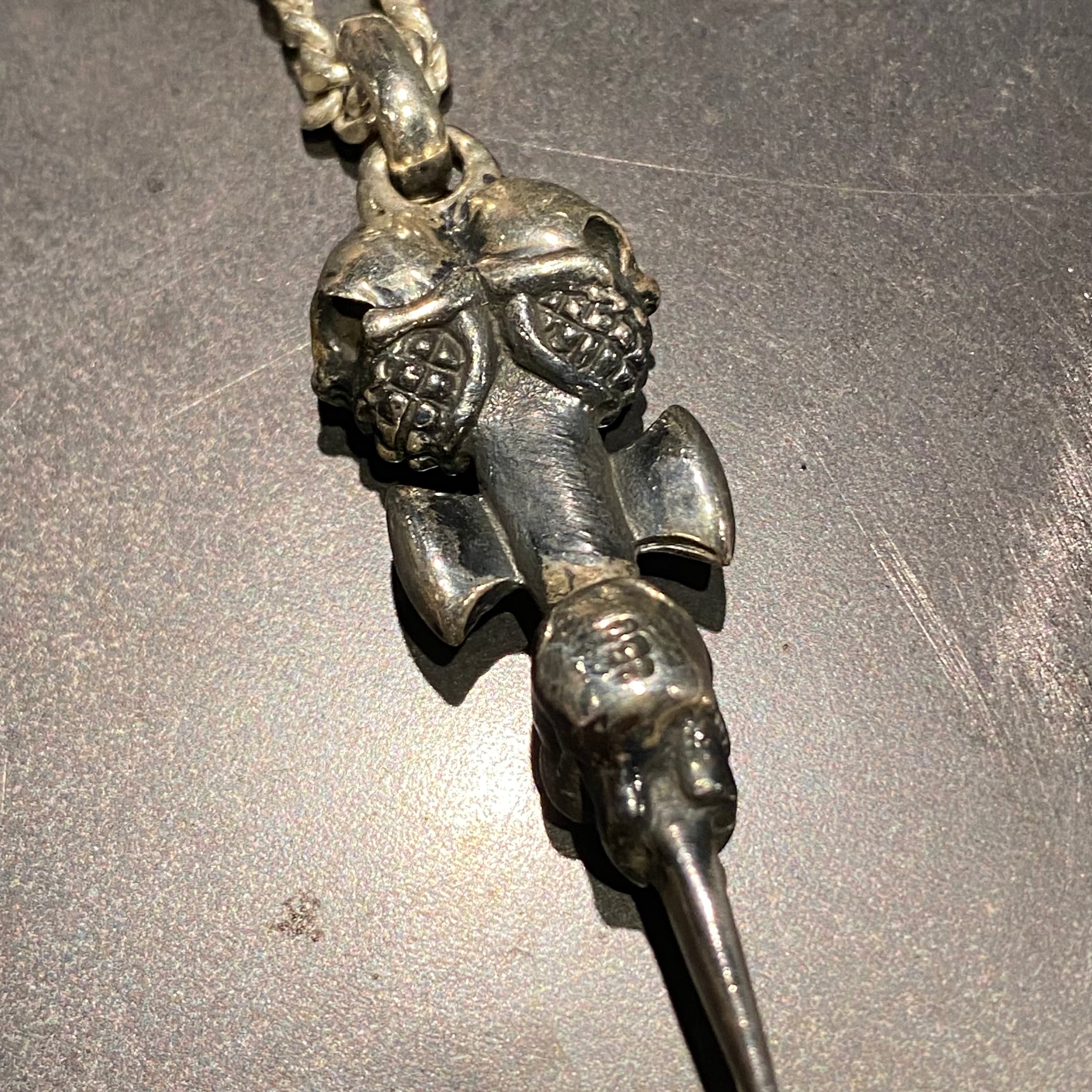 海外で買い付けたスカルクロスデザイントップネックレスです。