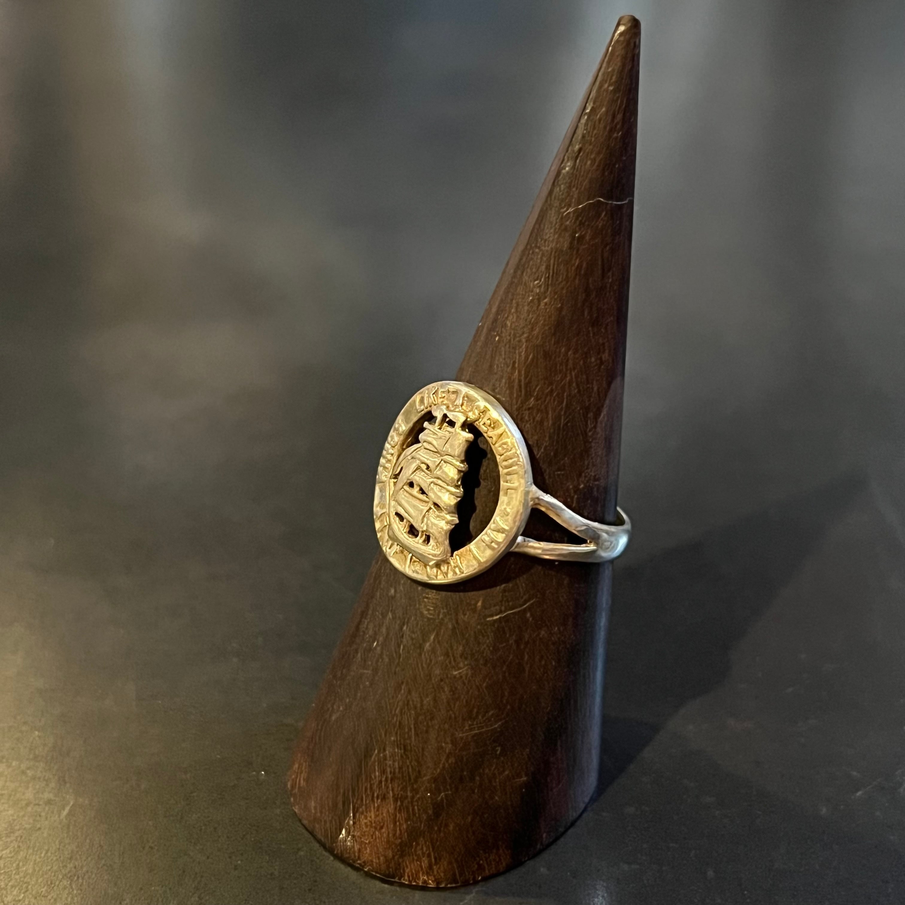 海外で買い付けたシップモチーフマリーンデザインのシルバーリングです。