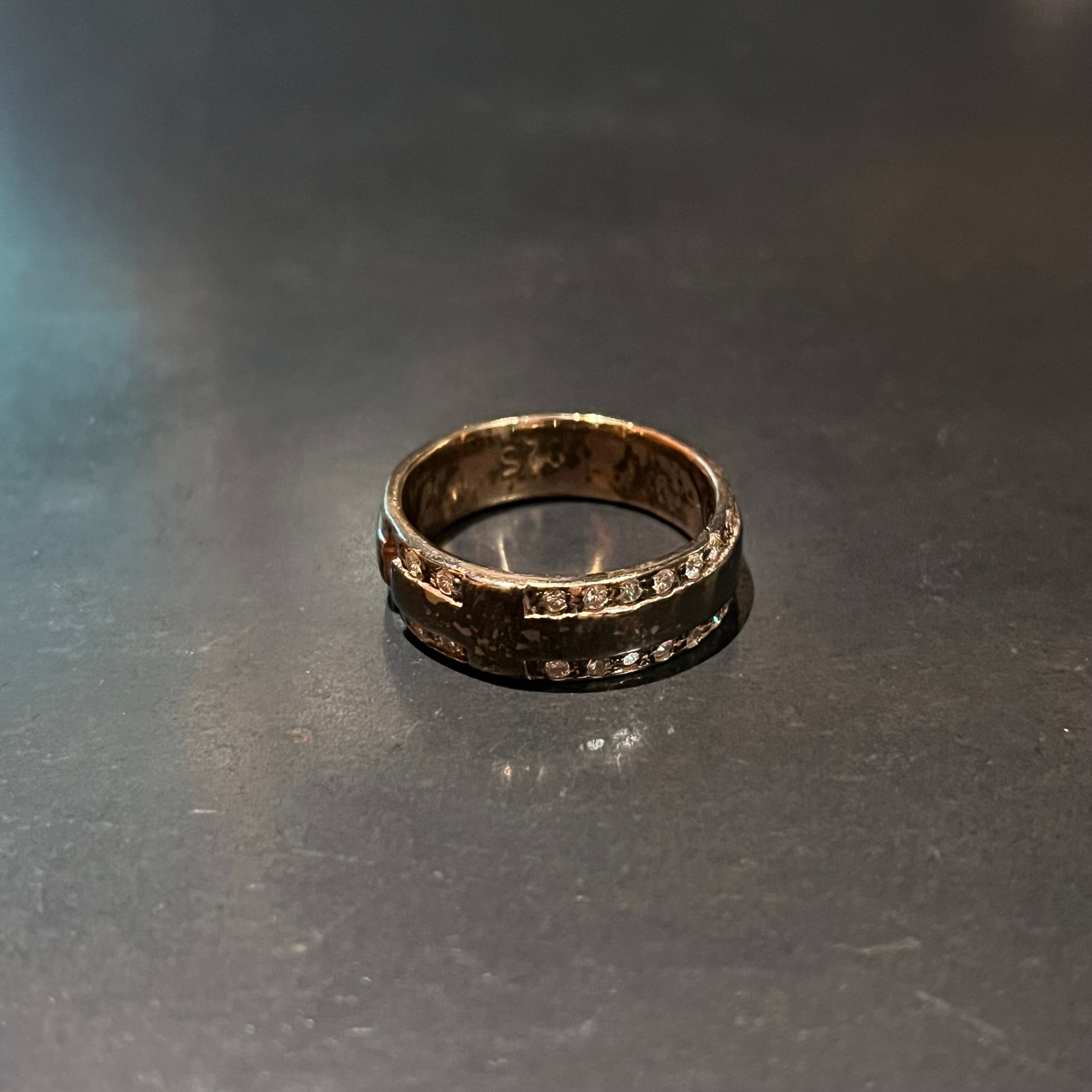海外で買い付けたクロスモチーフグリッターデザインのシルバーリングです。