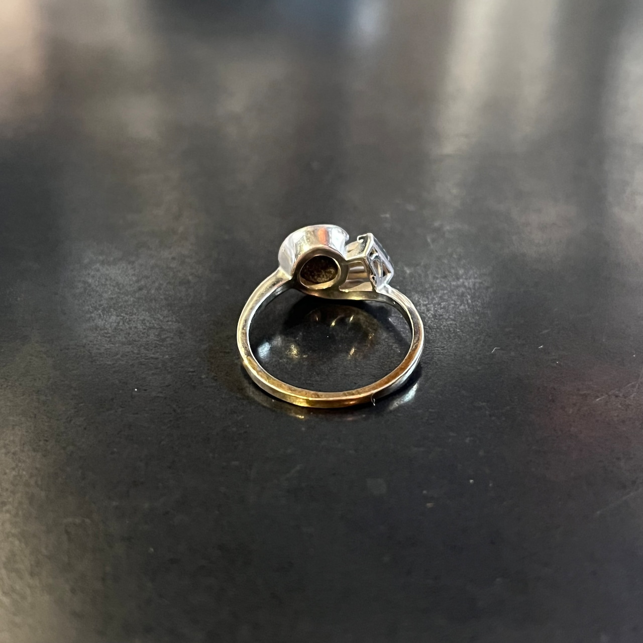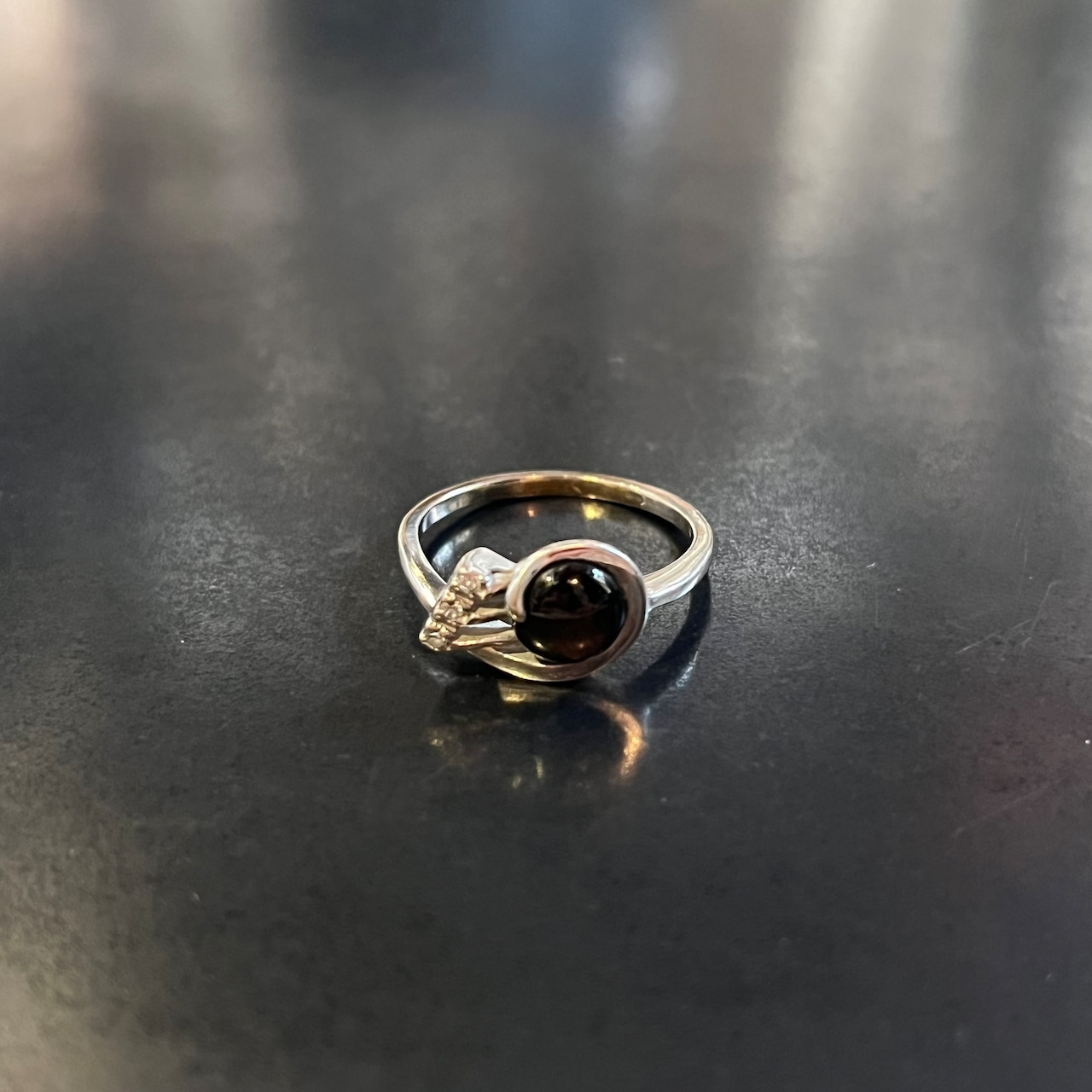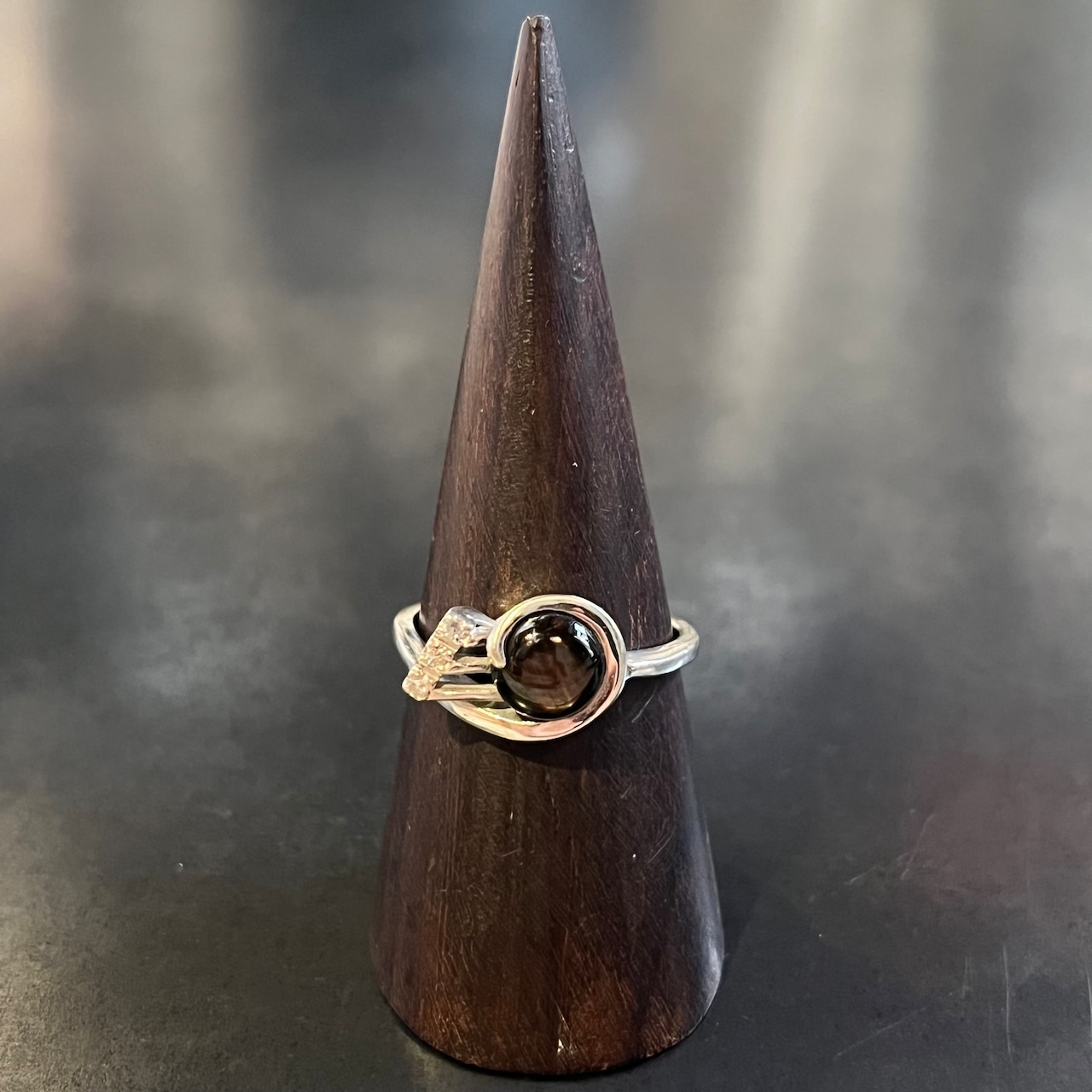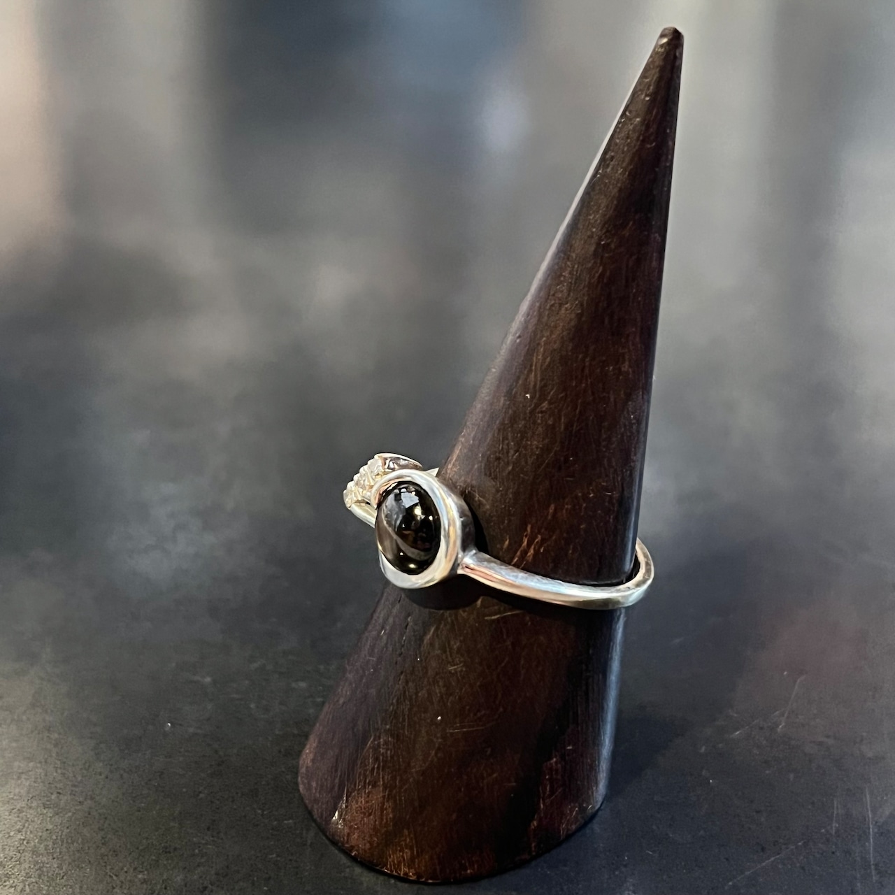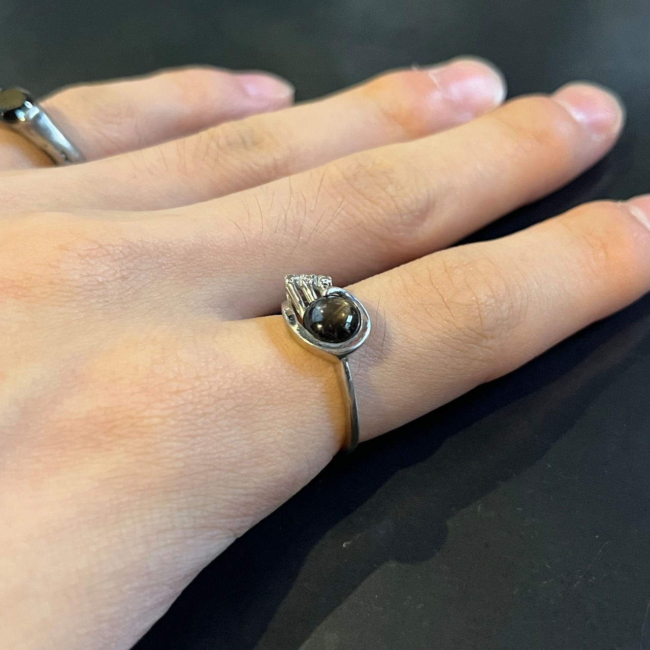 海外で買い付けたブラックストーンモチーフグリッターデザインのシルバーリングです。