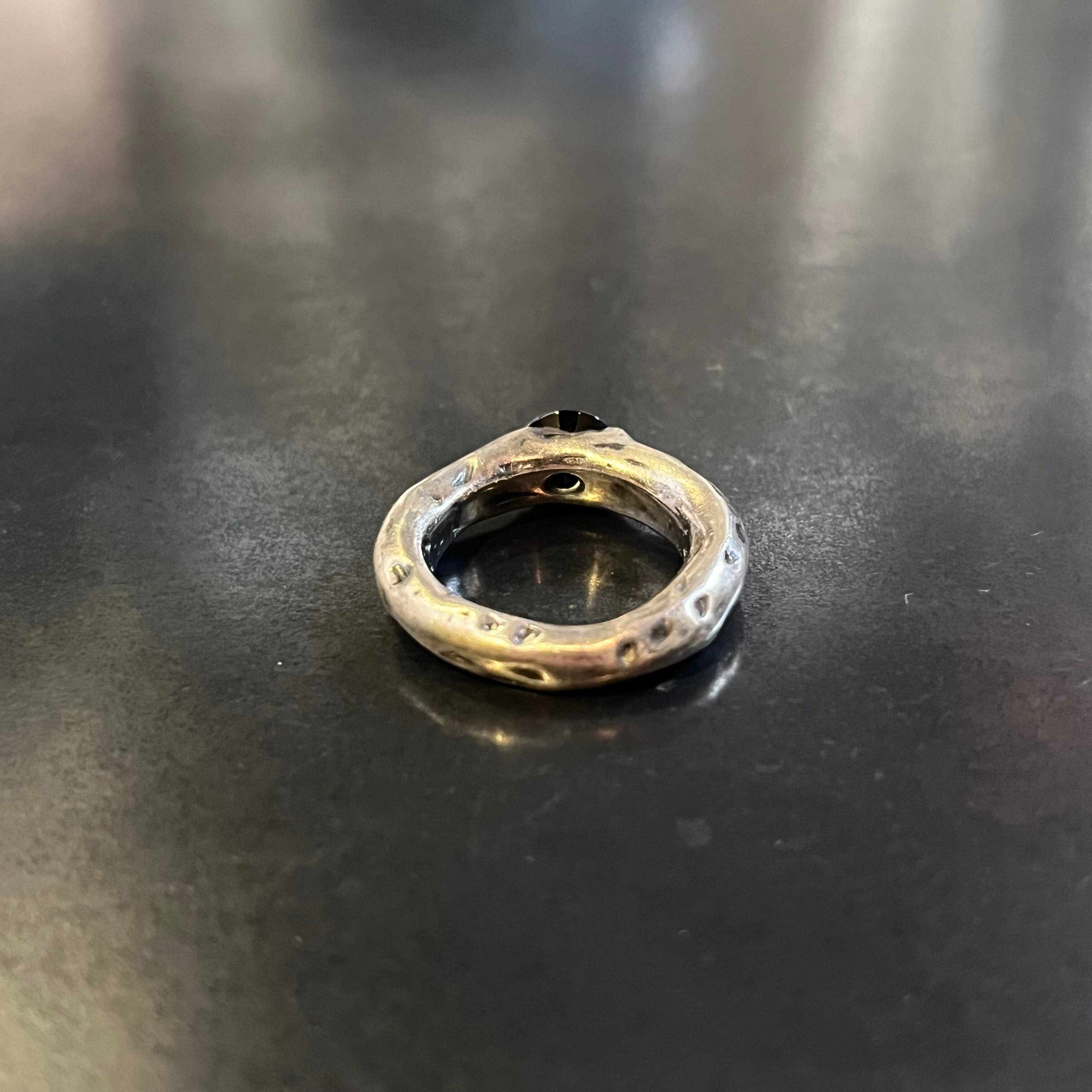 海外で買い付けたオニキスストーンモチーフ・ラフデザインのシルバーリングです。