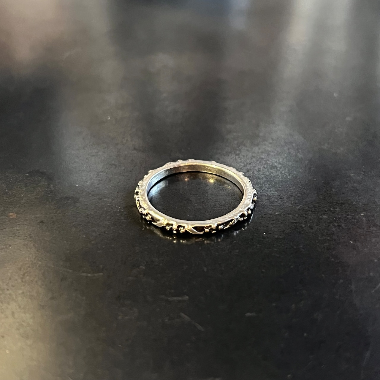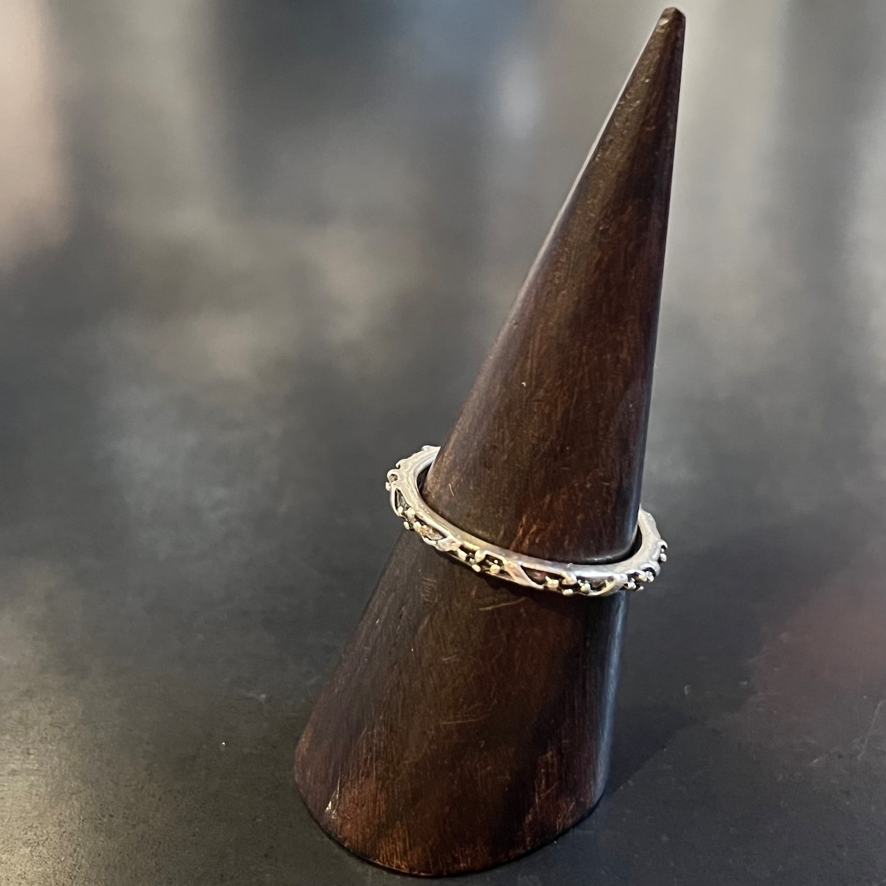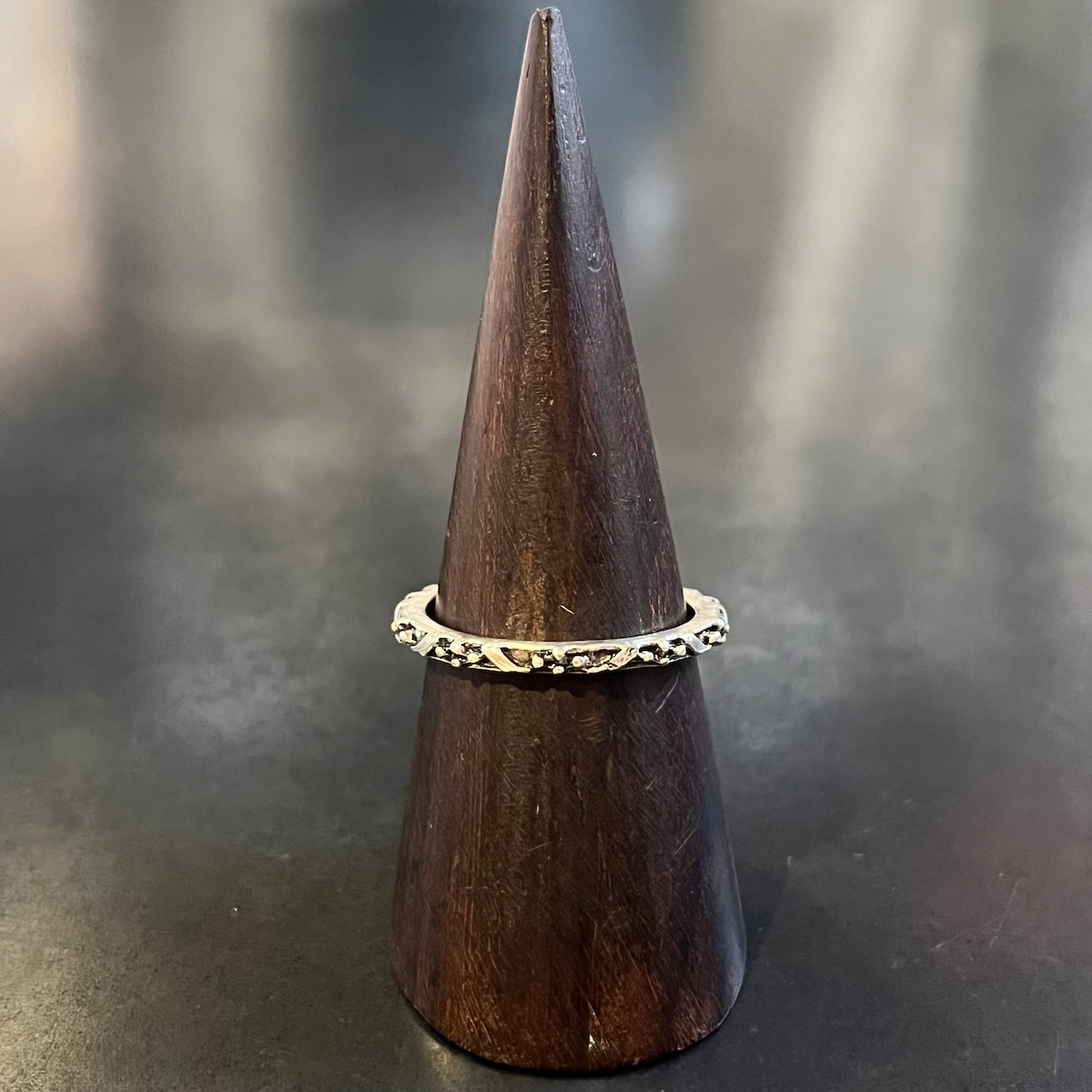 海外で買い付けたクロスドットモチーフデザインのシルバーリングです。