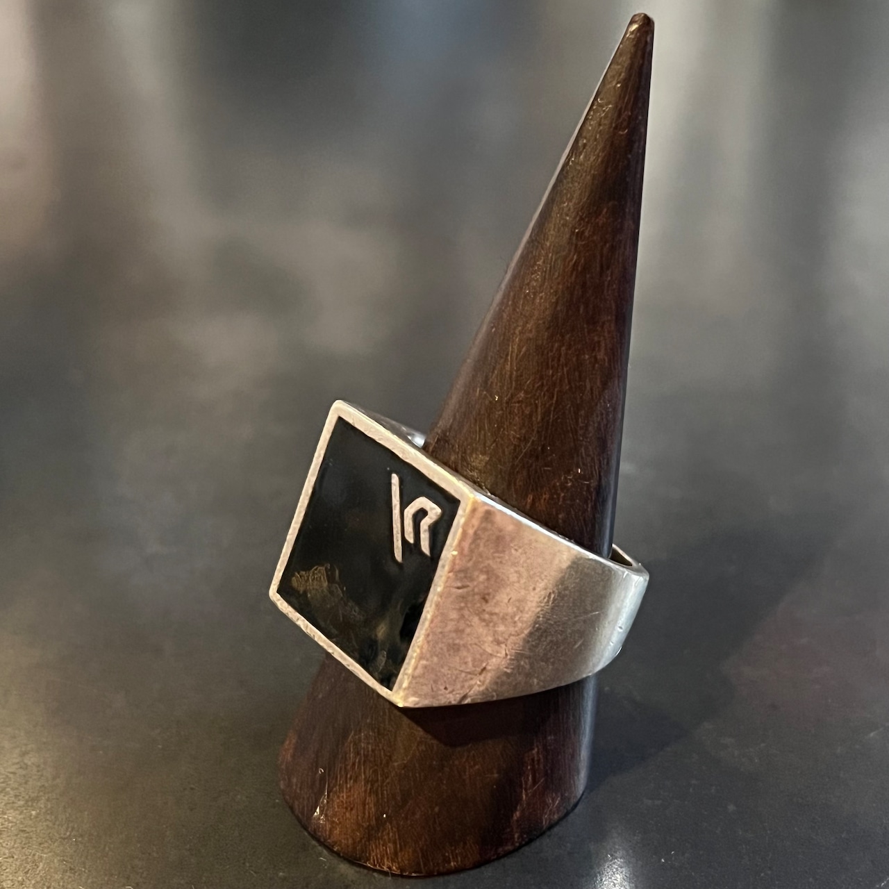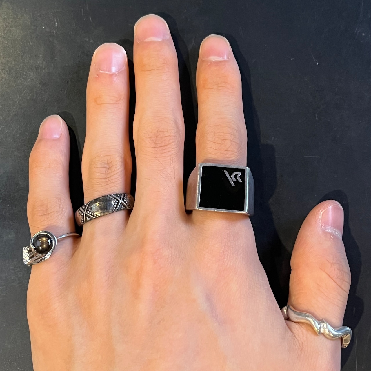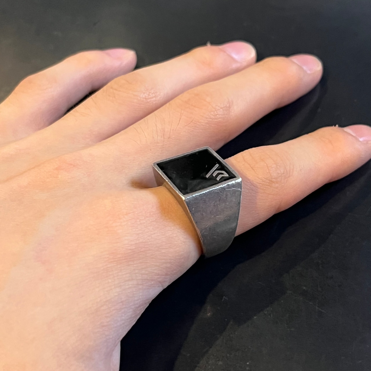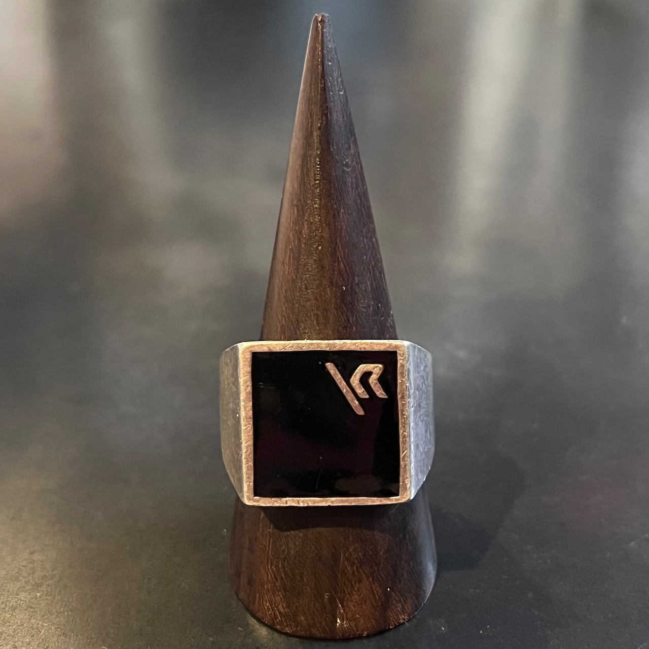 海外で買い付けたビッグオニキスストーン・スクエアデザインのシルバーリングです。