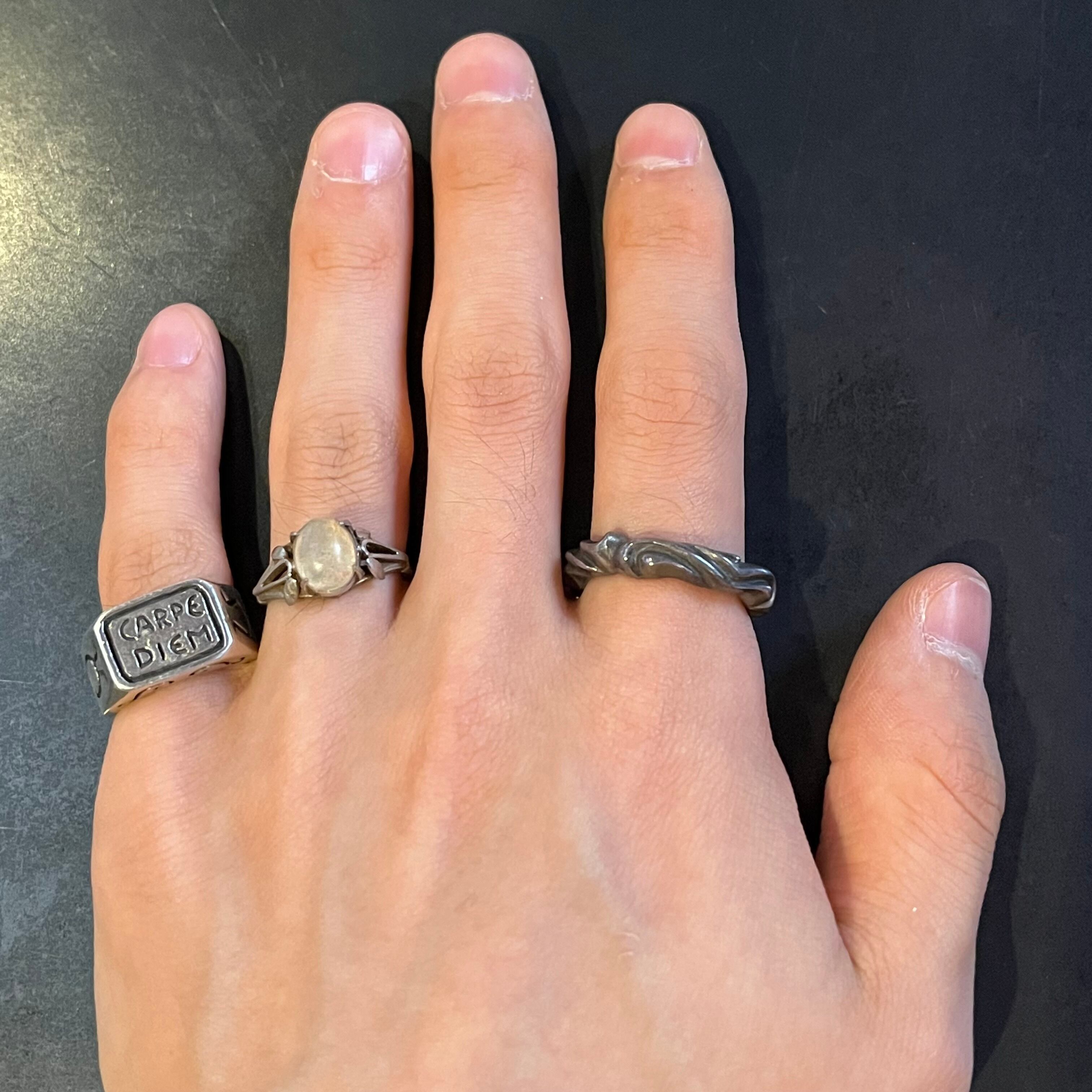 海外で買い付けたカルぺ・ディエムエングレービングデザインのシルバーリングです。