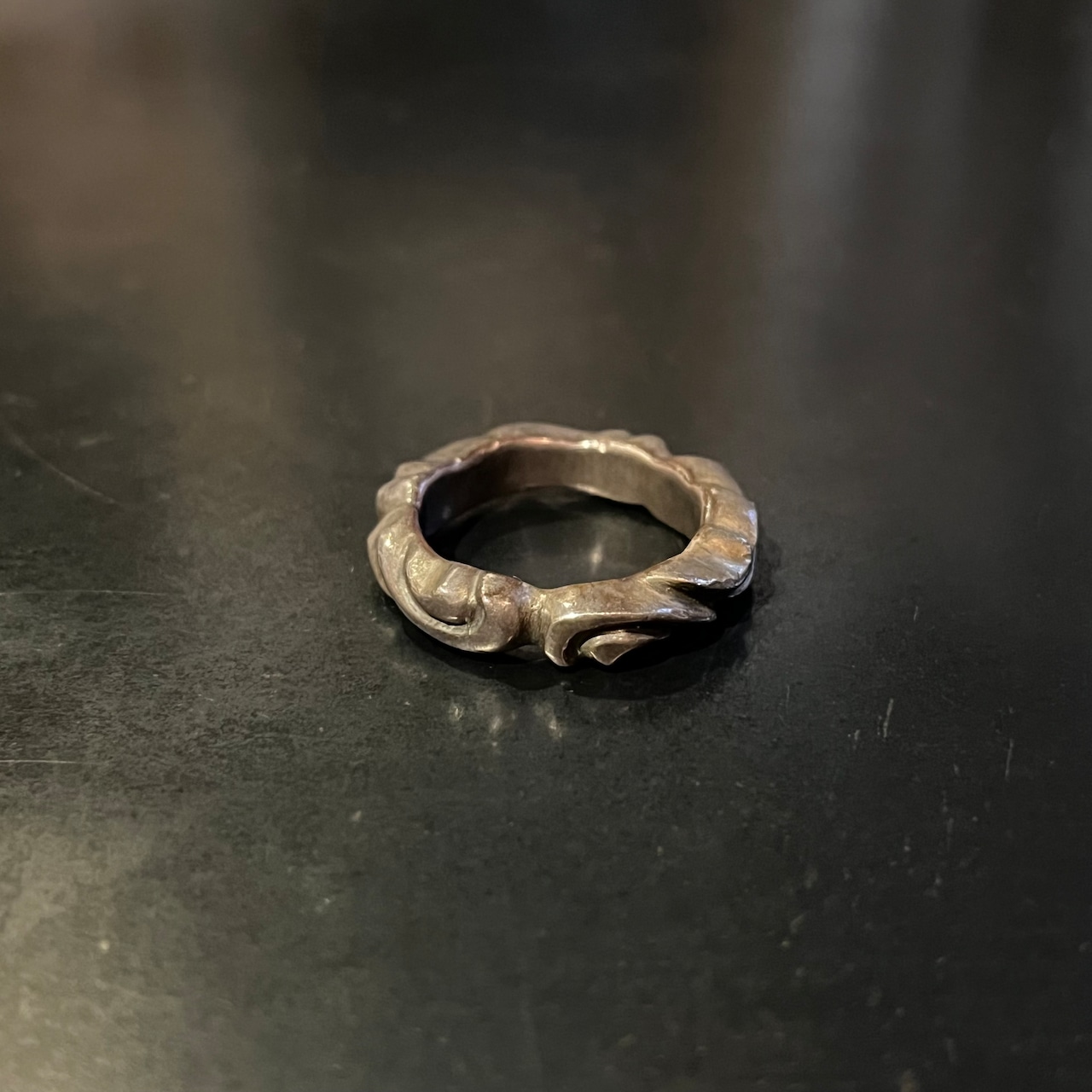 海外で買い付けたウェービースパイラルデザインのシルバーリングです。