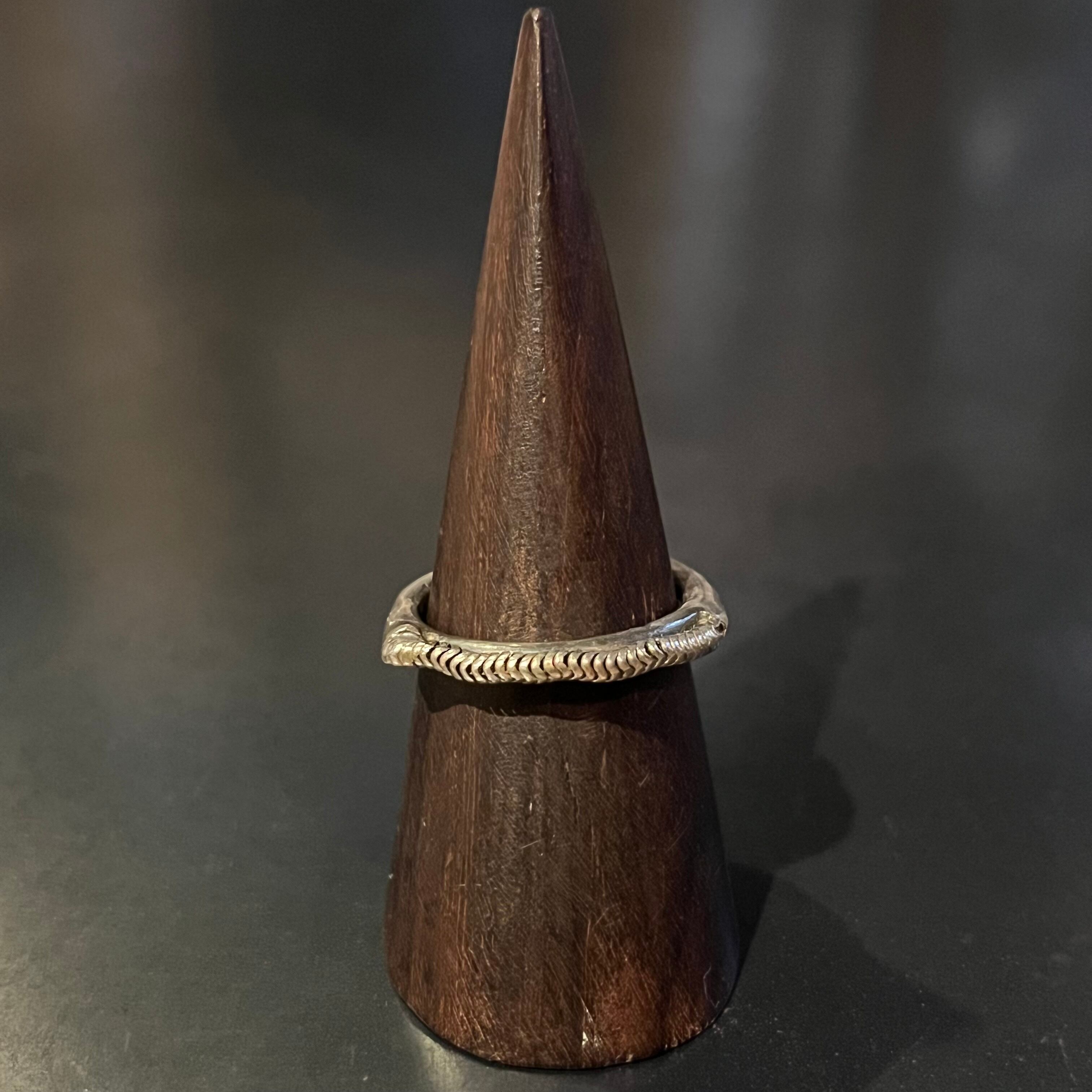 海外で買い付けたスネークスキンデザインのシルバーリングです。