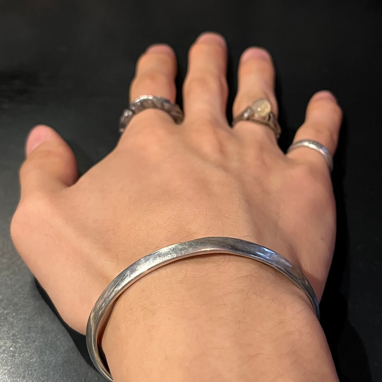 海外で買い付けたツイストデザインのシルバーバングルです。