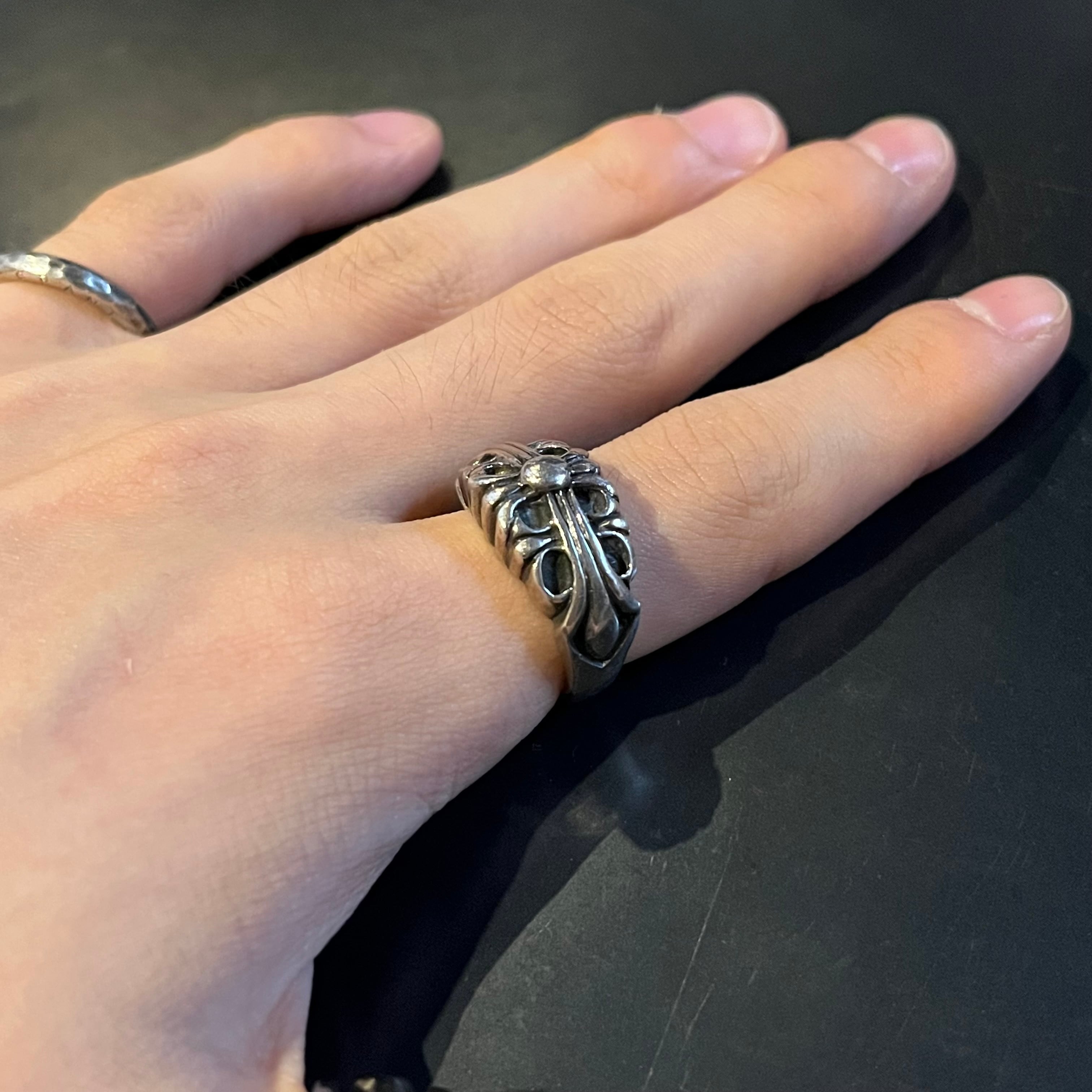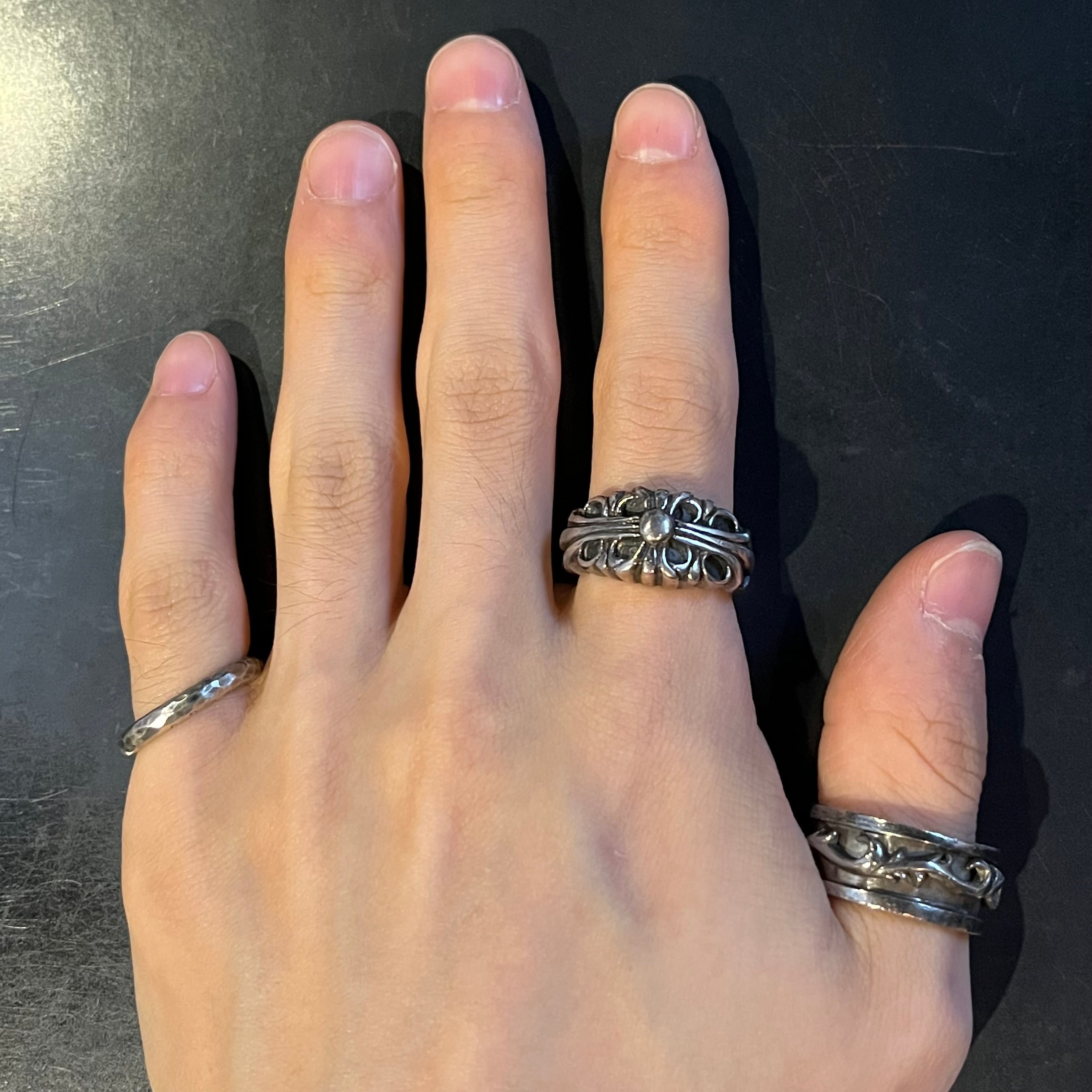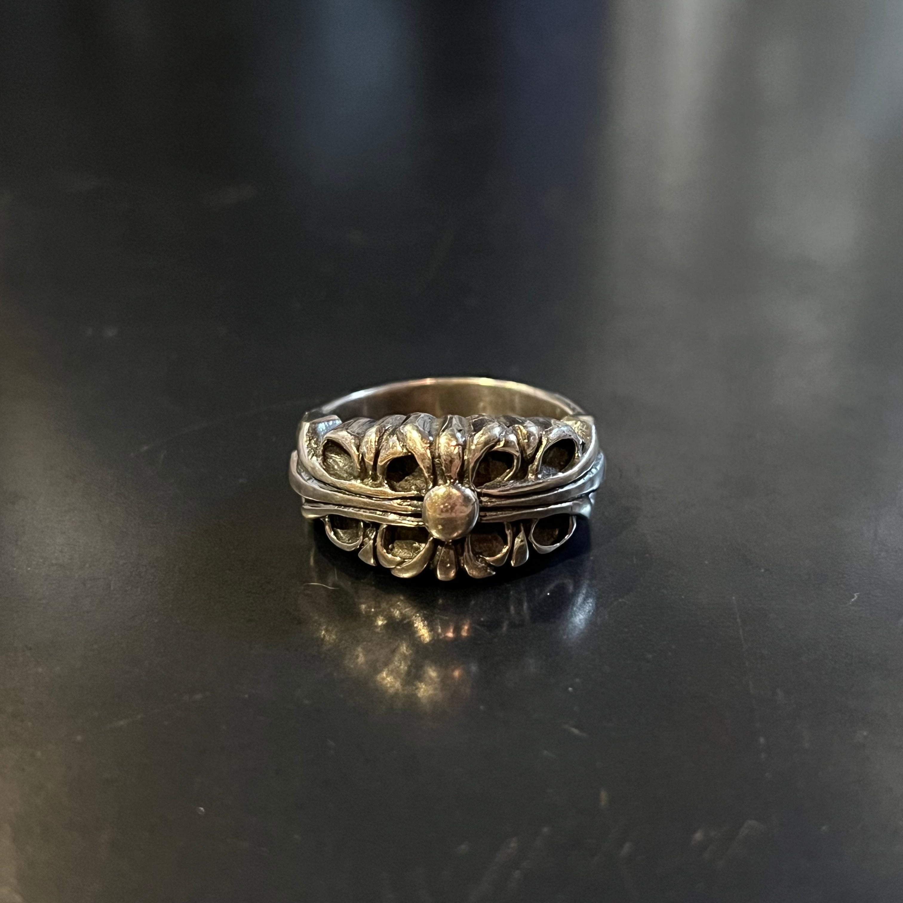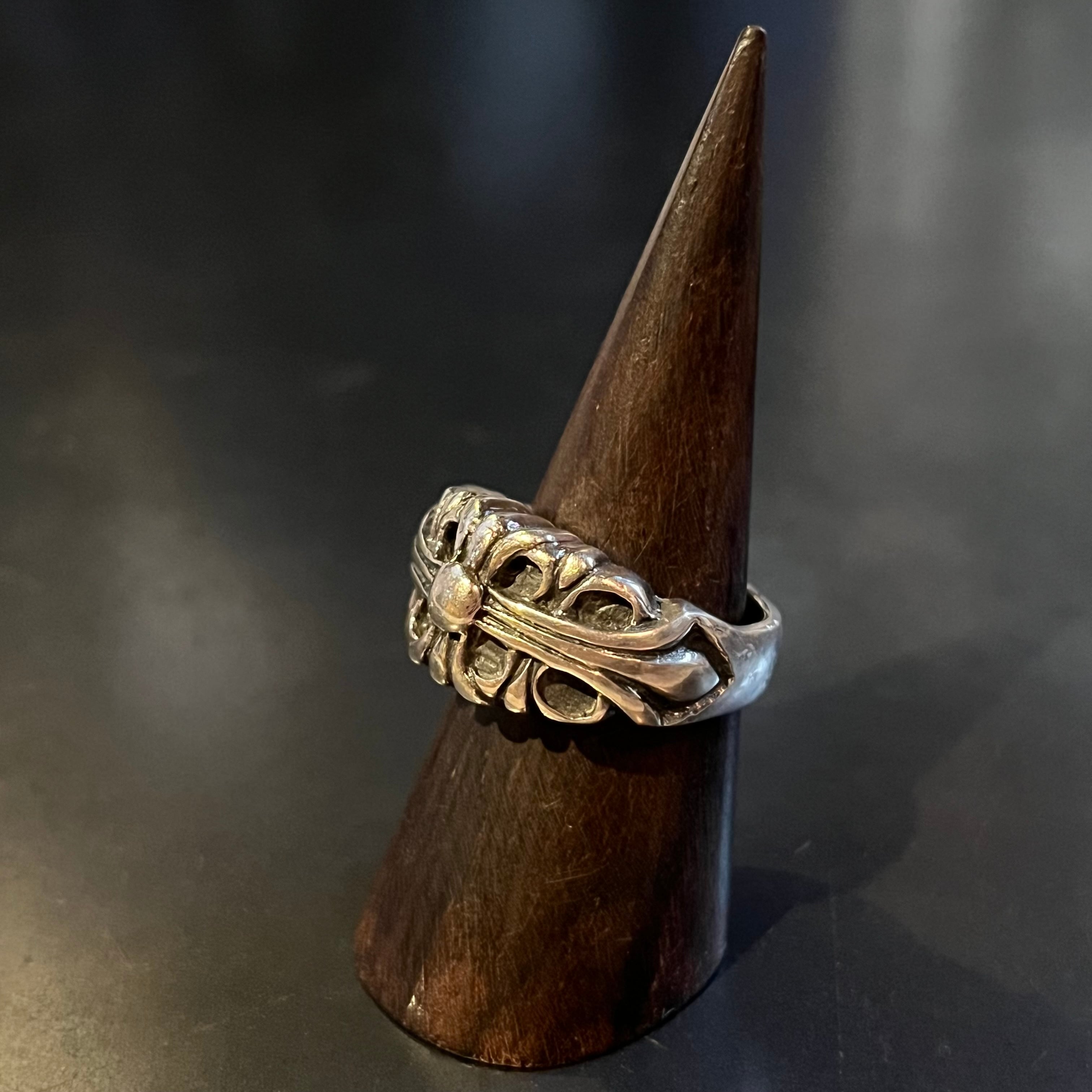 海外で買い付けたフローラルクロスデザインのシルバーリングです。