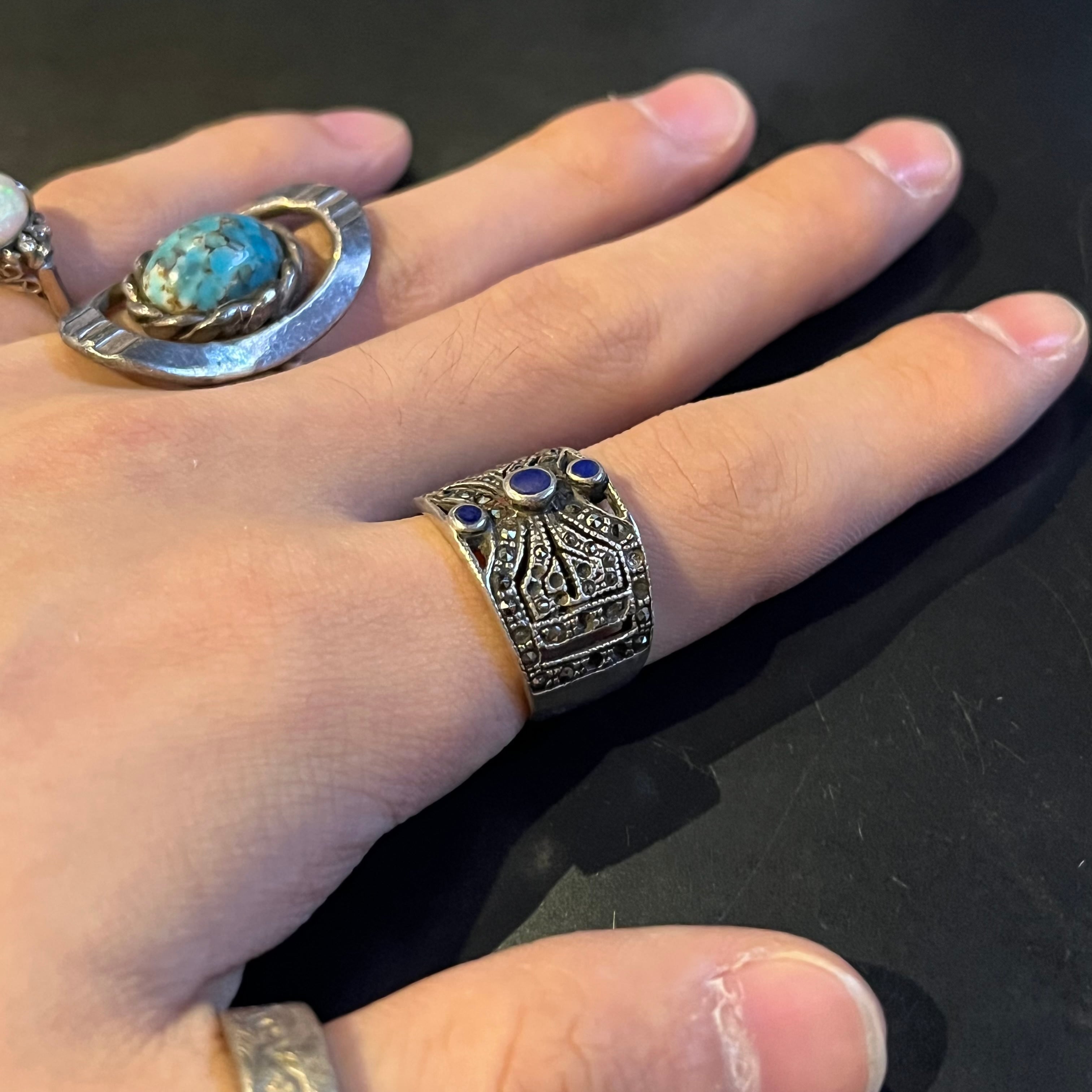 海外で買い付けたストーンモチーフグリッタートライバルデザインのシルバーリングです。