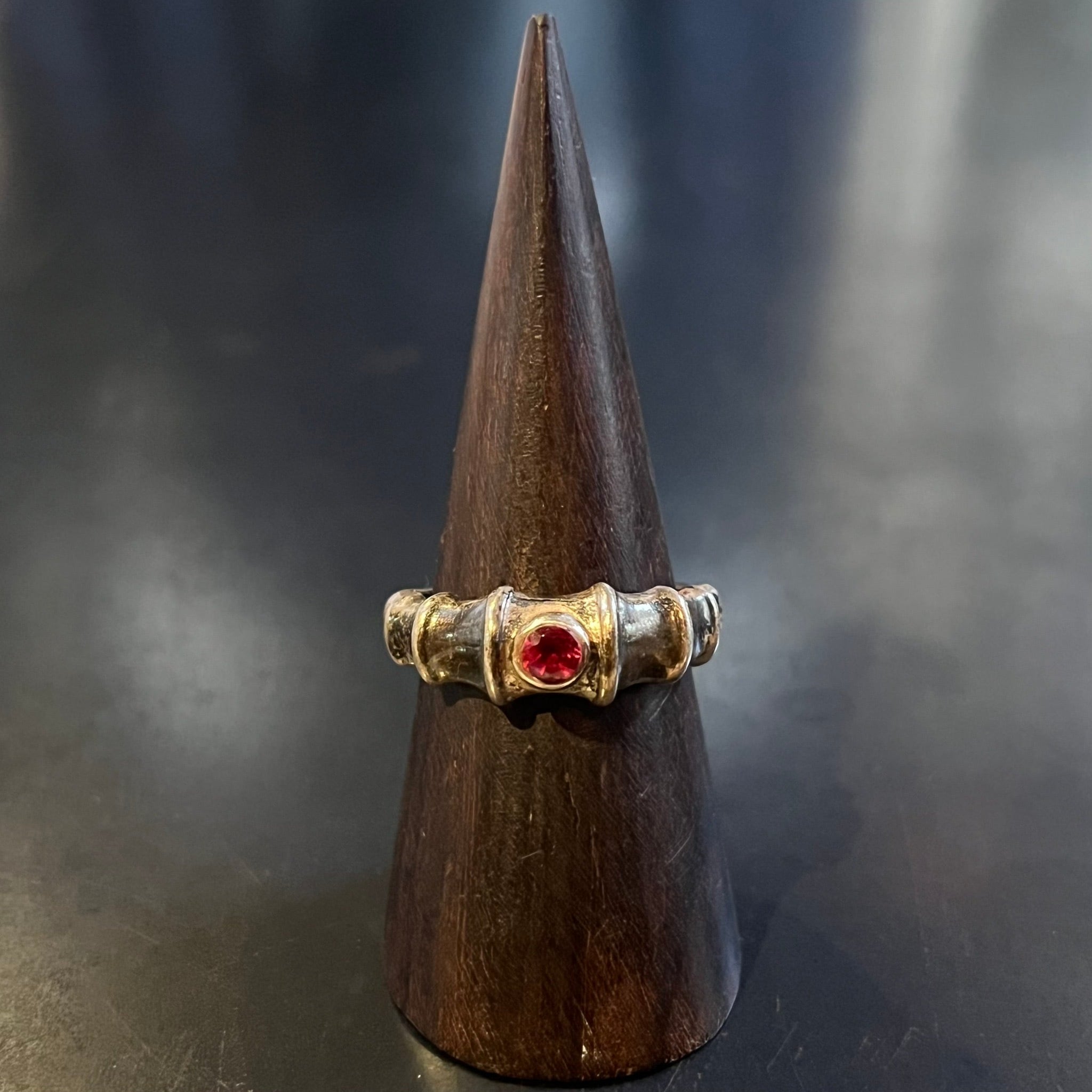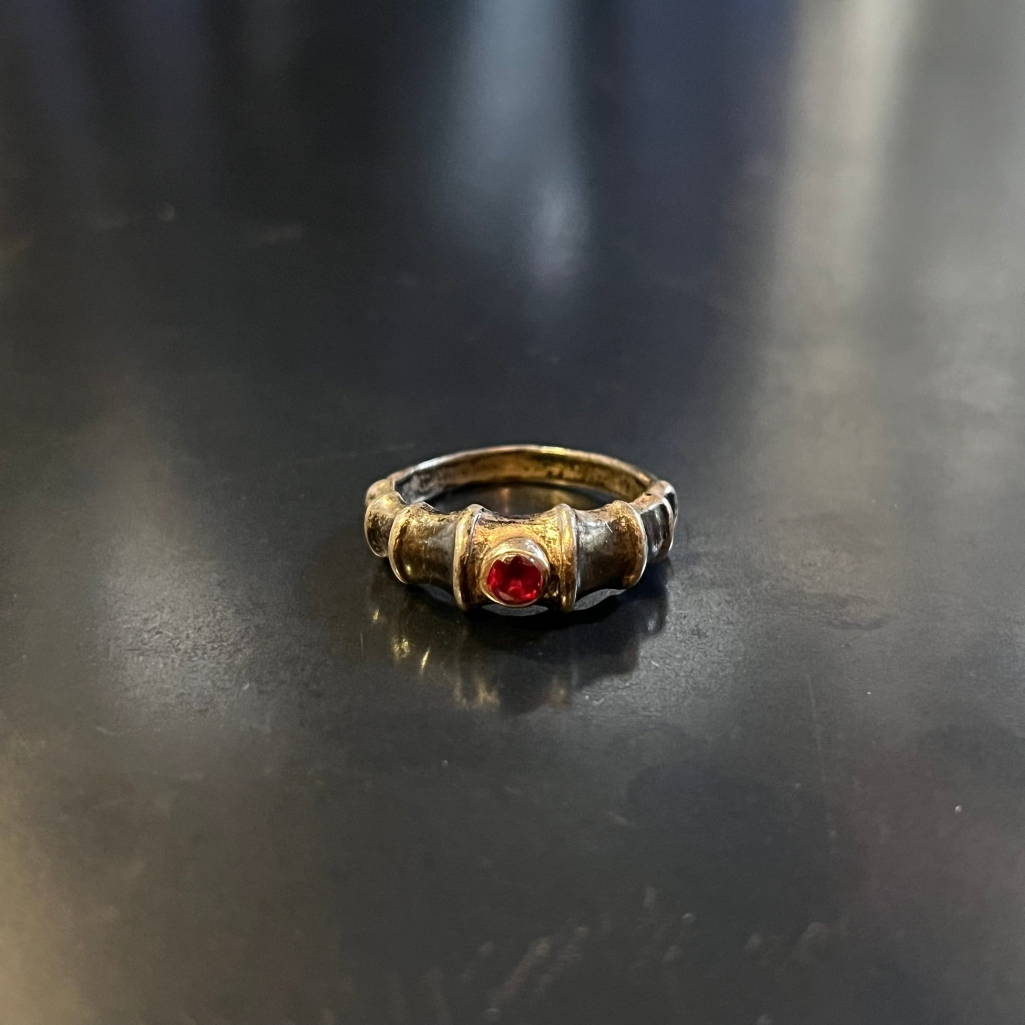 SILVER925 RED STONE MOTIF BAMBOO DESIGN RING/シルバー/リング