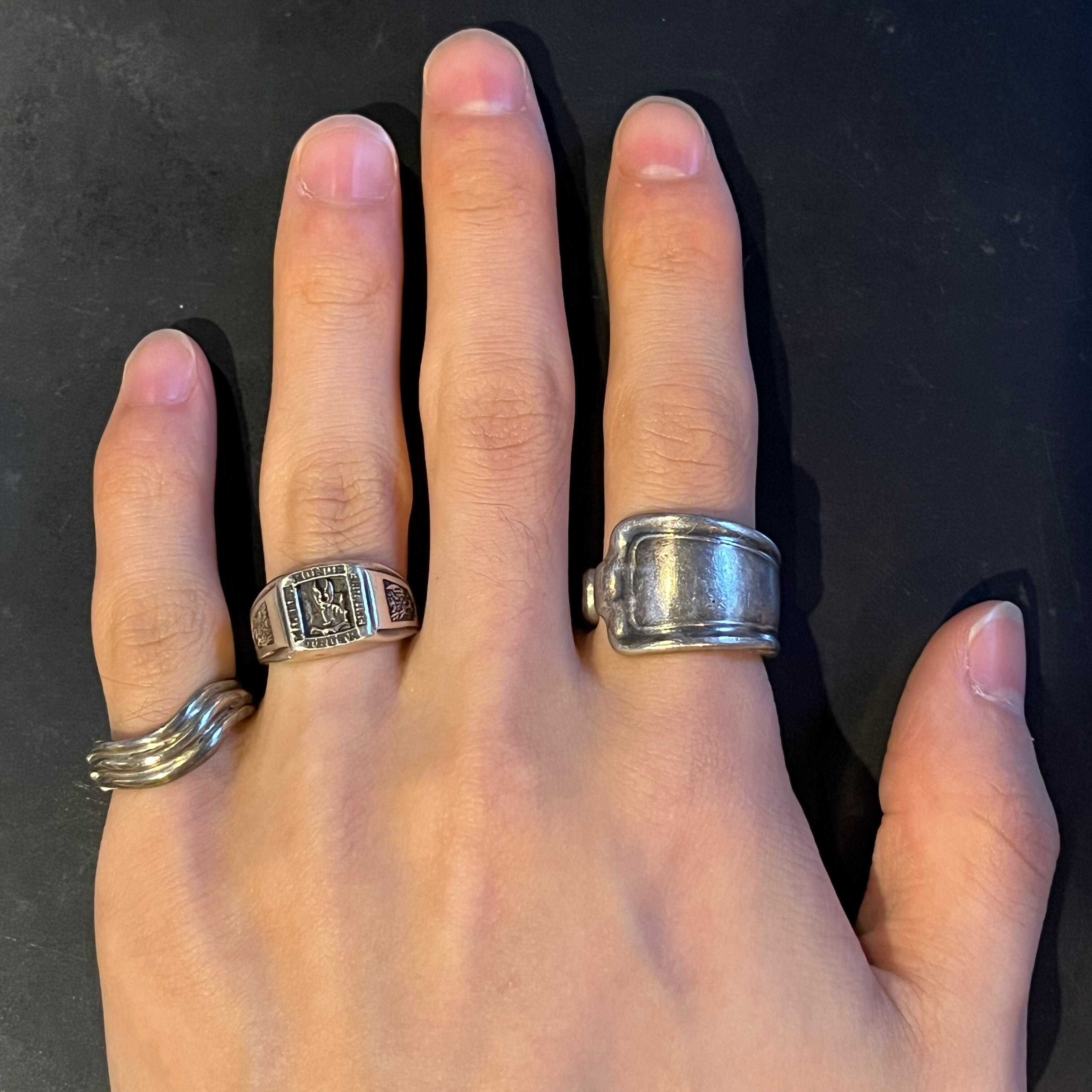 海外で買い付けたメモリアルエングレービングデザインのシルバーリングです。