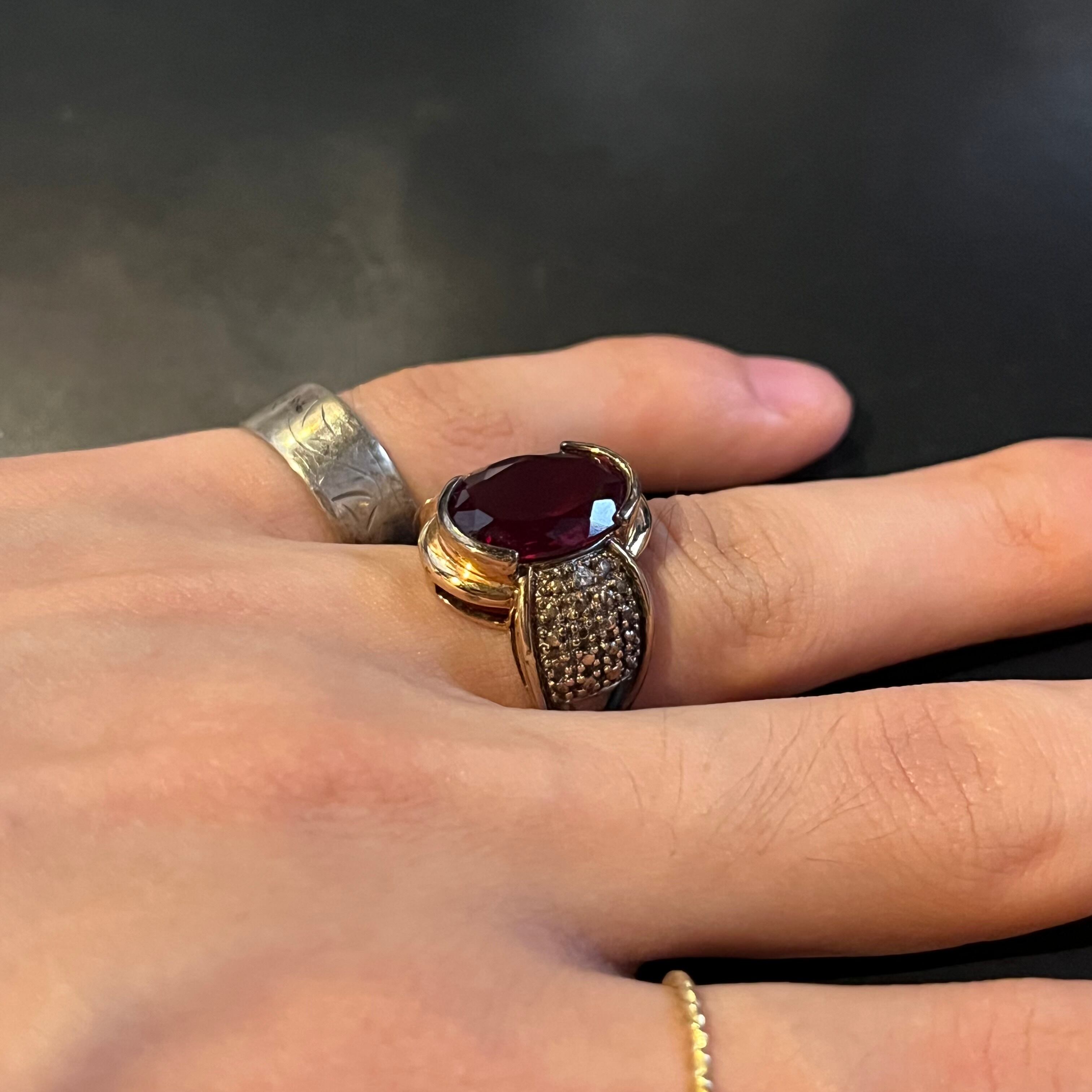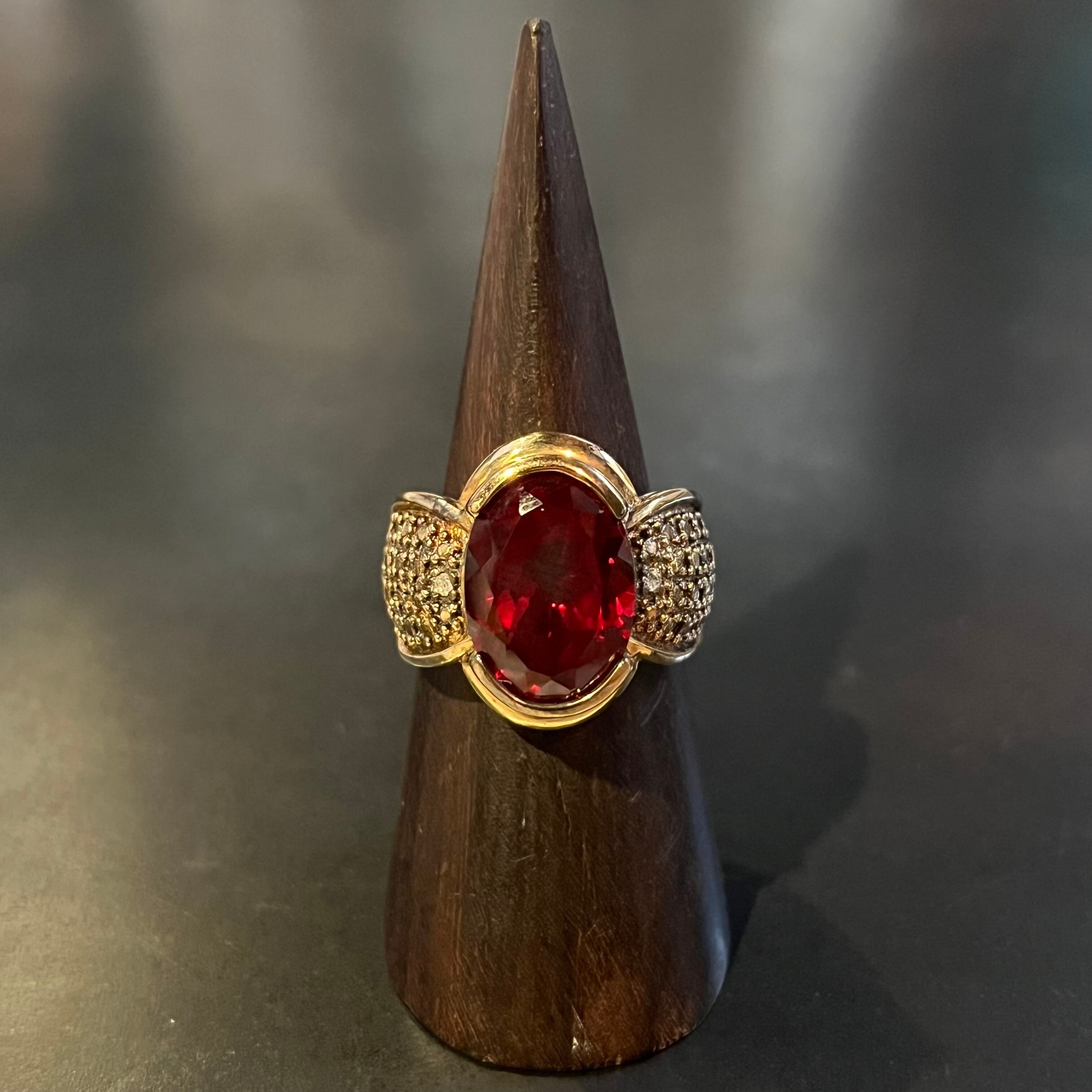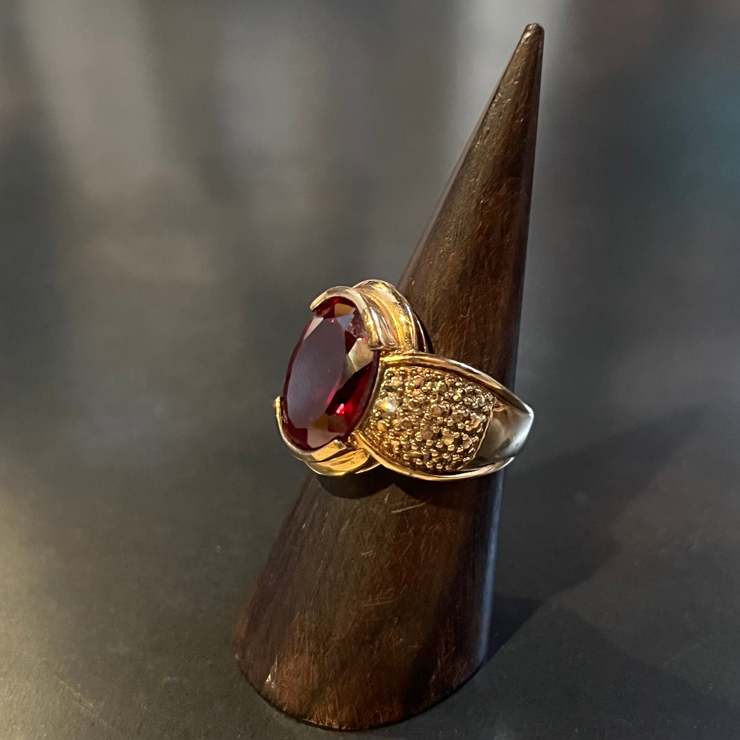 海外で買い付けたレッドストーンモチーフグリッターデザインのシルバーリングです。