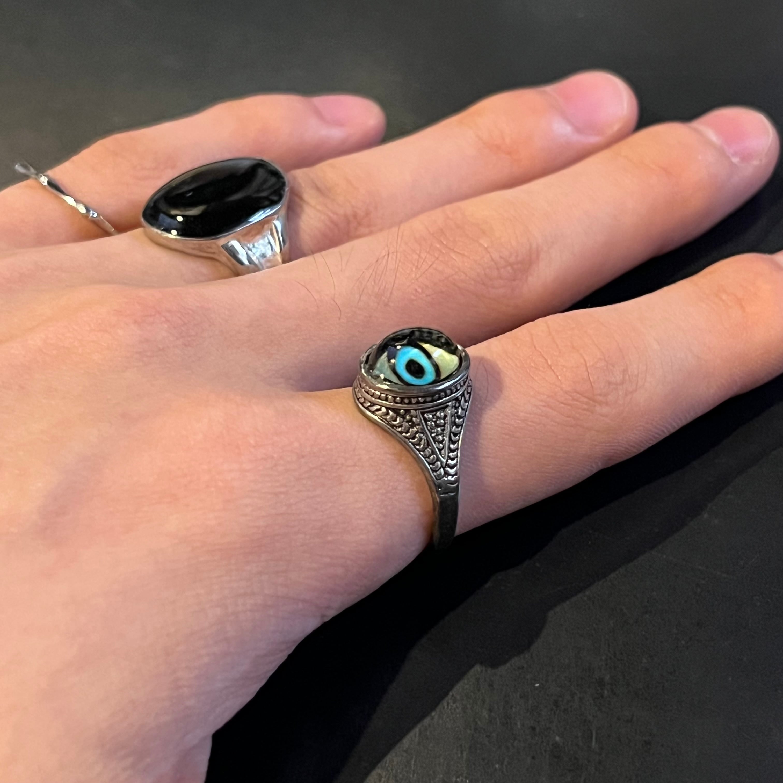 海外で買い付けたアイモチーフトライバルデザインのシルバーリングです。