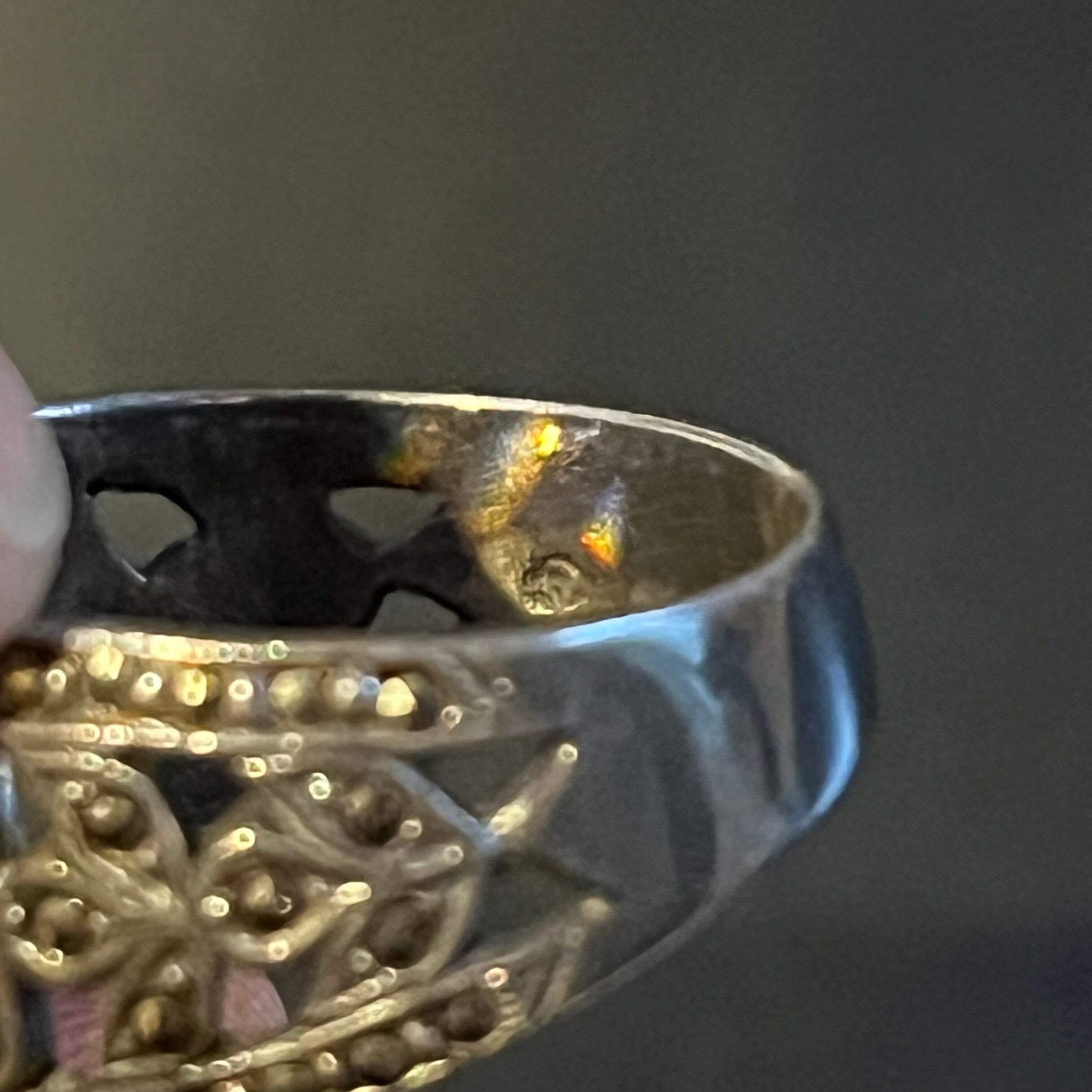 海外で買い付けたピンクストーン・グリッターデザインのシルバーリングです。