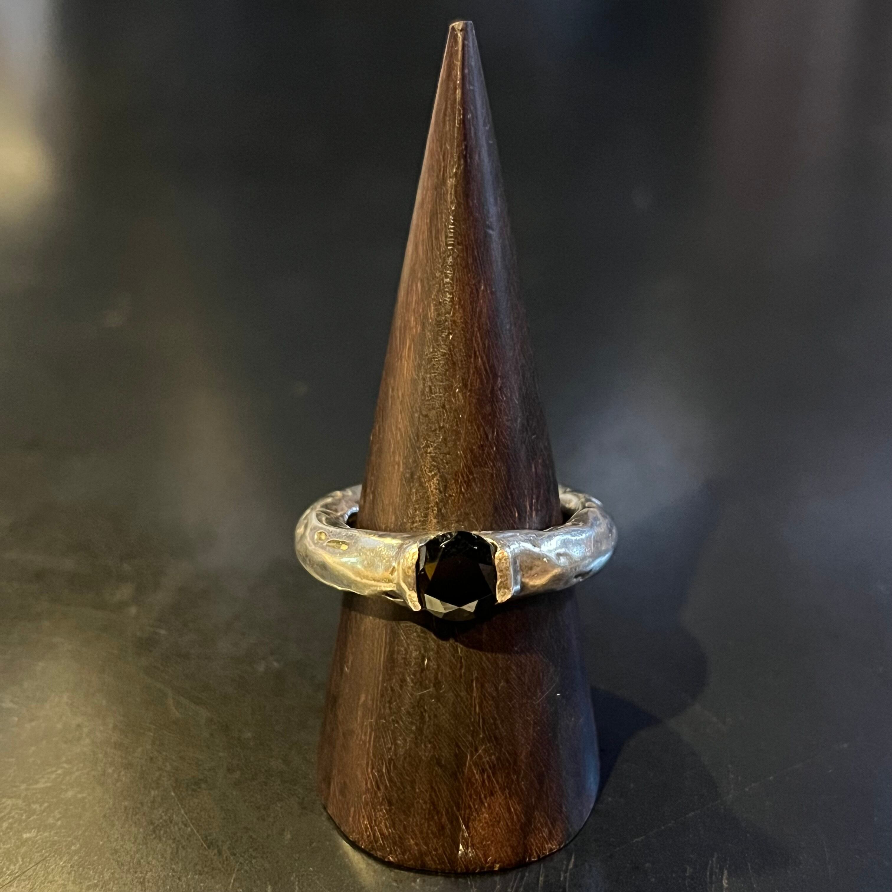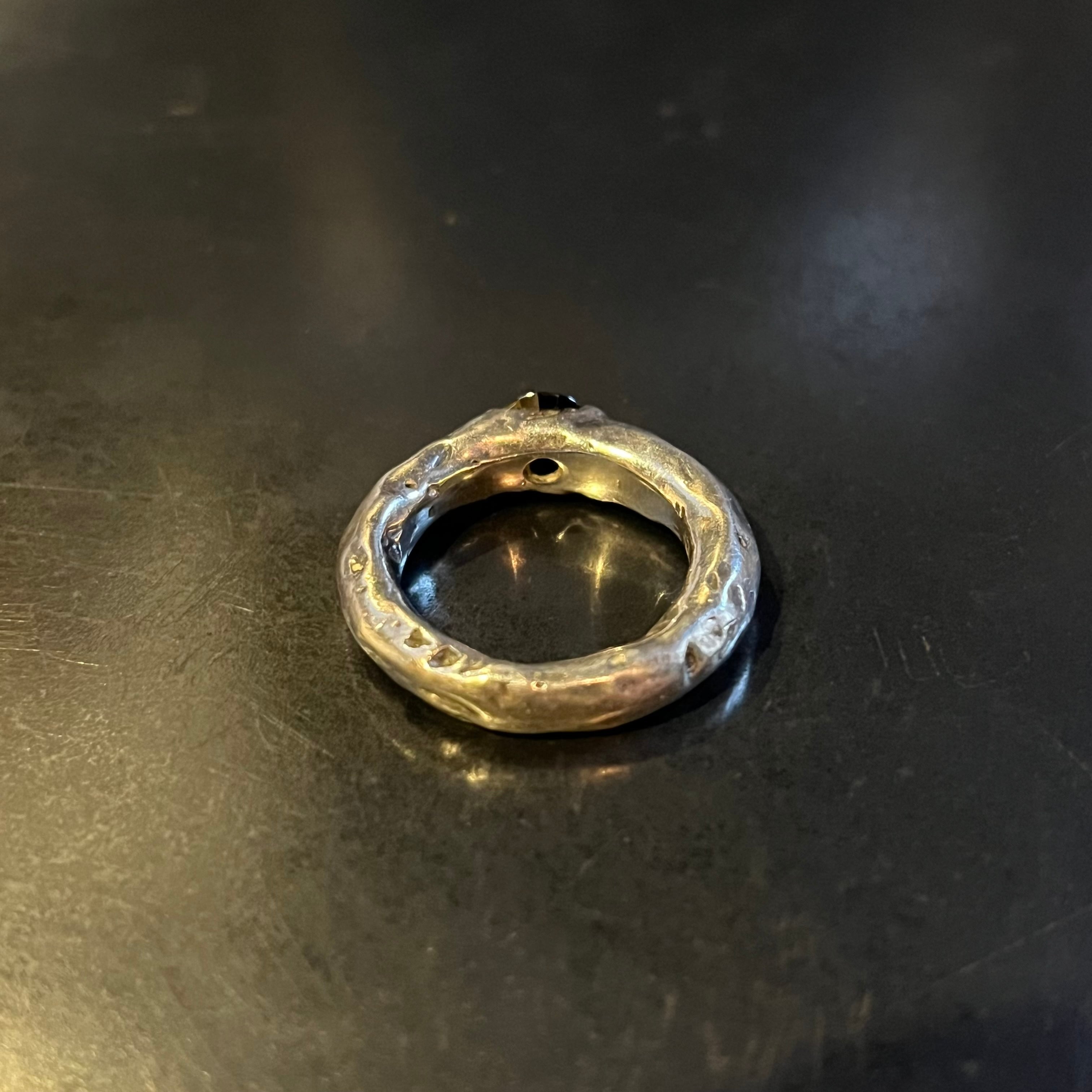 海外で買い付けたオニキスストーン・ラフテクスチャーデザインのシルバーリングです。