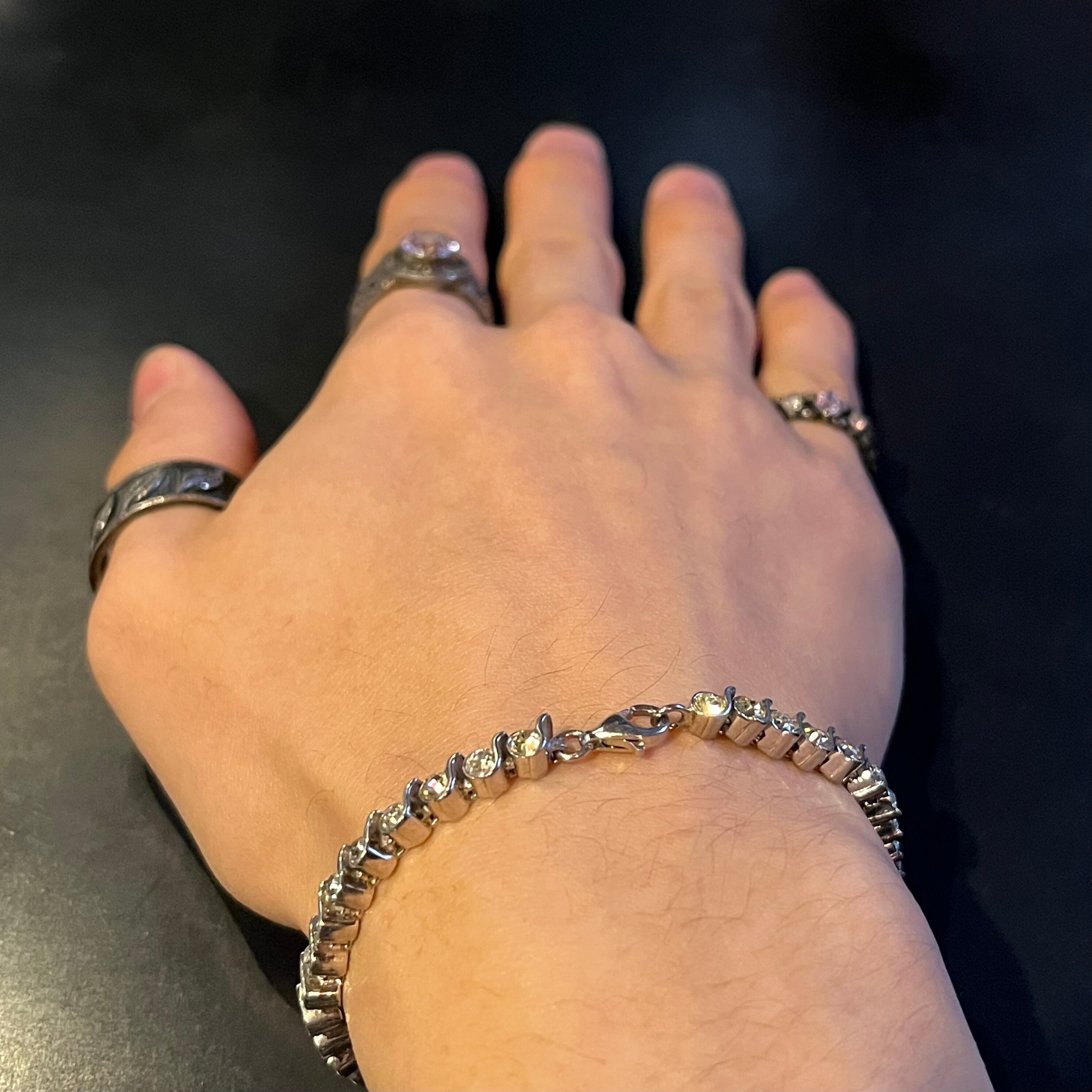 海外で買い付けたグリッターテニスデザインのシルバーブレスレットです。