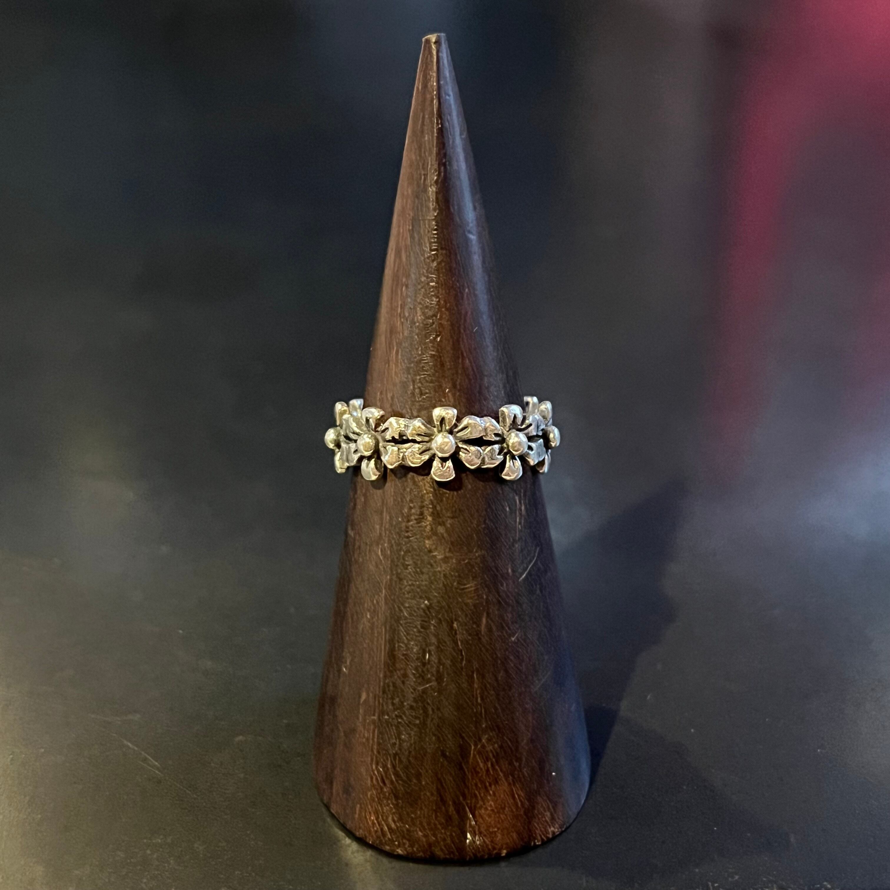 海外で買い付けたフラワーモチーフコネクテッドデザインのシルバーリングです。