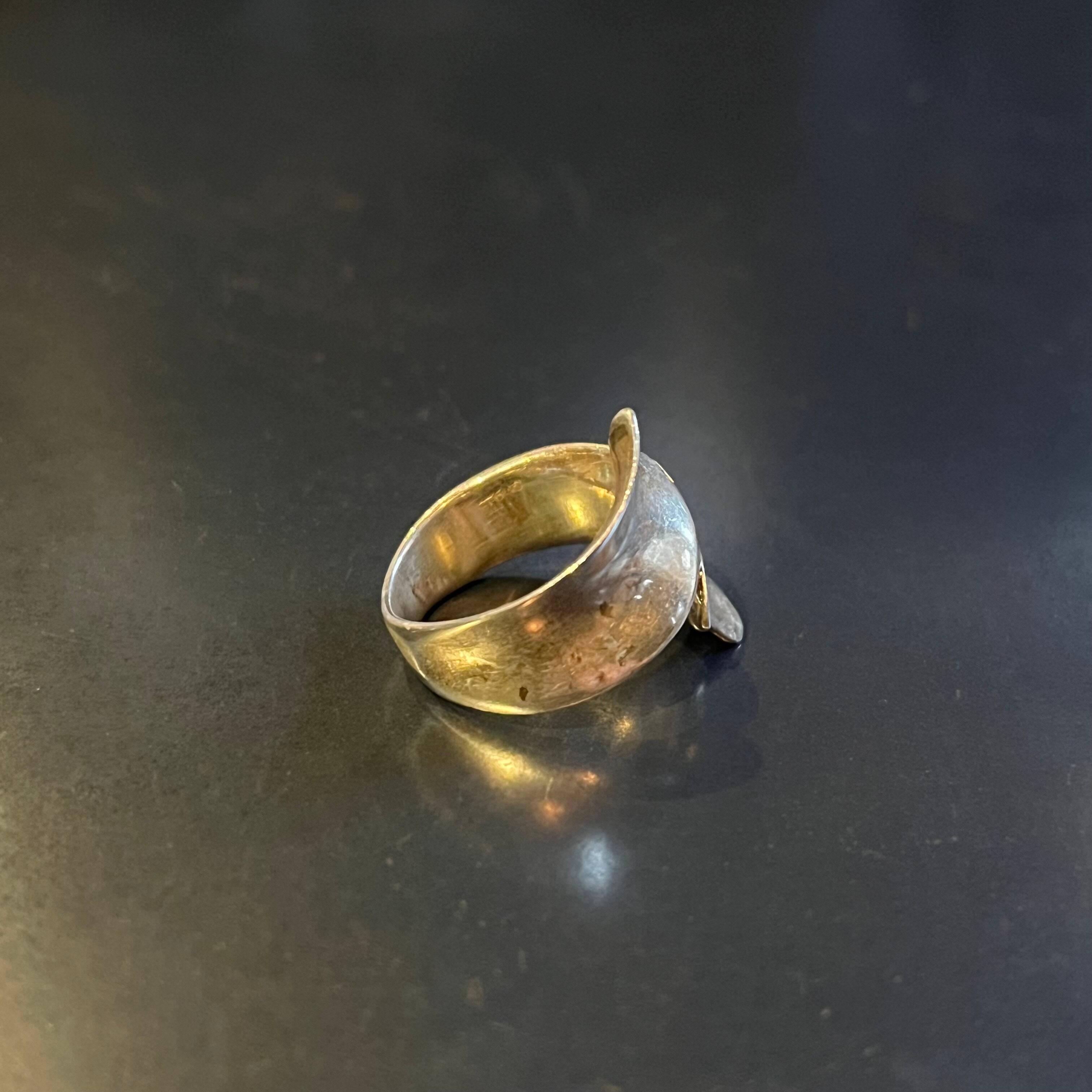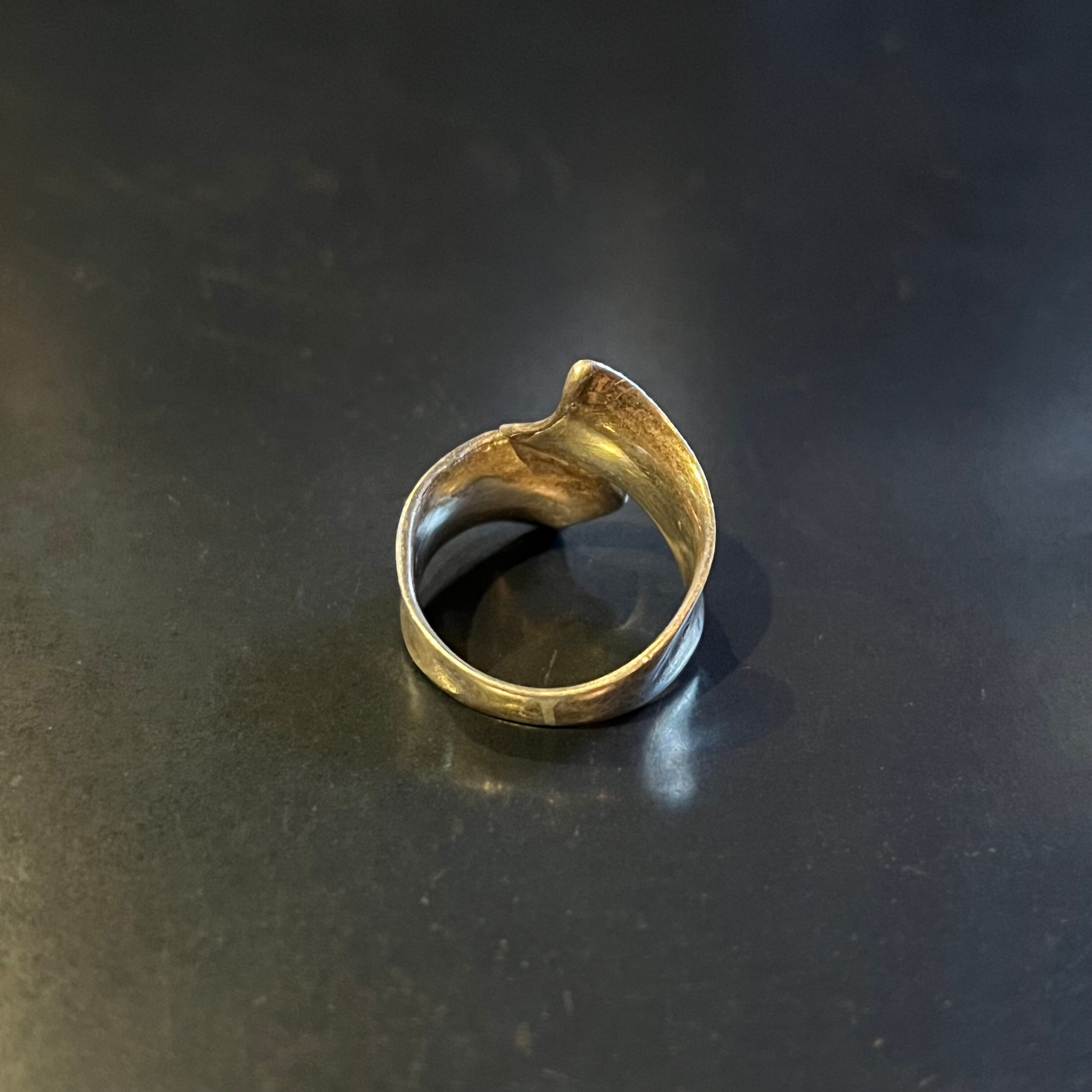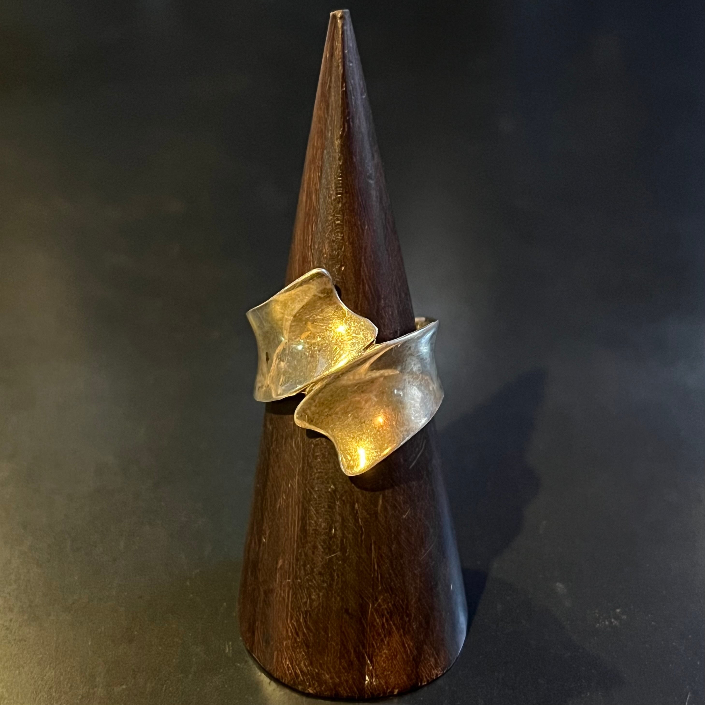海外で買い付けたデントフォークドデザインのシルバーリングです。
