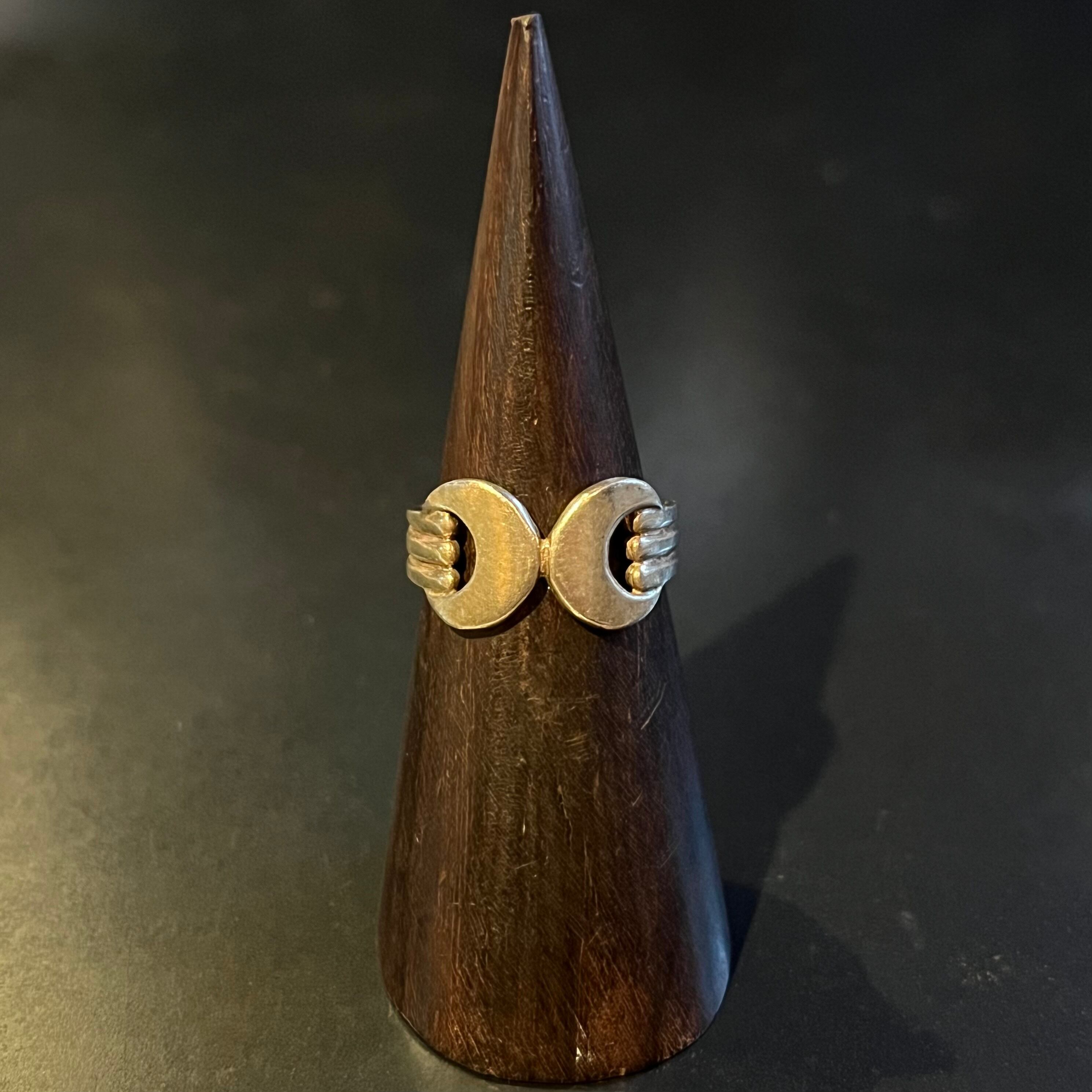 海外で買い付けたダブルムーンデザインのシルバーリングです。