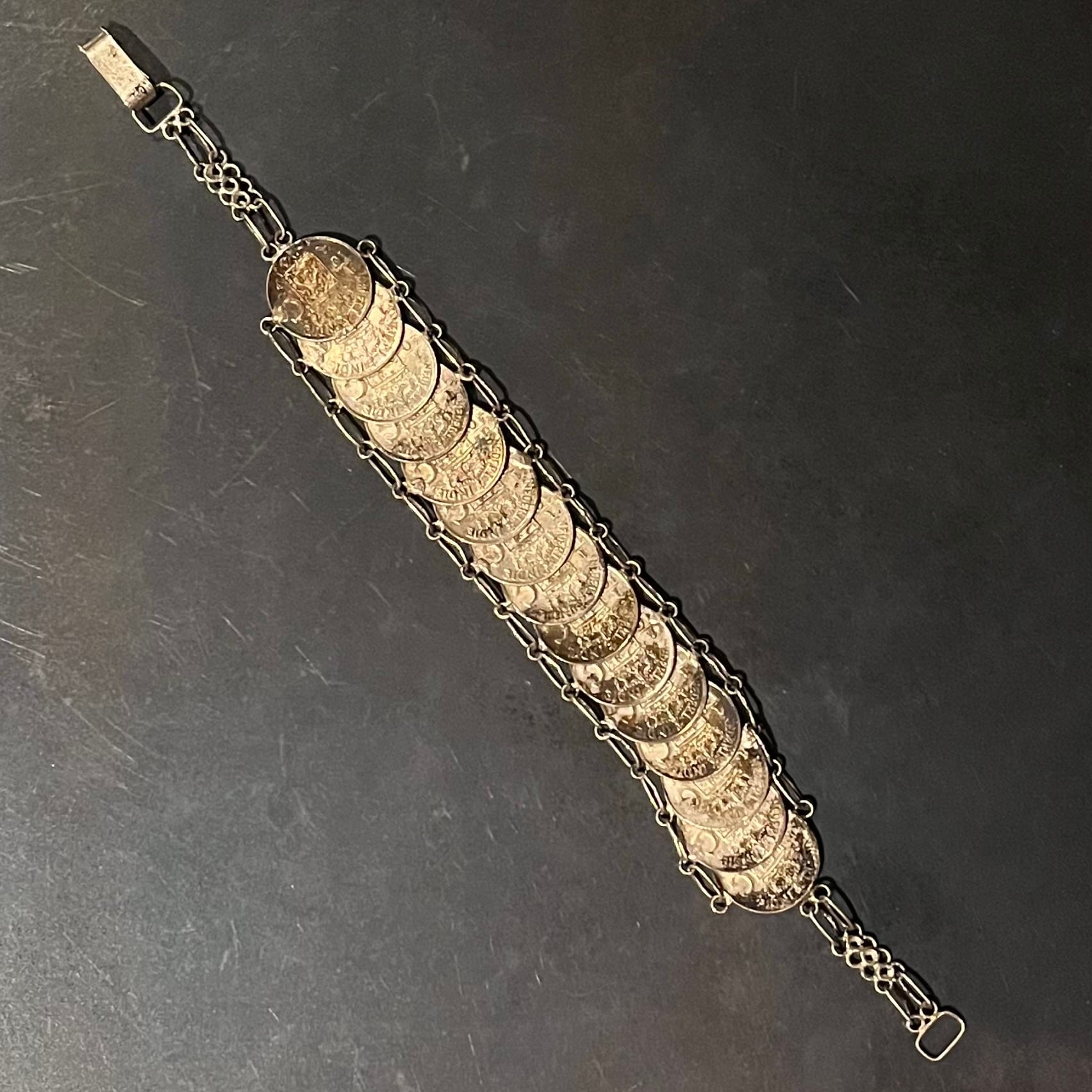 海外で買い付けたネーデルインディー・コインデザインのシルバーブレスレットです。