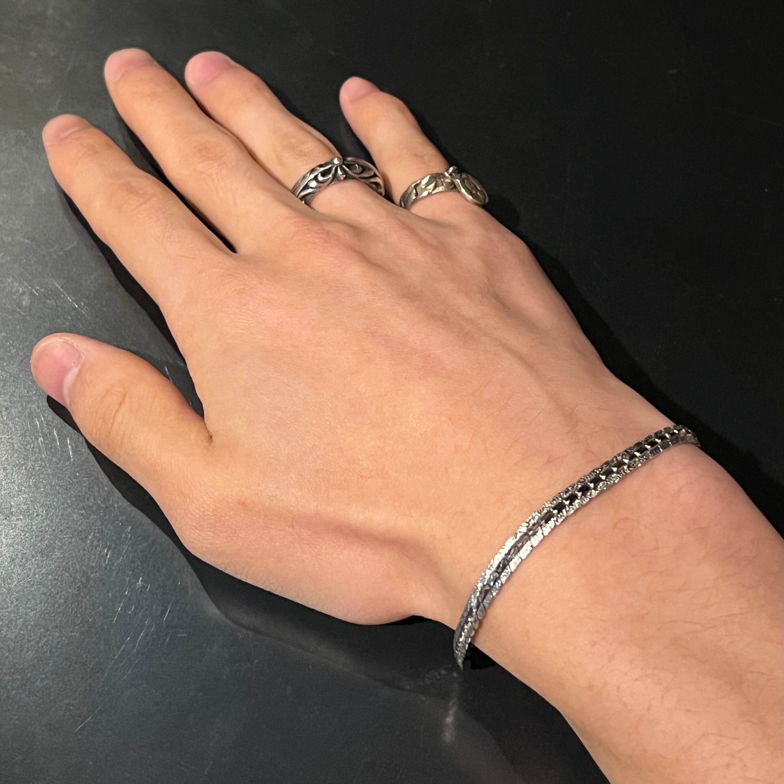 海外で買い付けたフラットチェーンデザインのシルバーブレスレットです。