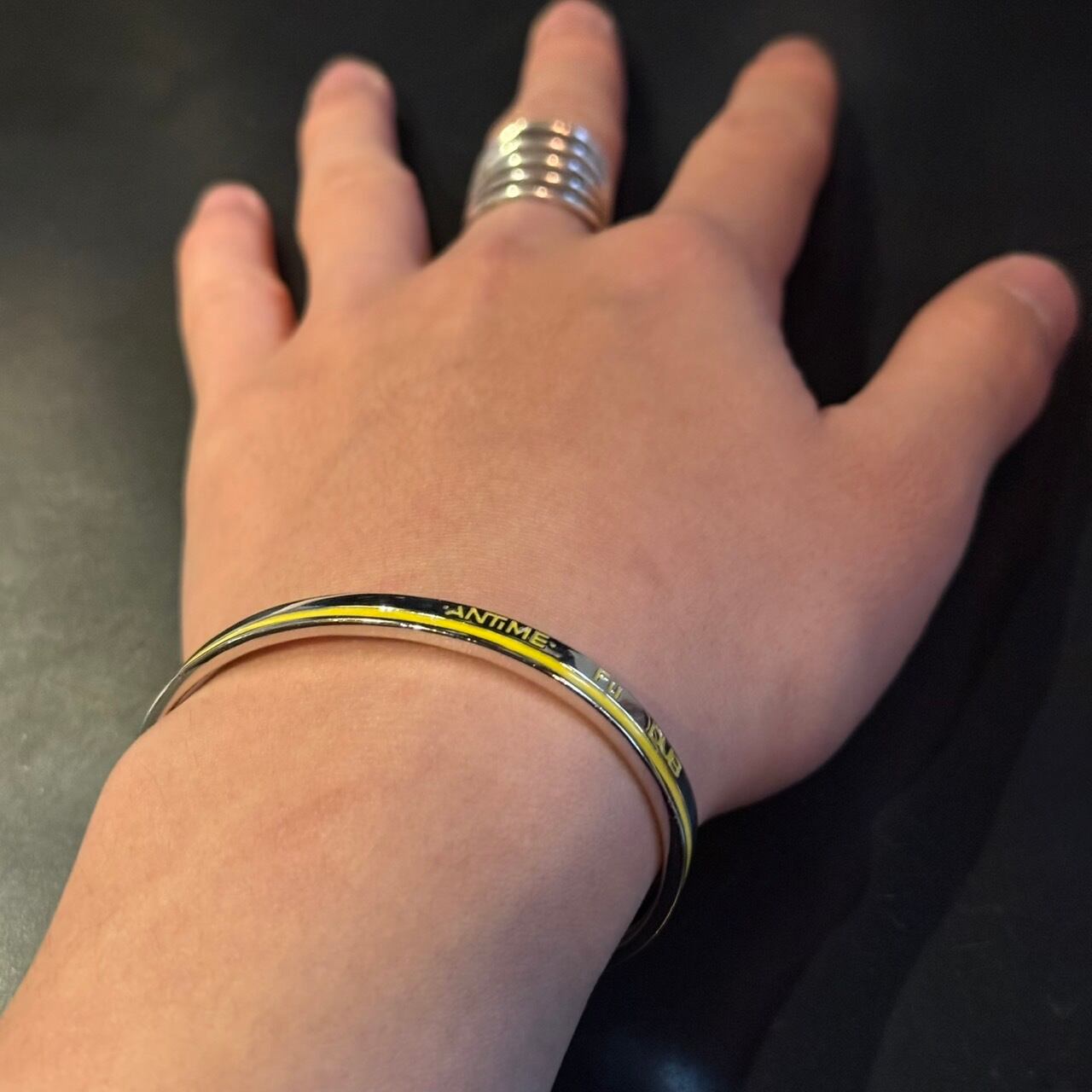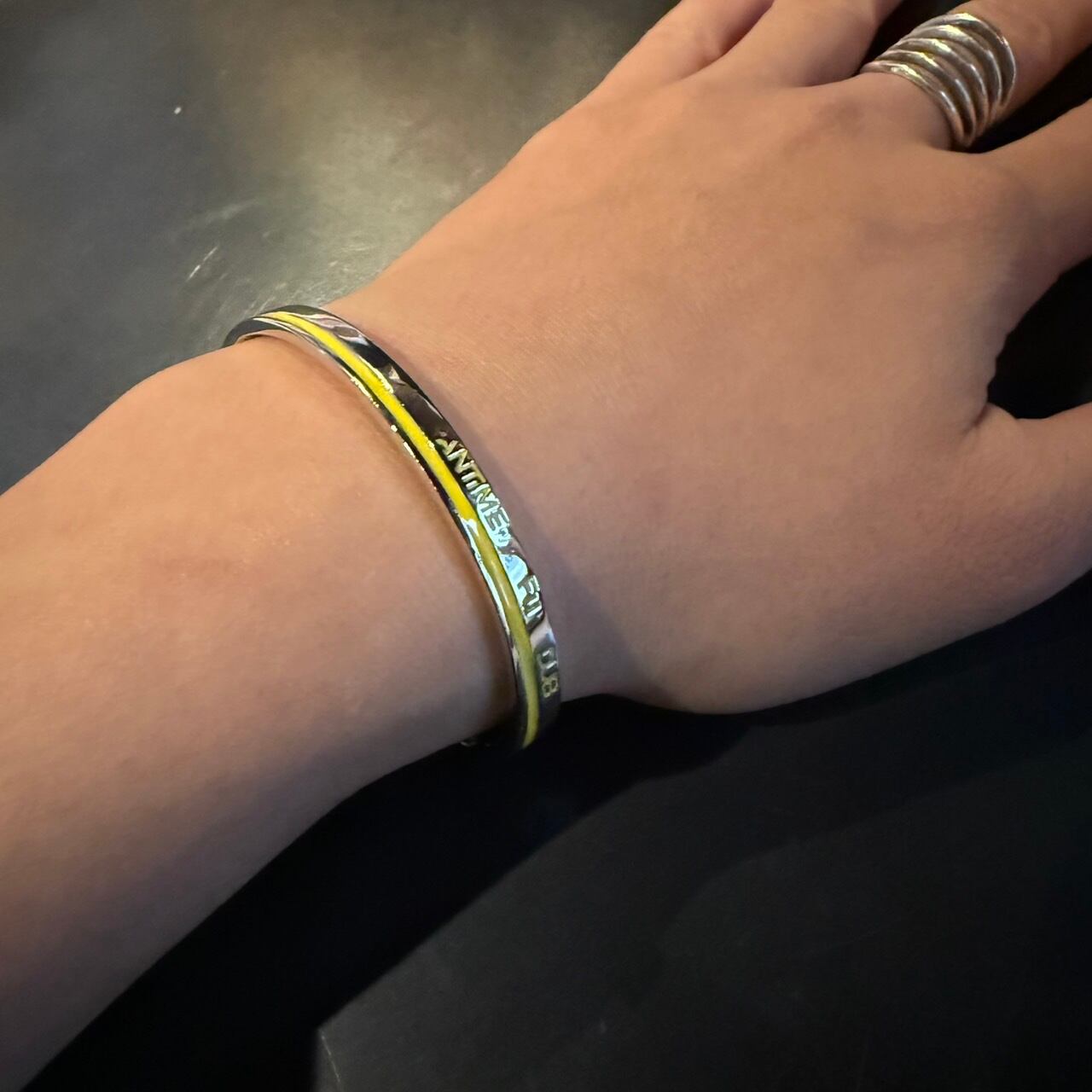 海外で買い付けたイエローカラーラインデザインのシルバーバングルです。