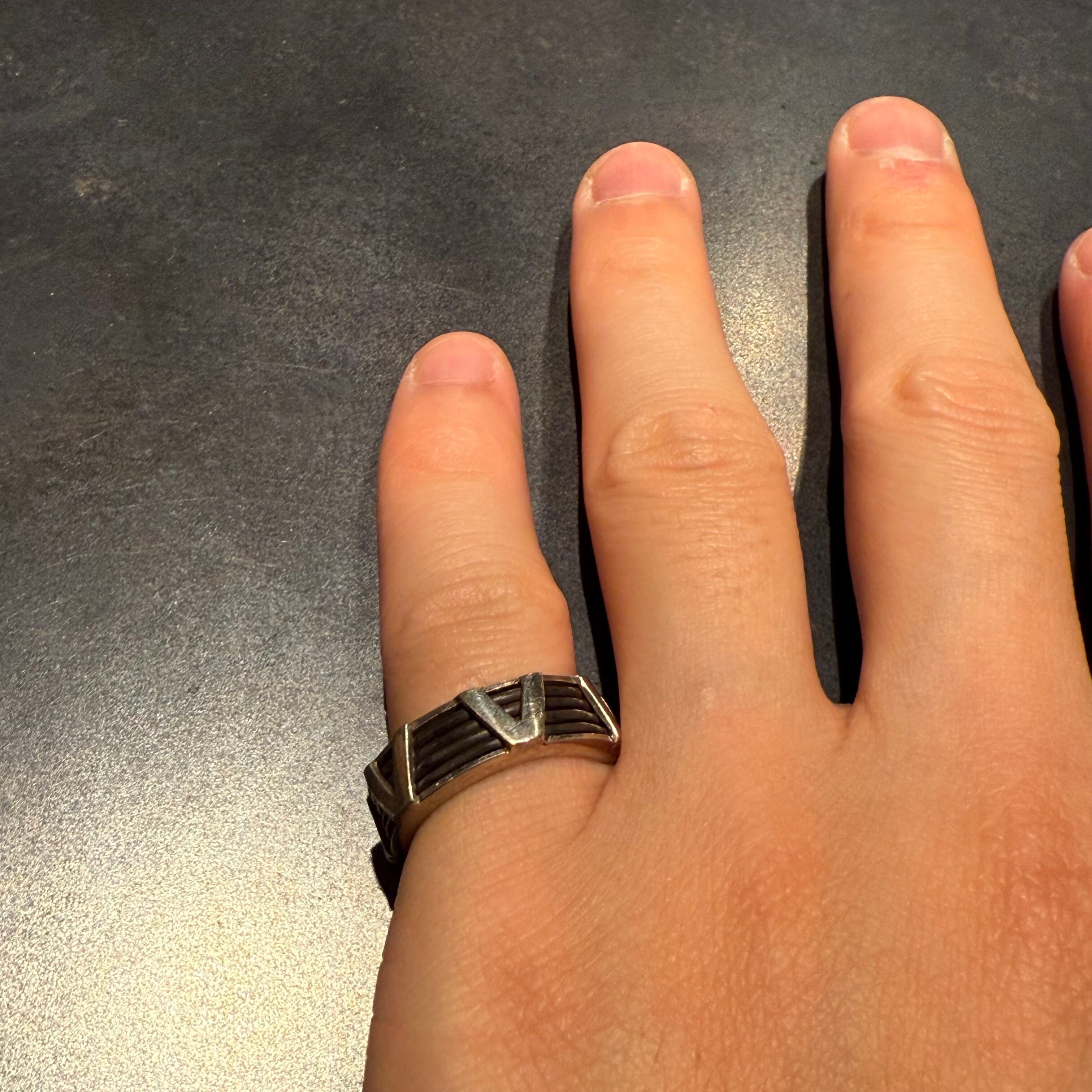 海外で買い付けたボールドVモチーフのシルバーリングです。