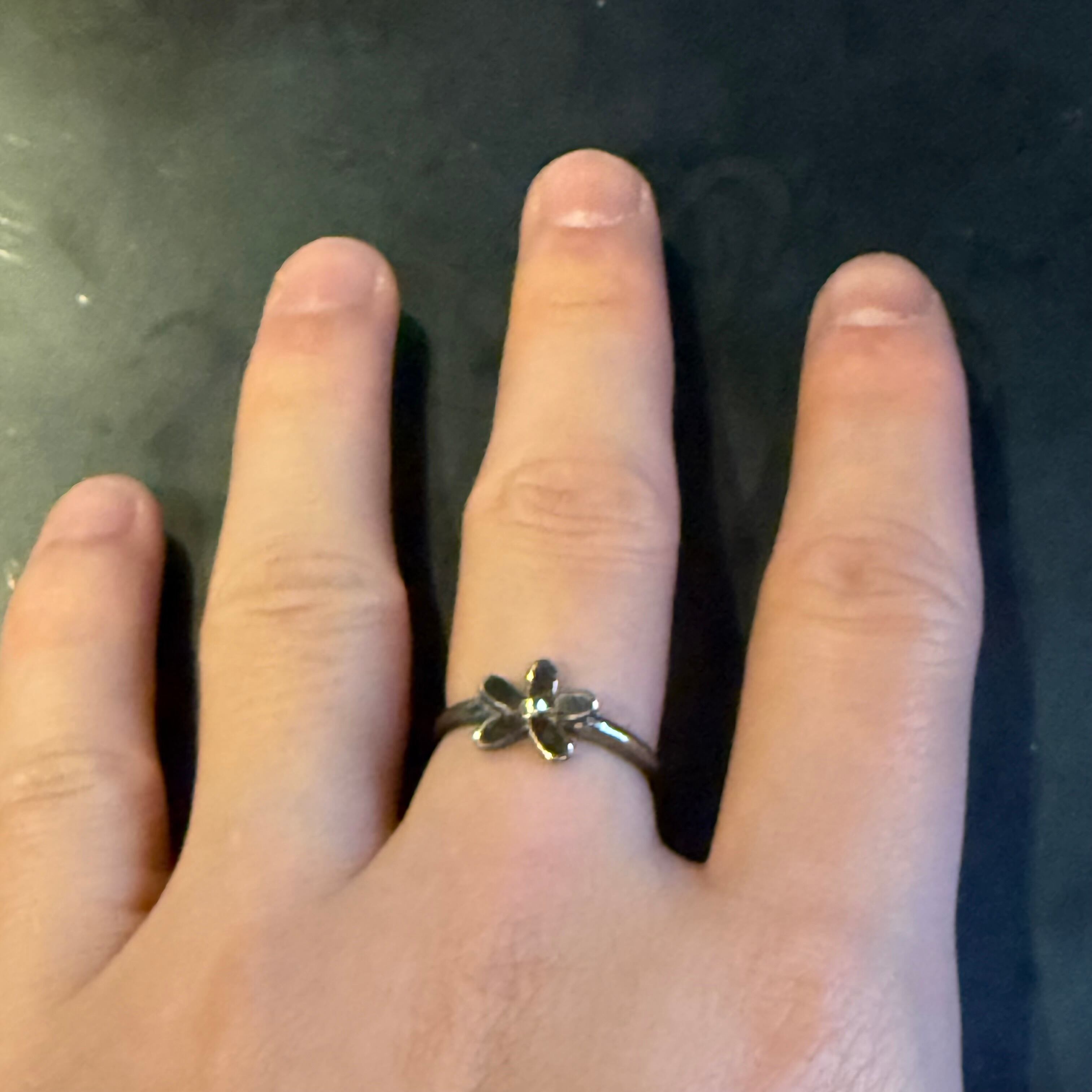 海外で買い付けたフラワーモチーフデザインのシルバーリングです。