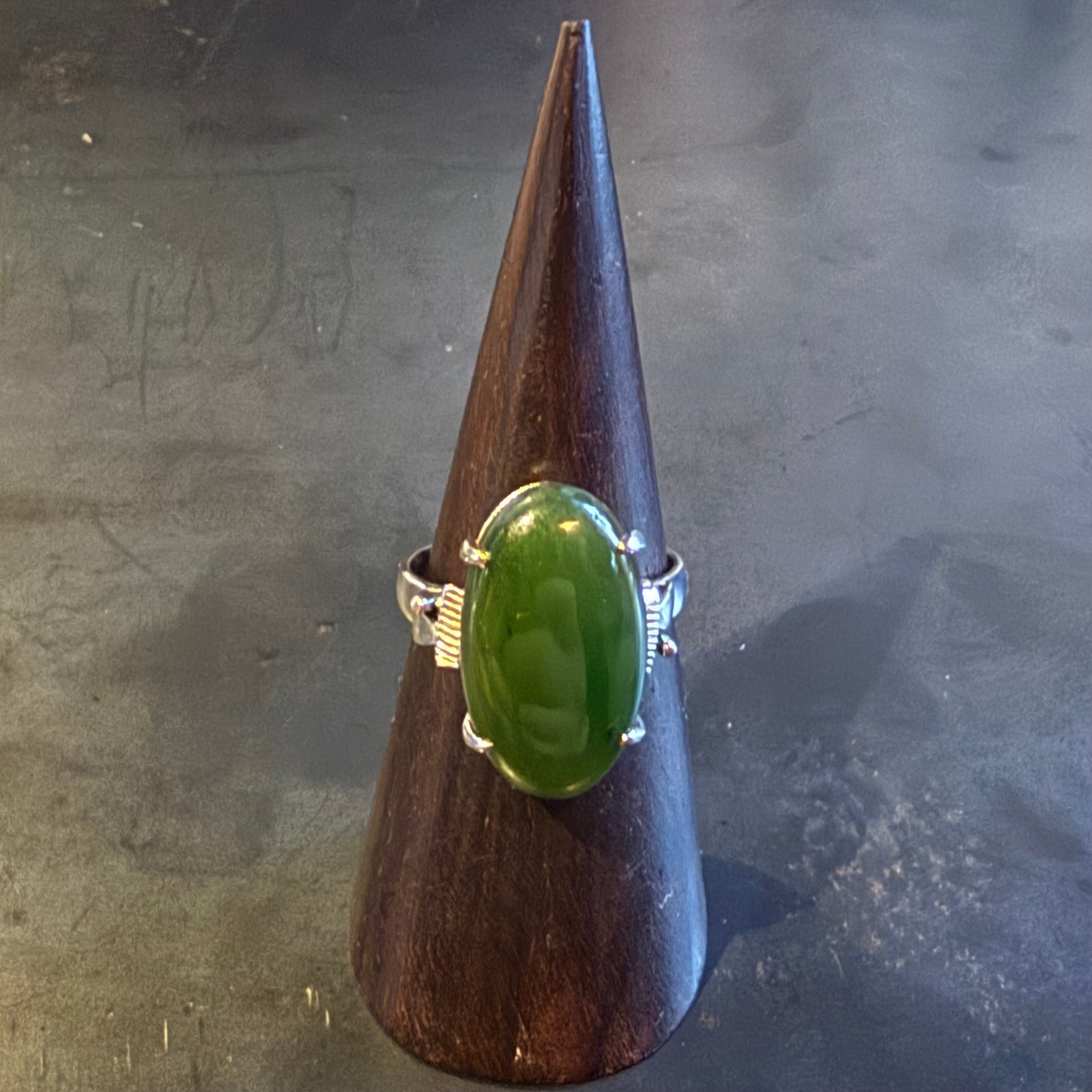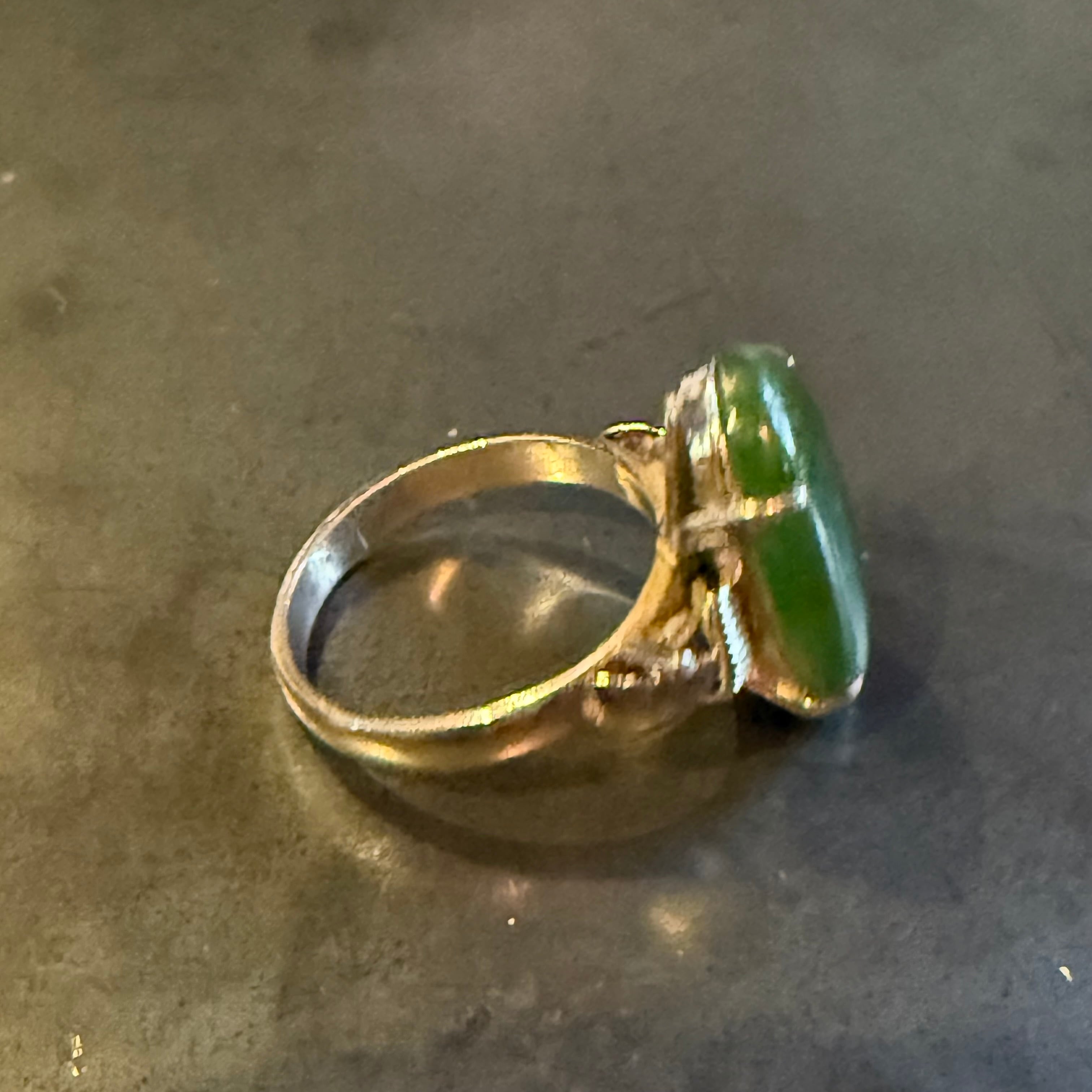 海外で買い付けたグリーンストーンオーバルデザインのシルバーリングです。