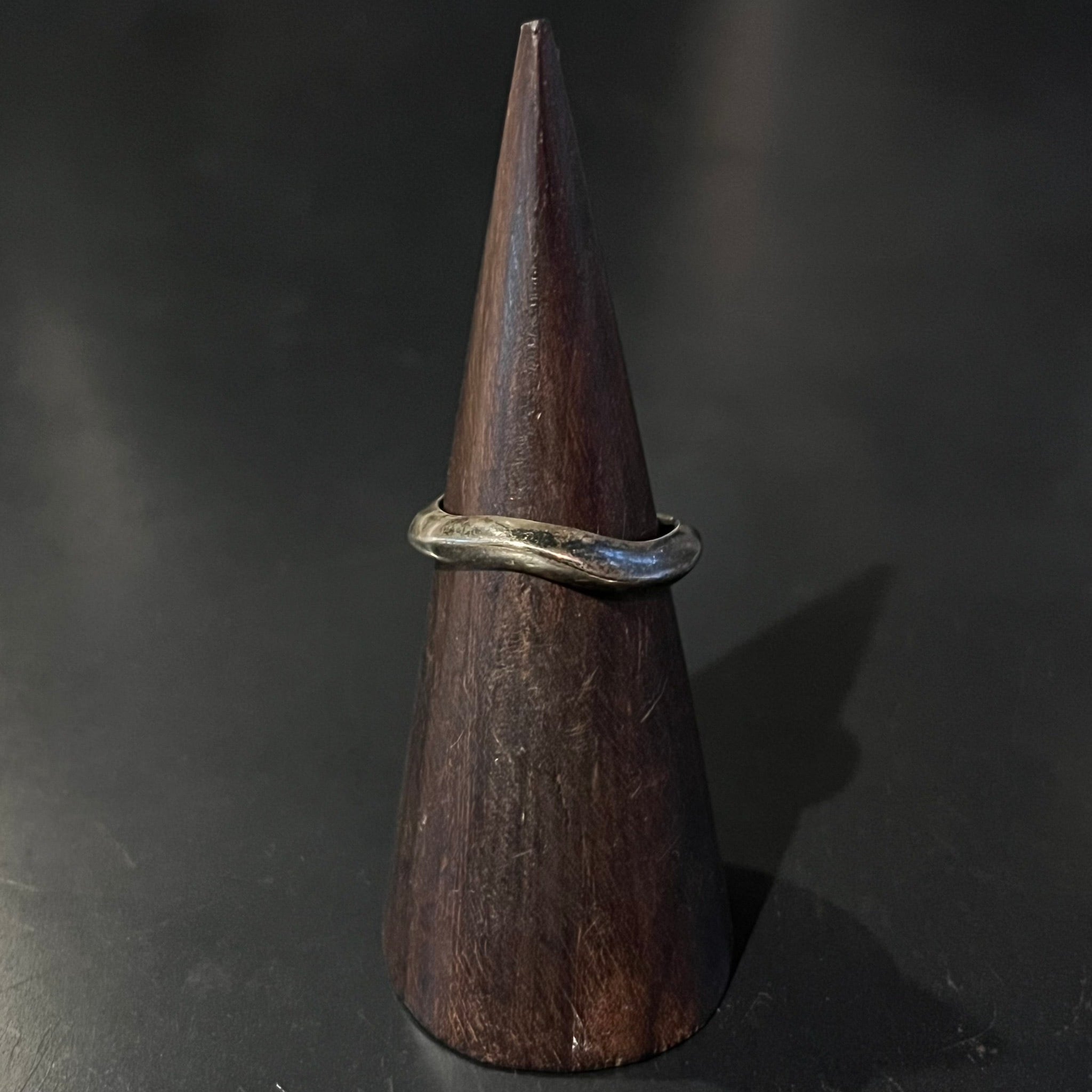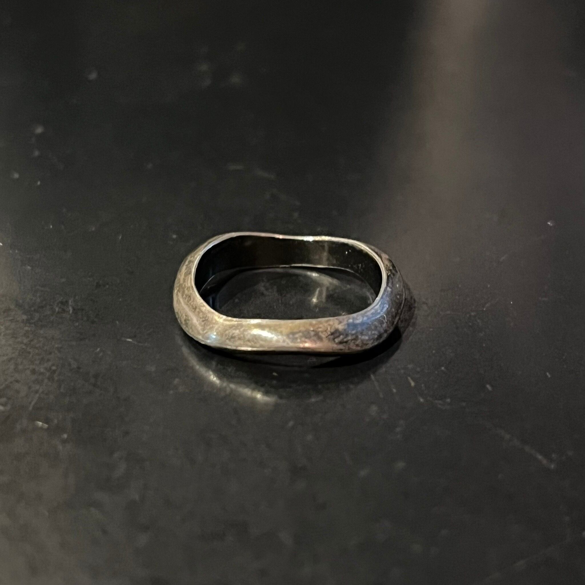 海外で買い付けたアンイーブンネス・フラットデザインのシルバーリングです。