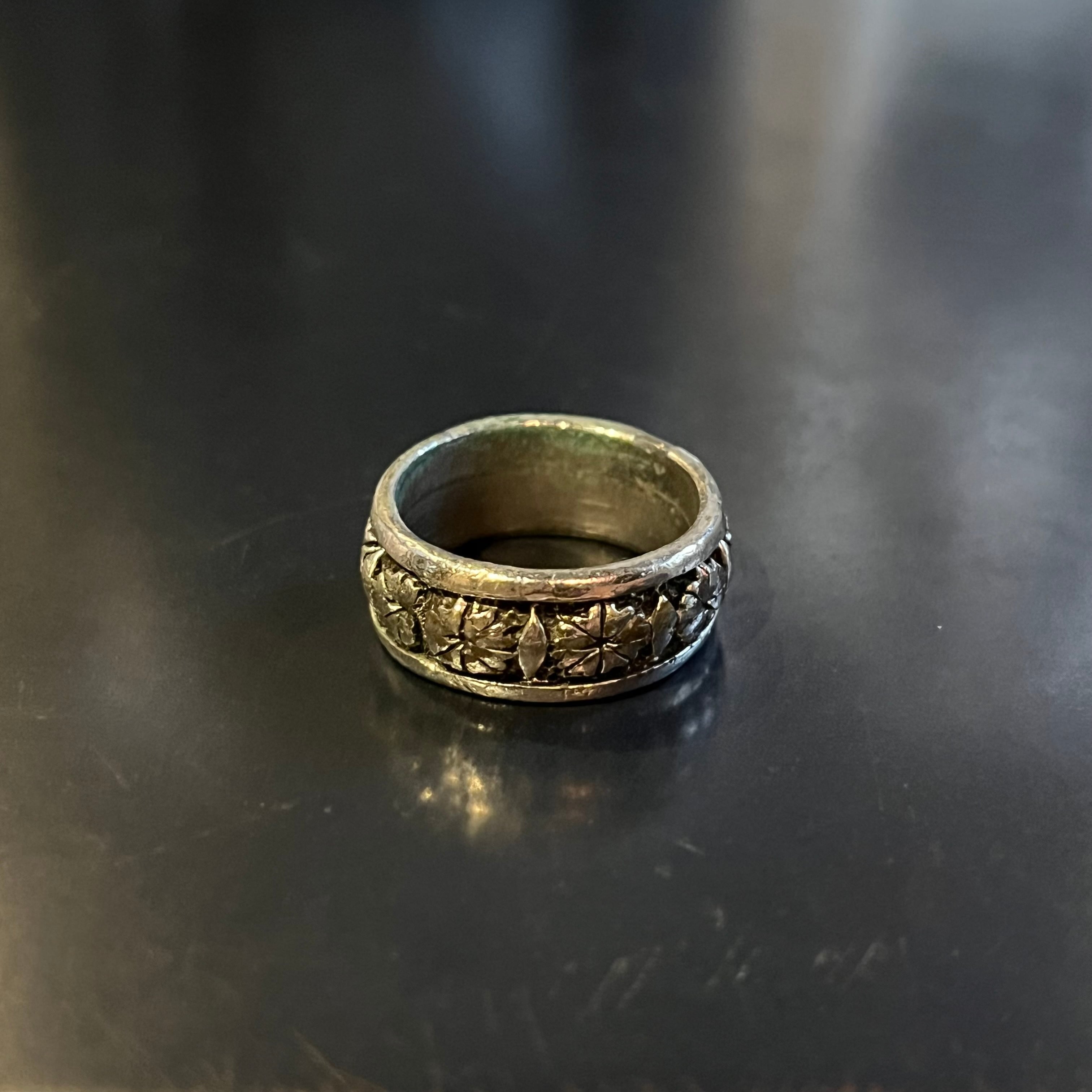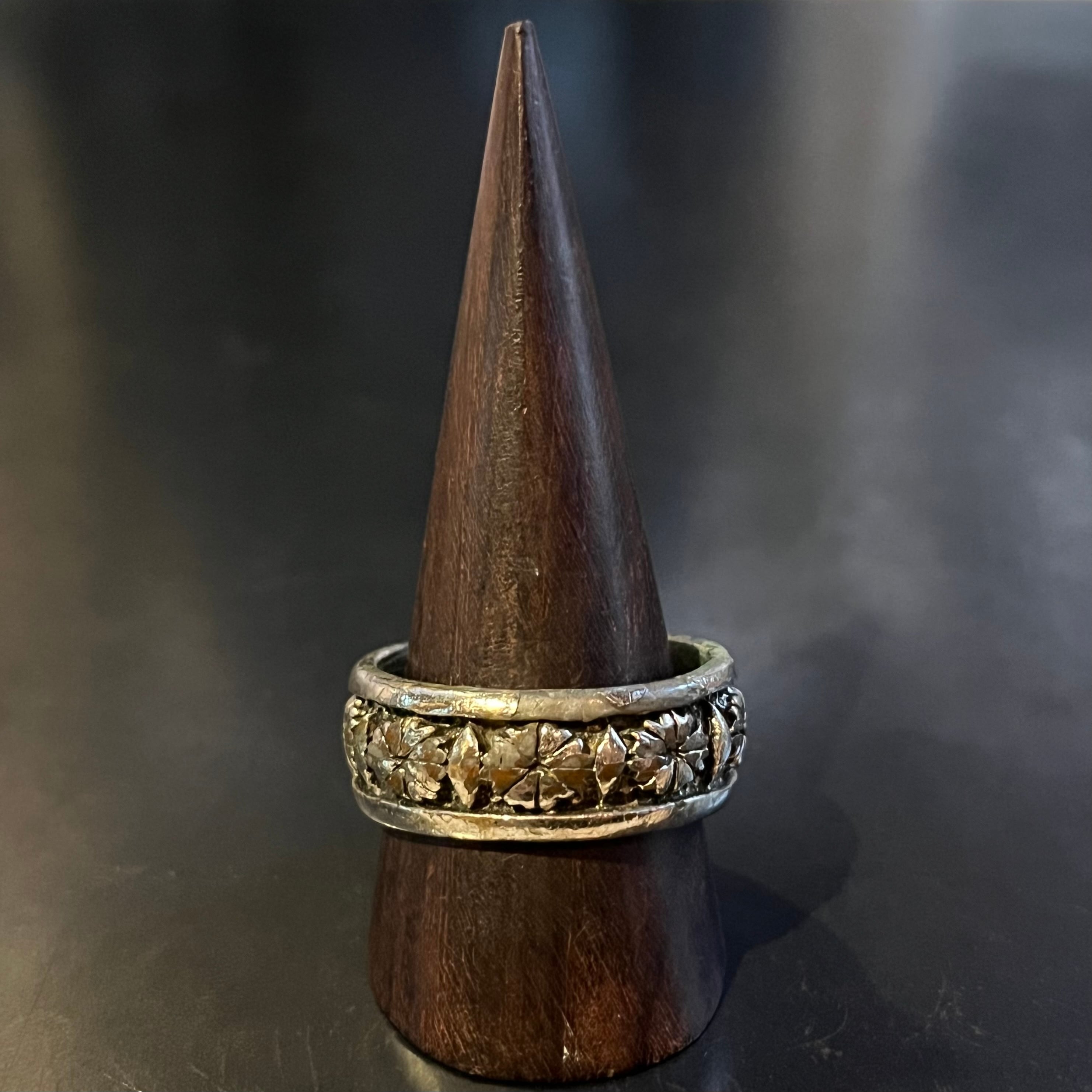 海外で買い付けたワイドフラワーモチーフデザインのシルバーリングです。