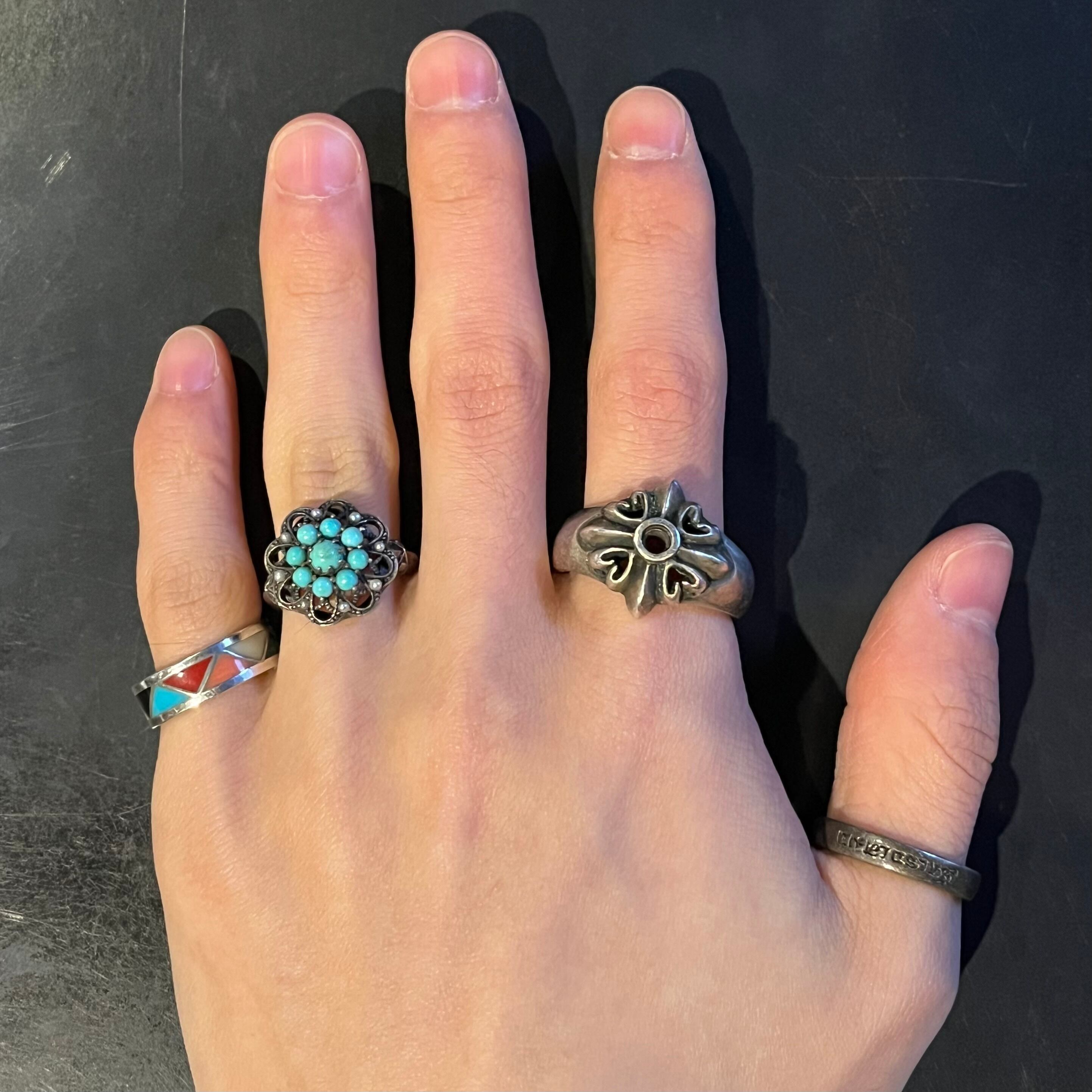 海外で買い付けたビッグ・ハートクロスデザインのシルバーリングです。