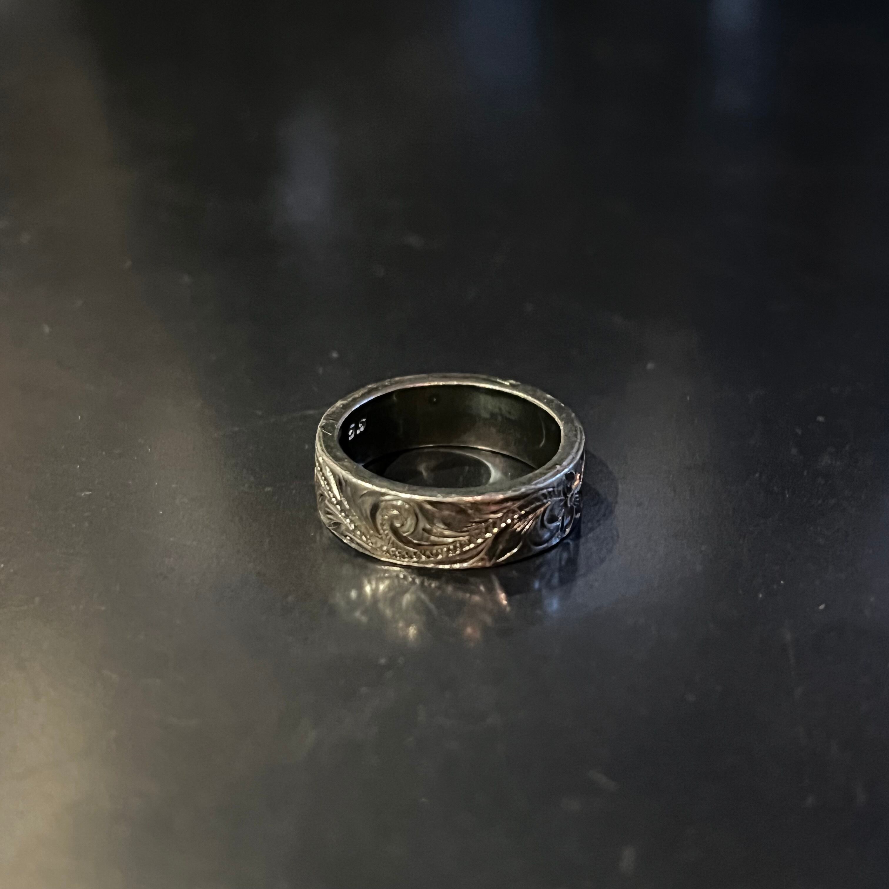 海外で買い付けたフラワーモチーフ・スワールデザインのシルバーリングです。