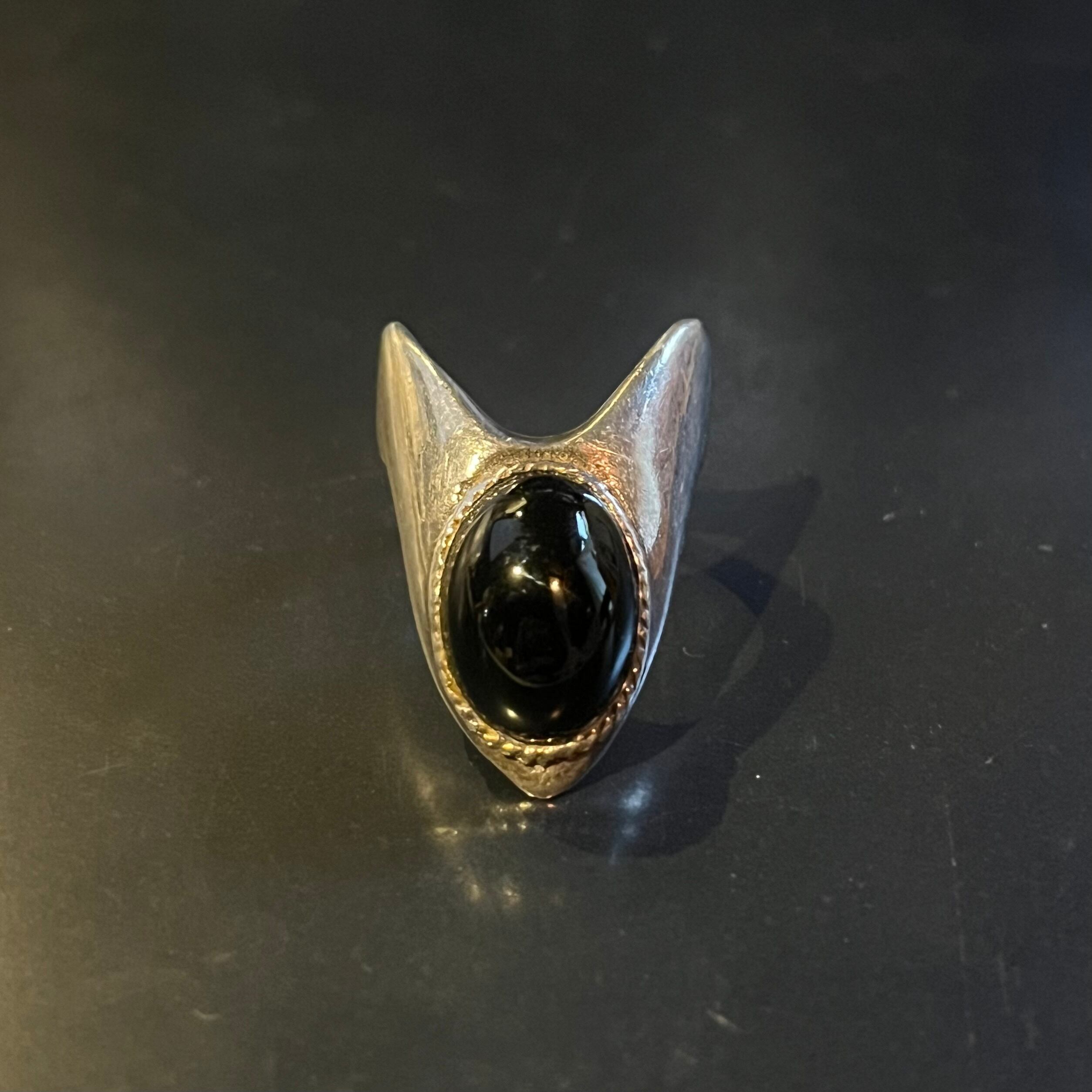 海外で買い付けたオニキスストーン・トライバルシェイプデザインのシルバーリングです。