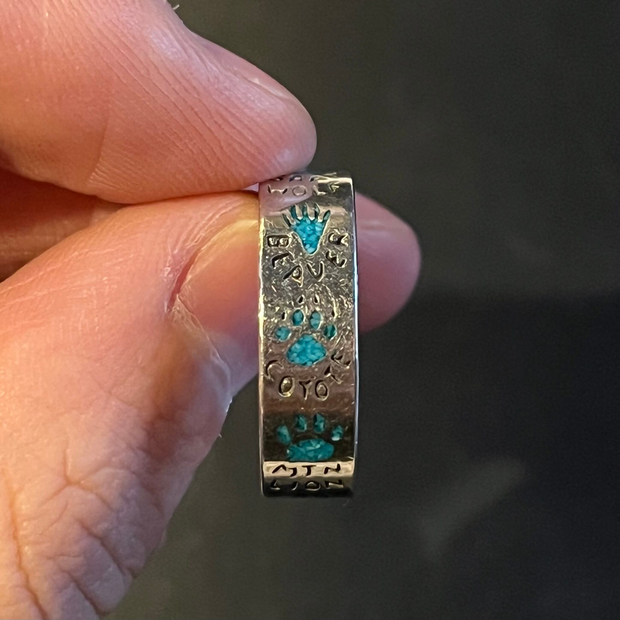 海外で買い付けたターコイズストーン・アニマルフットプリント(足跡)モチーフデザインのシルバーリングです。
