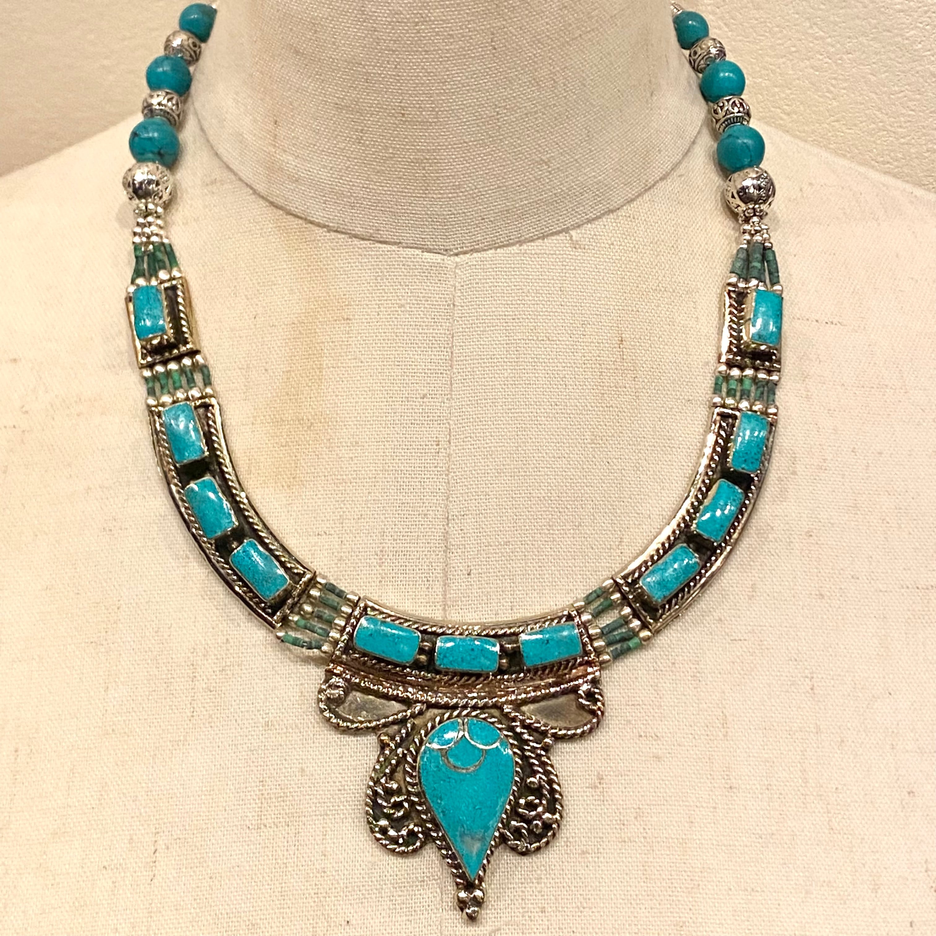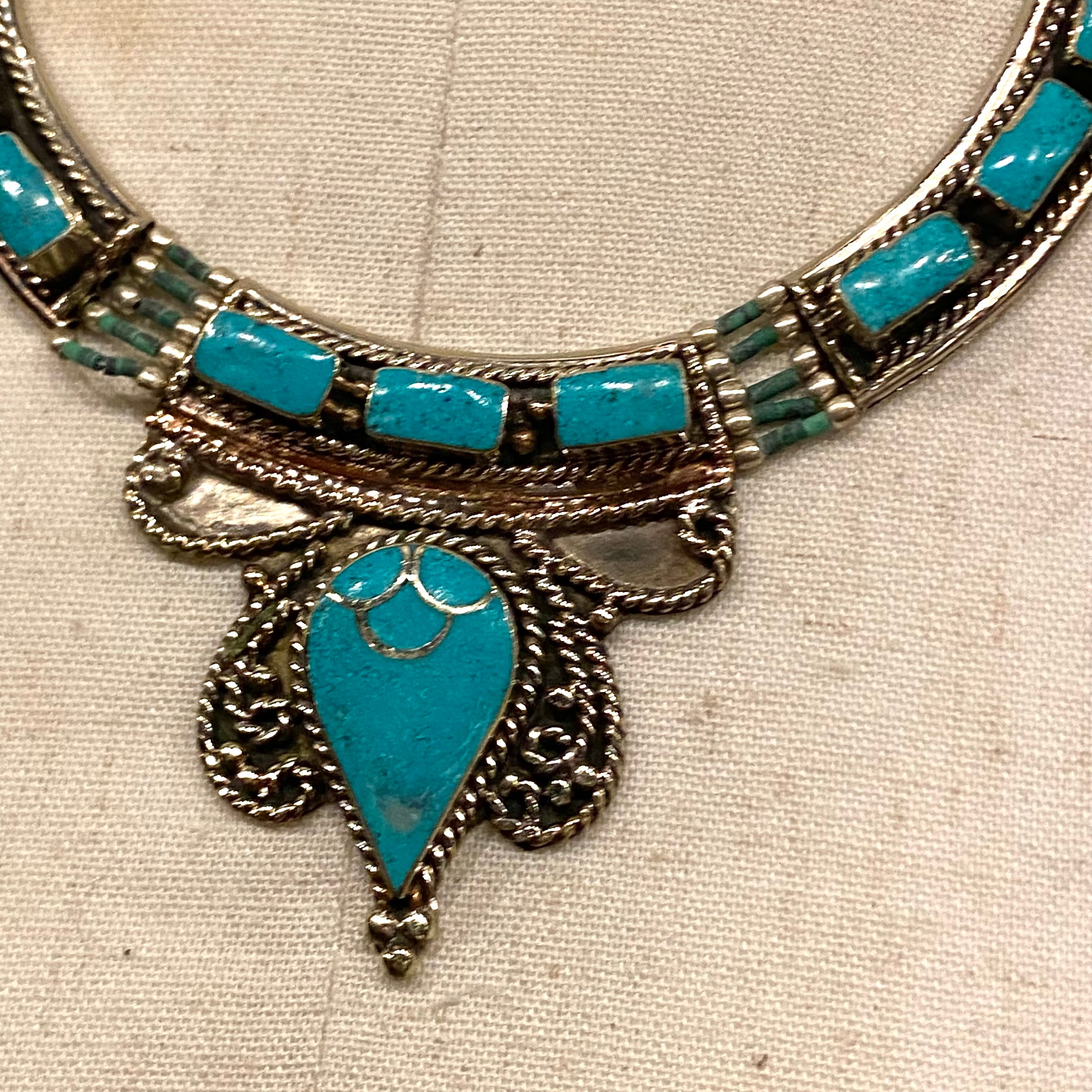 メキシコで買い付けたネイティブデザインターコイズネックレスです。