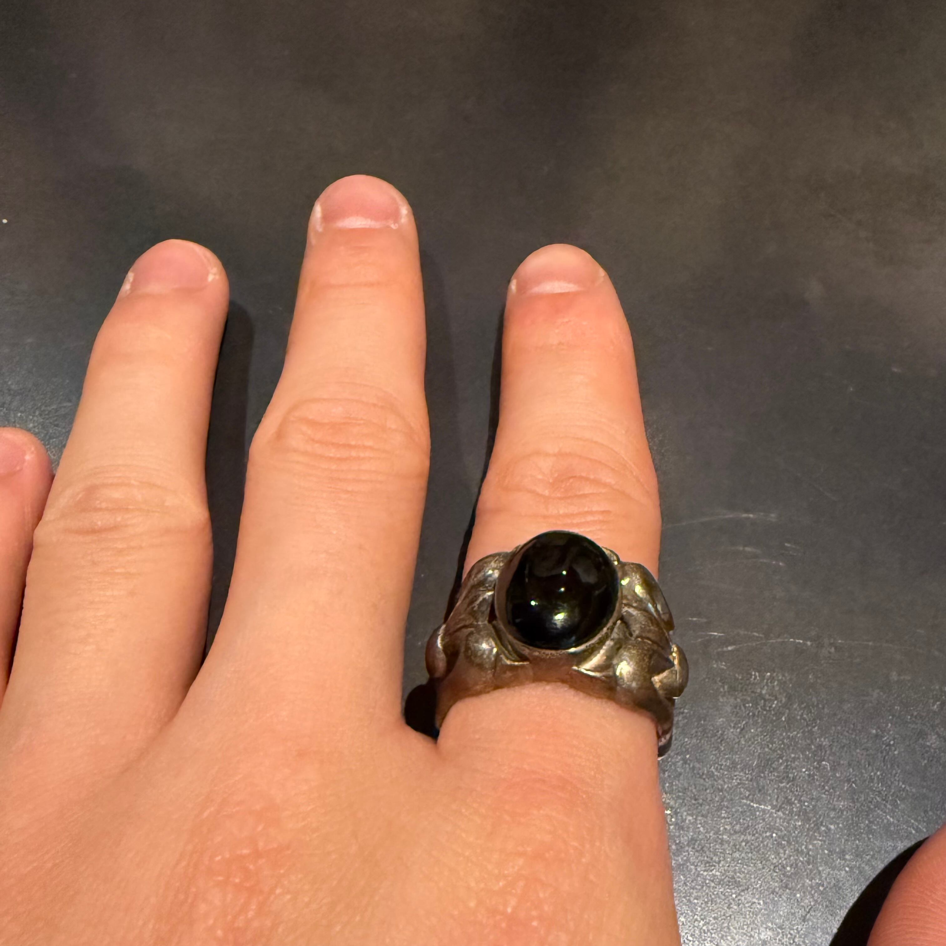 海外で買い付けたブラックストーン・グリッターデザインのシルバーリングです。