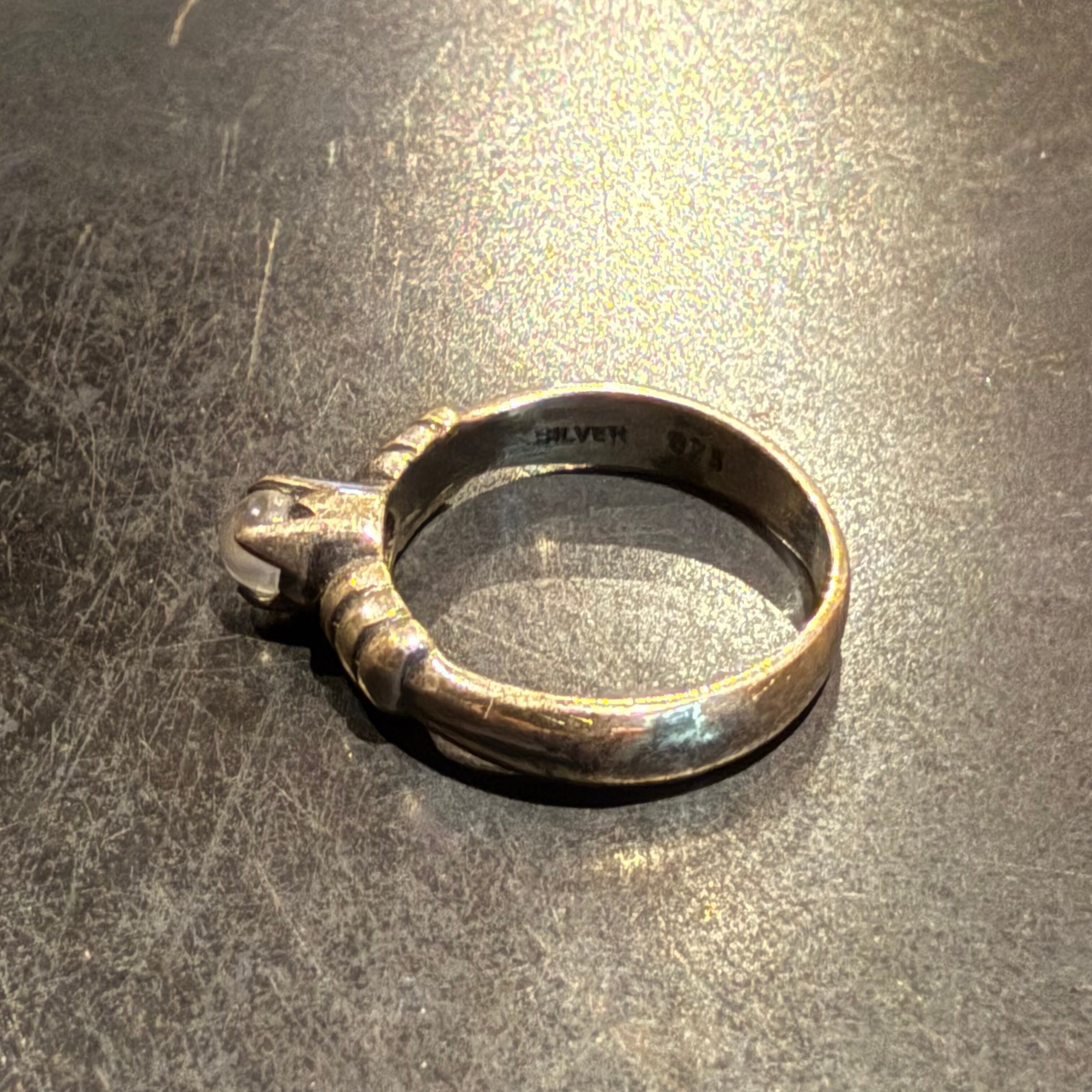 海外で買い付けたクリアストーンデザインのシルバーリングです。