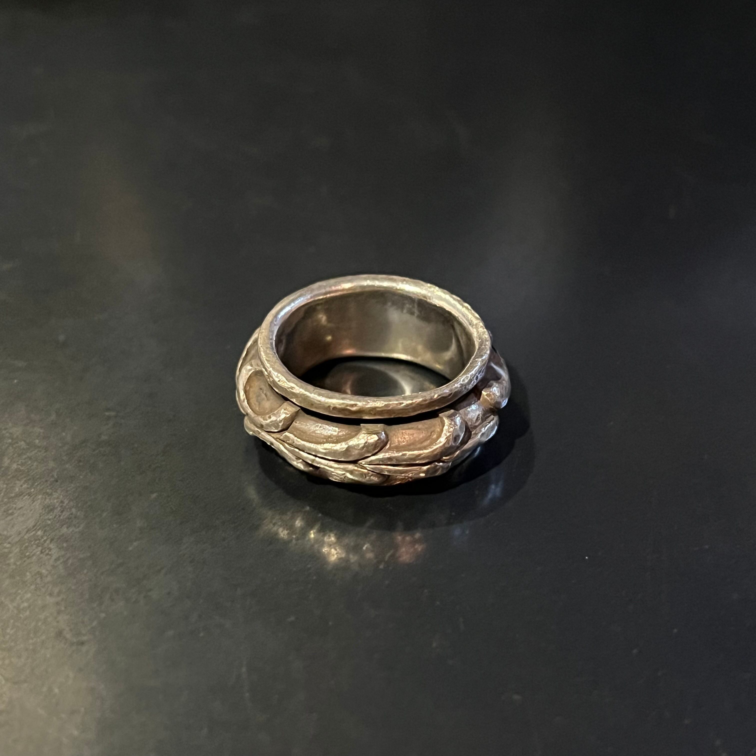 海外で買い付けたビッグネイティブウェービーモチーフデザインのシルバーリングです。