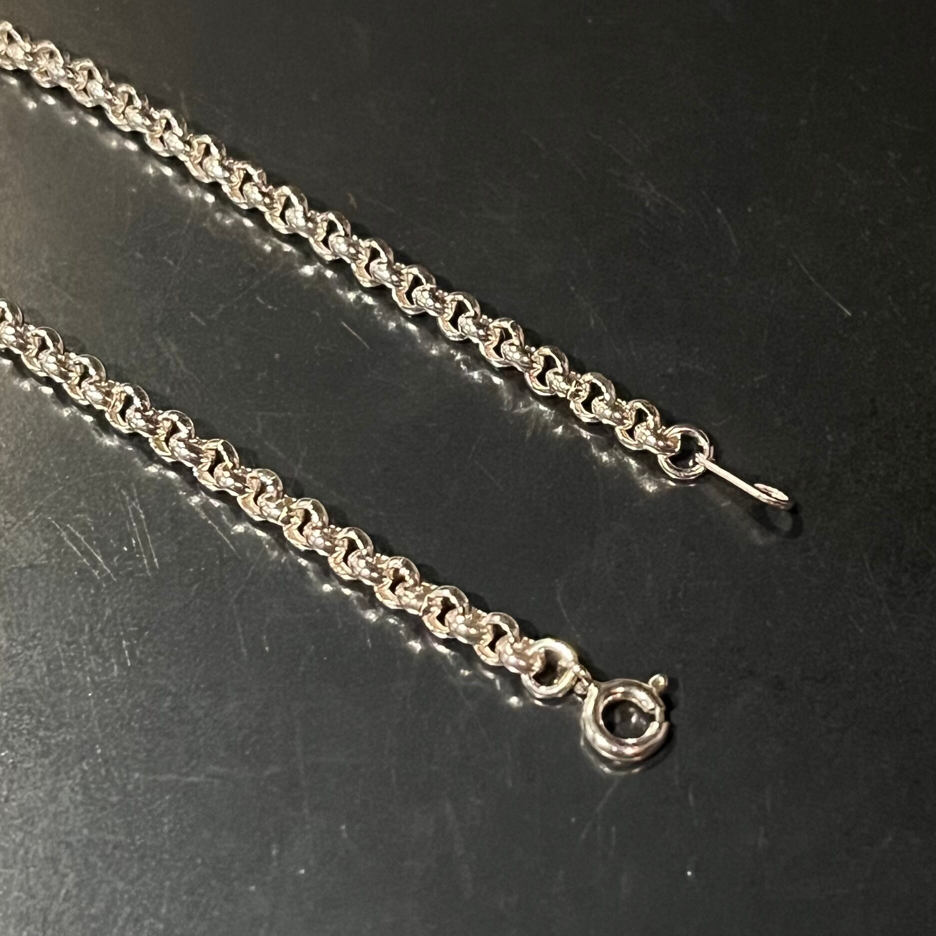海外で買い付けたエスカルゴチェーンデザインのシルバーブレスレットです。