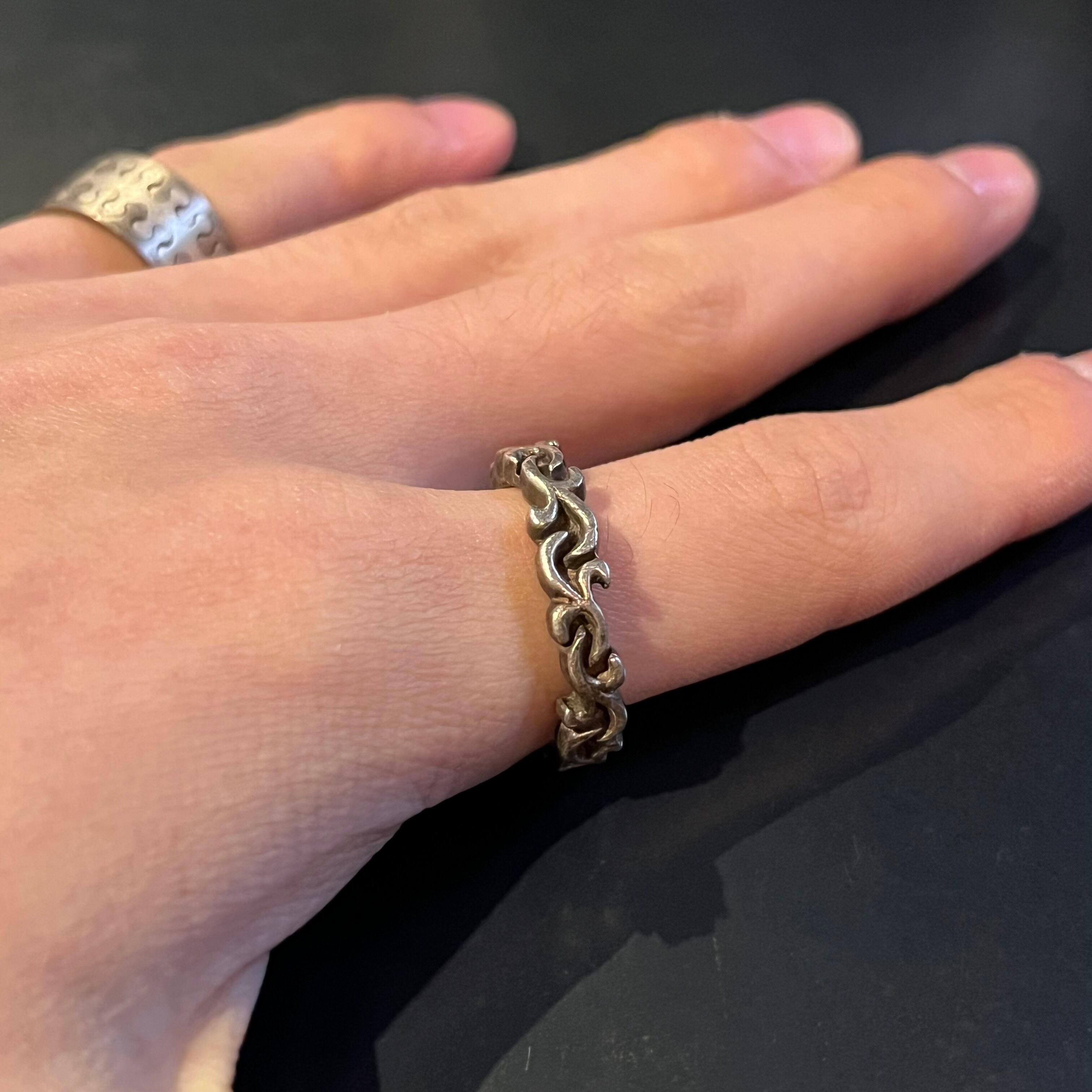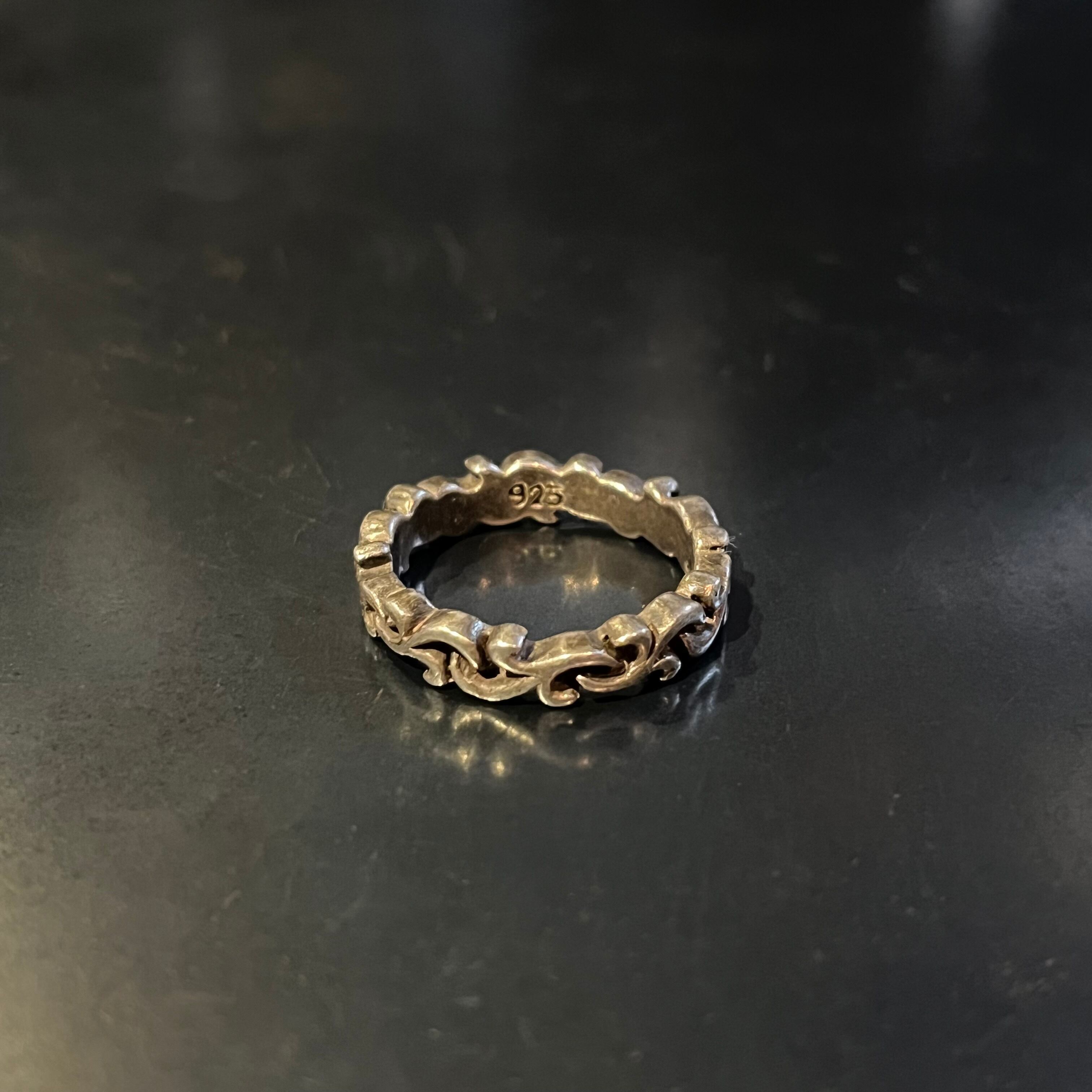 海外で買い付けたトライバルウェービーモチーフデザインのシルバーリングです。