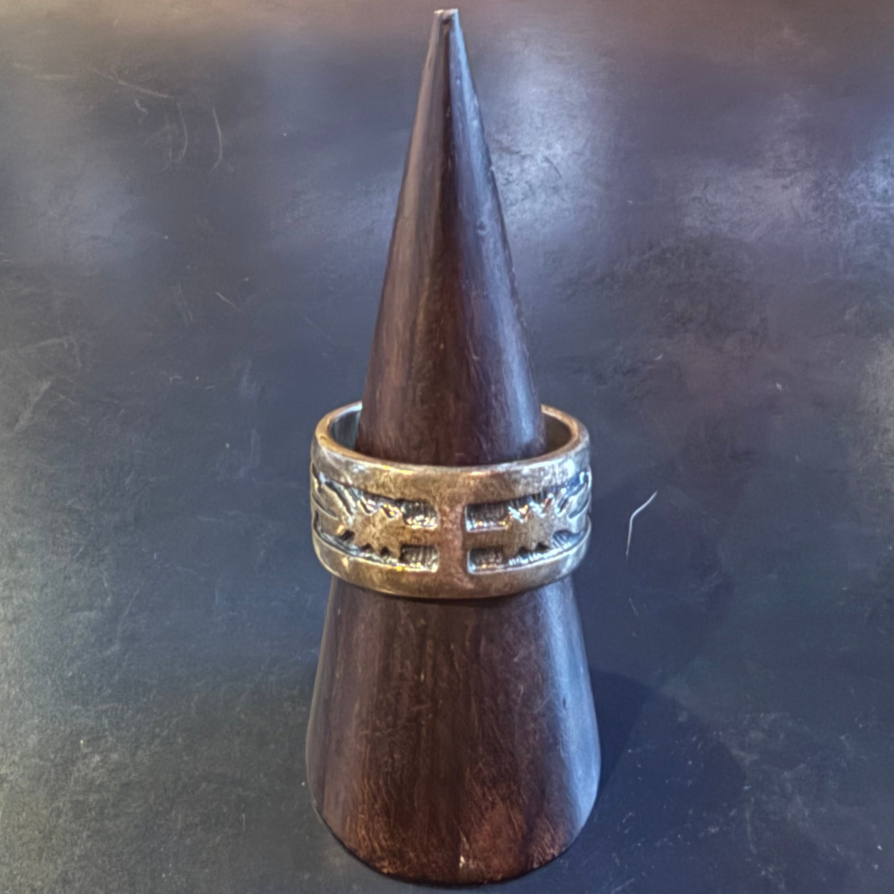 海外で買い付けたトライバルモチーフデザインのシルバーリングです。